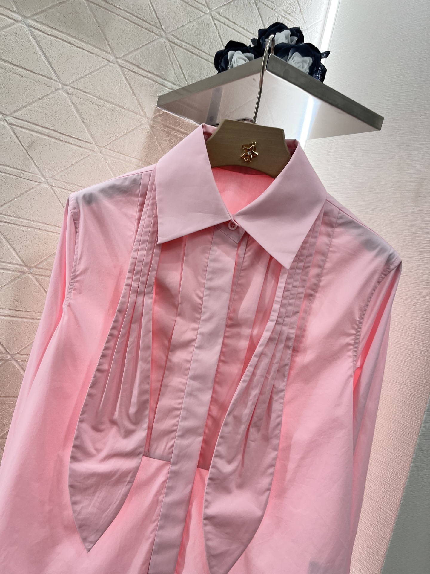 原单狠货女装 配包装♥Loew*♥2025新品上架 翻领系带正肩衬衫 定制YB斜纹全棉材质 质感舒适细腻 翻领正肩衬衣剪裁 定染工艺 粉白配色可选 胸前褶皱配合领带设计 可系可松多风格装饰 彰显品牌格调 上身充满慵懒英伦气息 配合随意半裙或裤子 精致度瞬间 日常通勤度假都可驾驭的基础衬衫 轻松穿搭出洋气感 定制面辅料 认准版本 高版本 2色