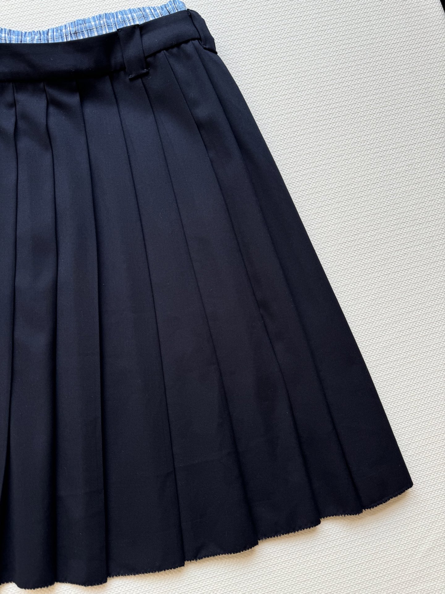 原单狠货女装 配包装Mium*25Ss春夏新款 格子拼接中长款百褶半身裙。羊毛材质 原版开发!高版出品!经典高腰A字裙型,这一季最新的格子拼接腰身,前后片重工打褶,褶位和褶量精致工艺高级,满满的少女感~四季实穿百搭~现货 SML