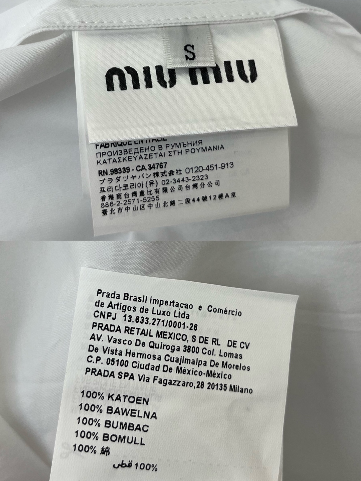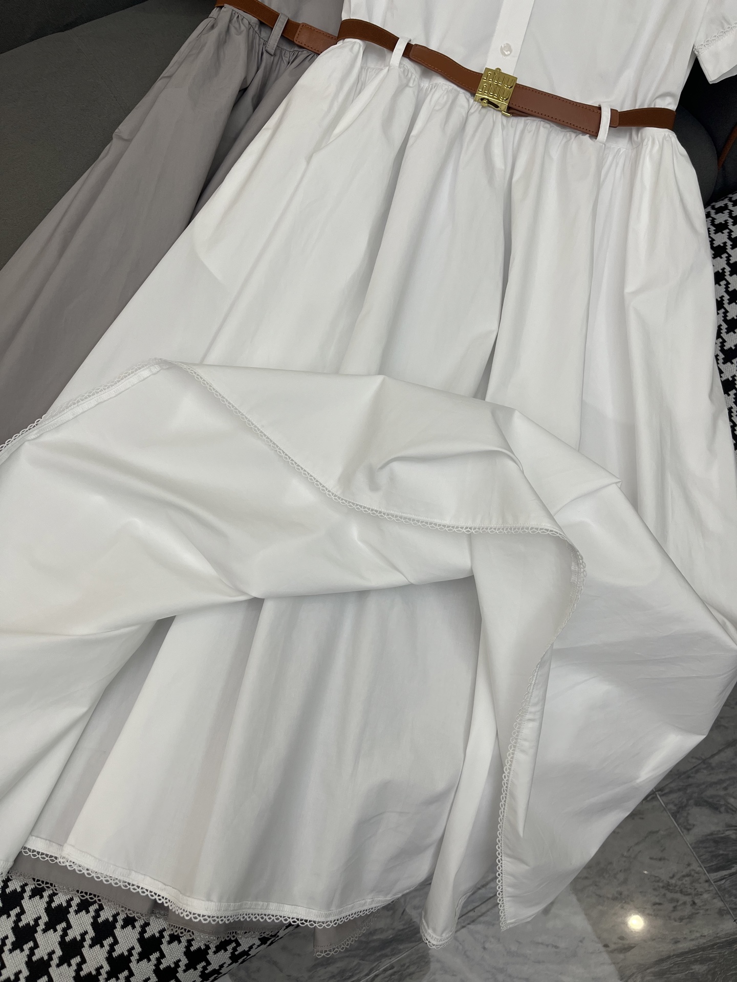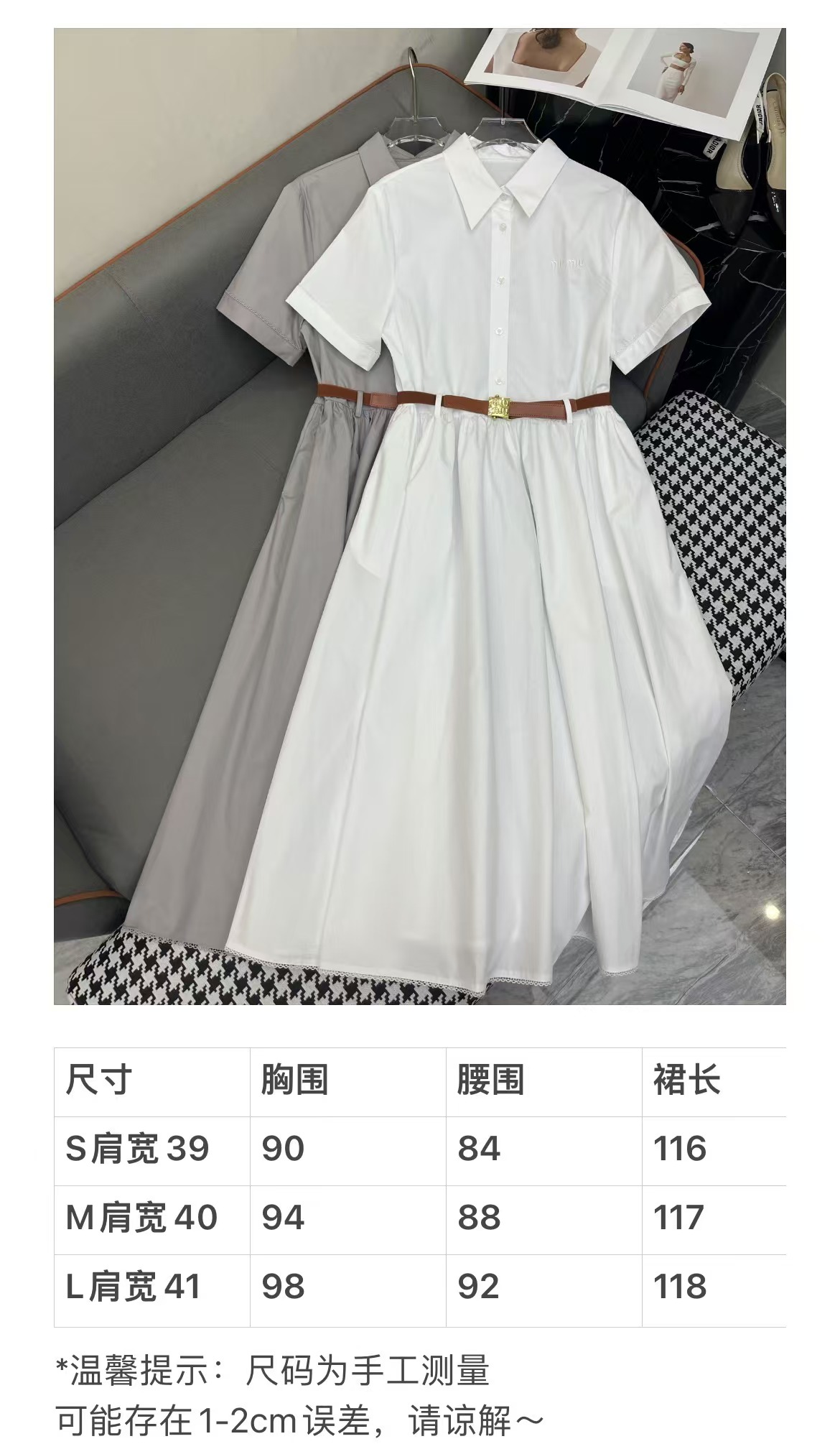 原单狠货女装 配包装MiuMi*/25SS新款短袖衬衫连衣裙 /字母绣花装饰/收褶裙摆/袖口花边拼接设计/搭配腰带/两色三码SML
