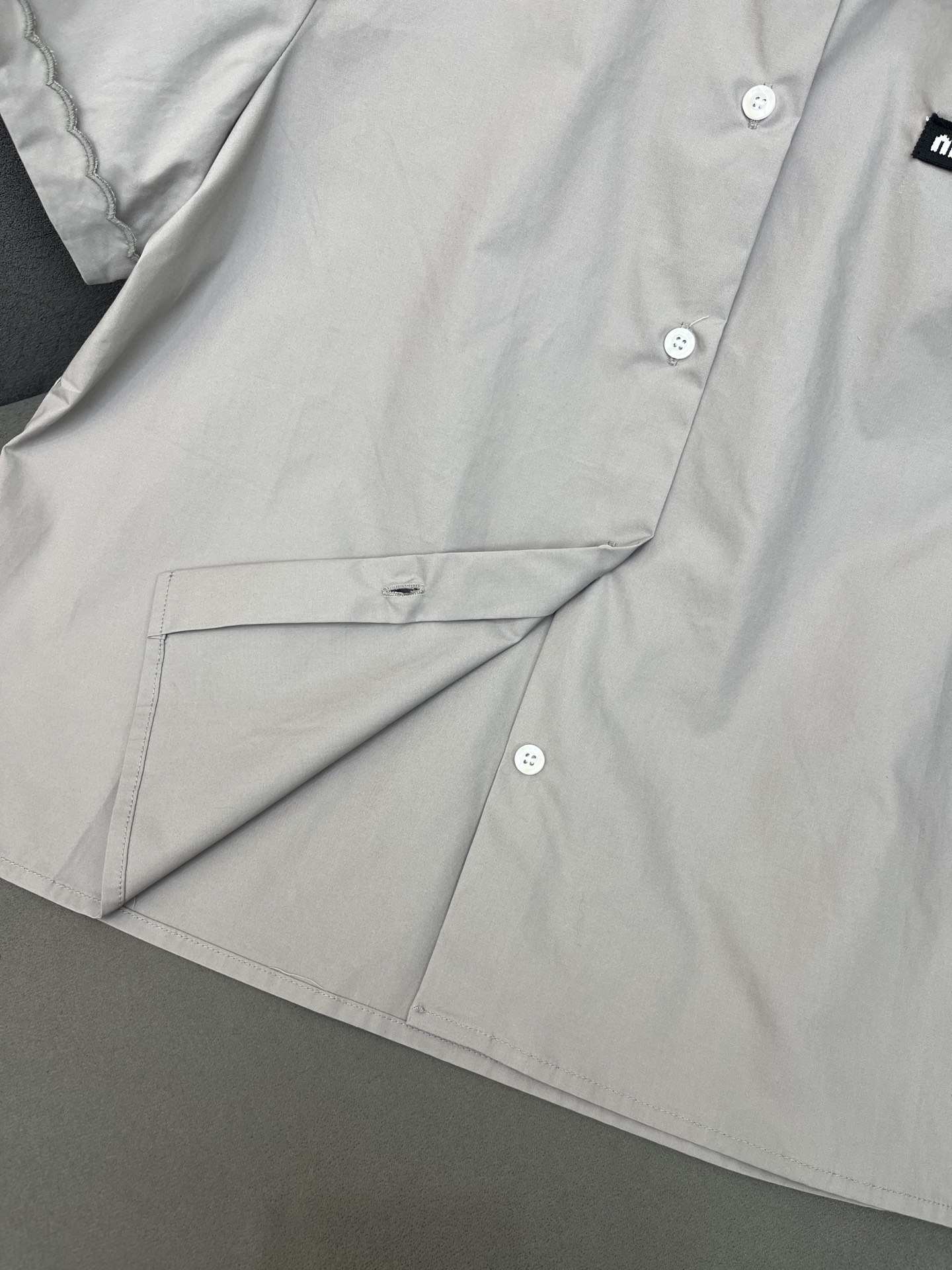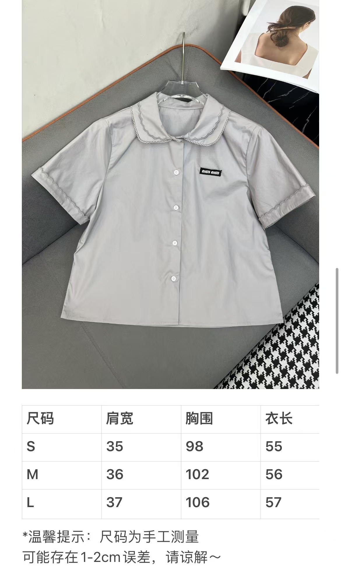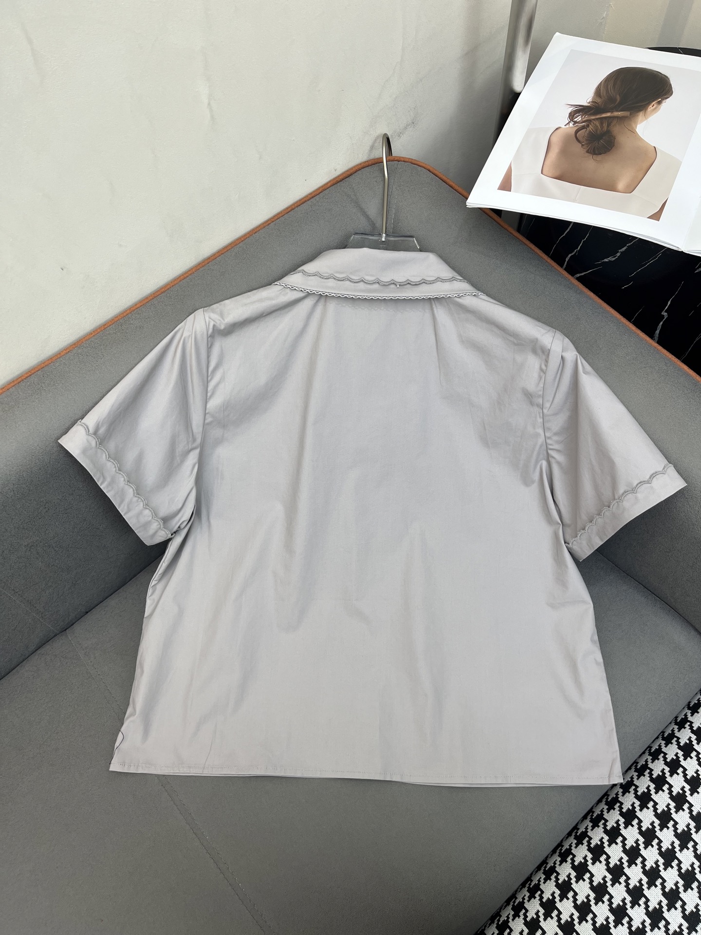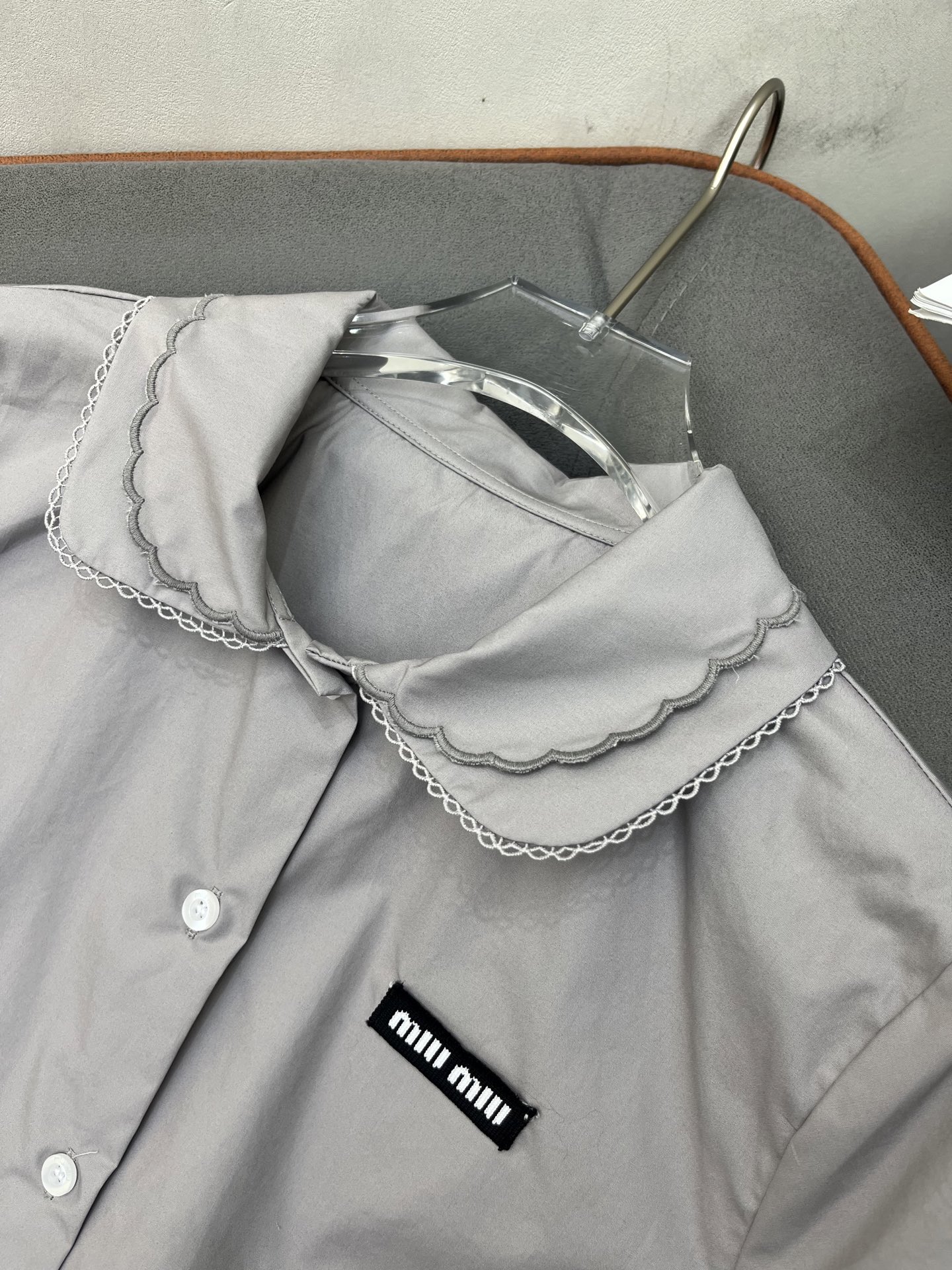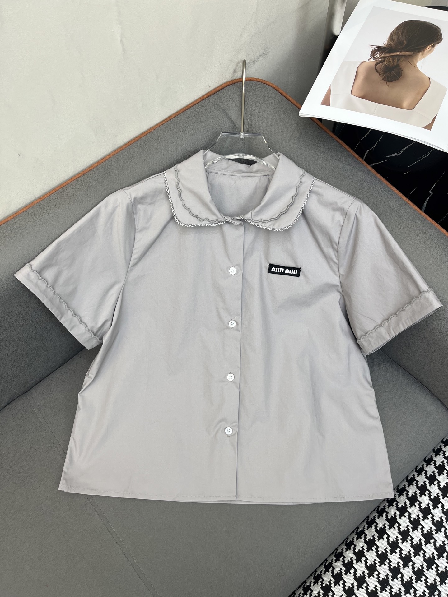 原单狠货女装 配包装MiuMi*/25SS新款花边领短袖衬衫/字母小标装饰/时尚简约/单色三码SML