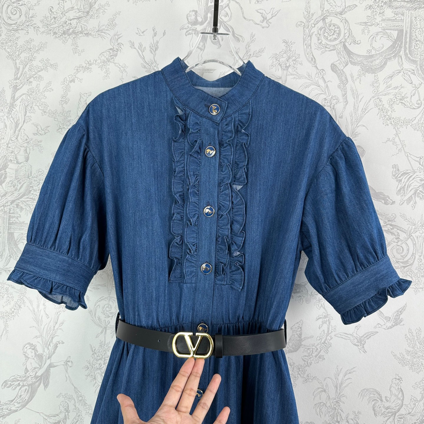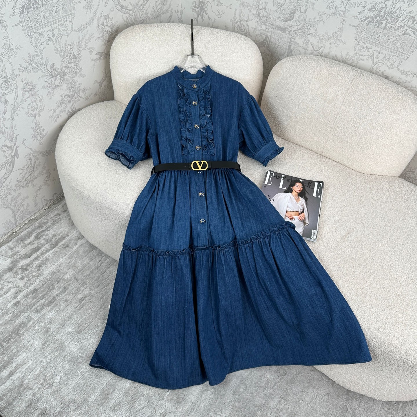 原单狠货女装 配包装New Arrival ❥——25春夏——❥VL*时尚牛仔特种成衣洗水工艺立领木耳边设计时尚大摆连衣裙!高品质!时尚大气!smlxl 面料:牛仔