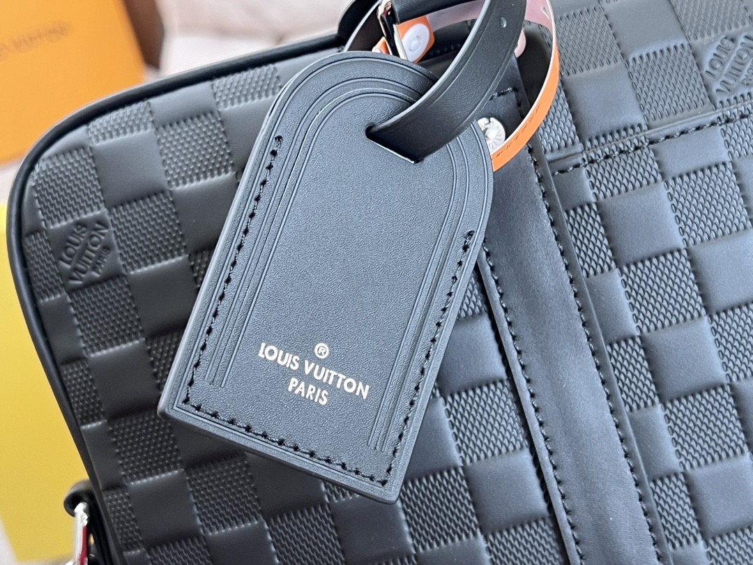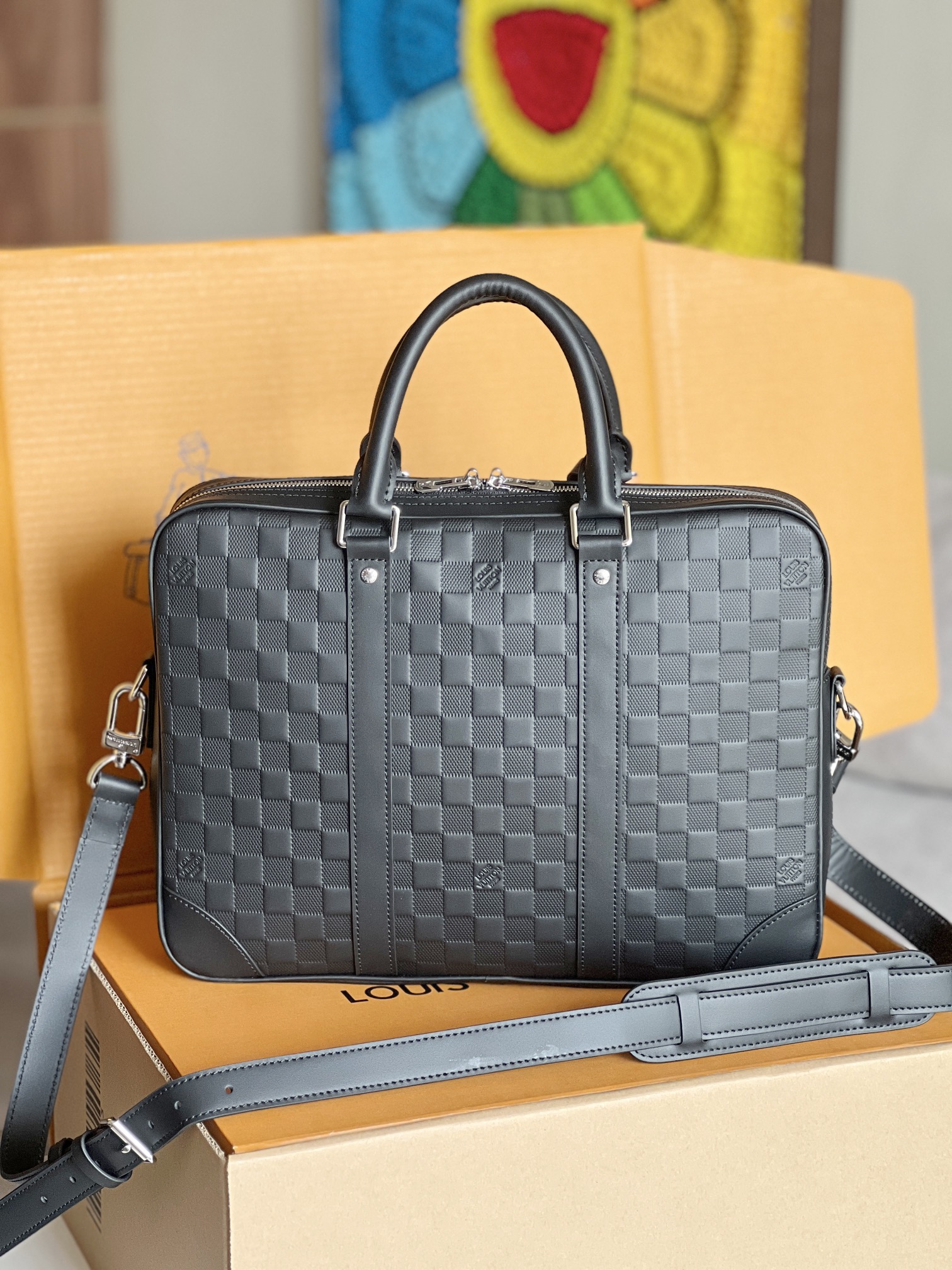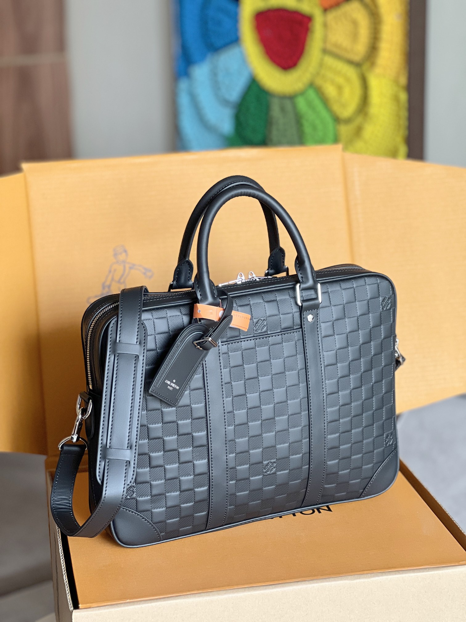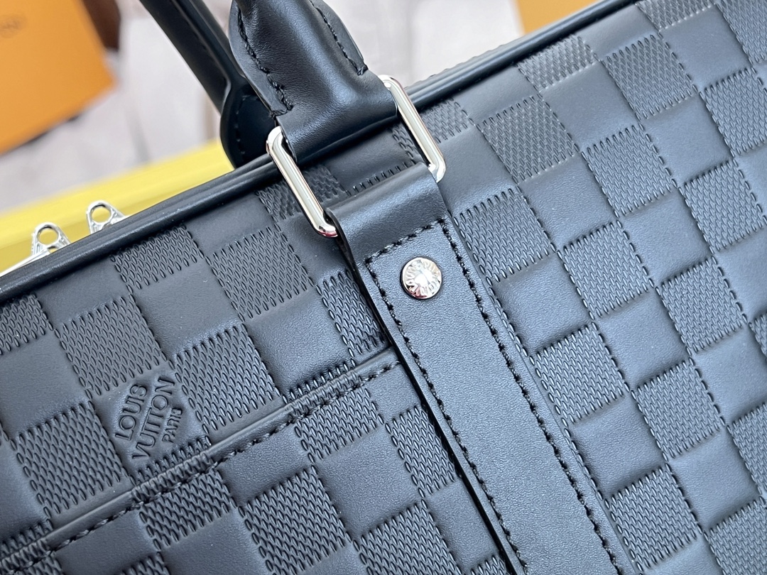 原厂头层牛皮 原单五金 变码芯片 海外原单,型号:N40444,独家实拍!本款 voyage 小号公文包取材 damier infini 牛皮革,以棋盘格压纹传递儒雅风范。皮革裁出手柄和可拆卸名牌,可拆卸并调节的肩带完善功能设计。尺寸:36.5×27.5×6cm