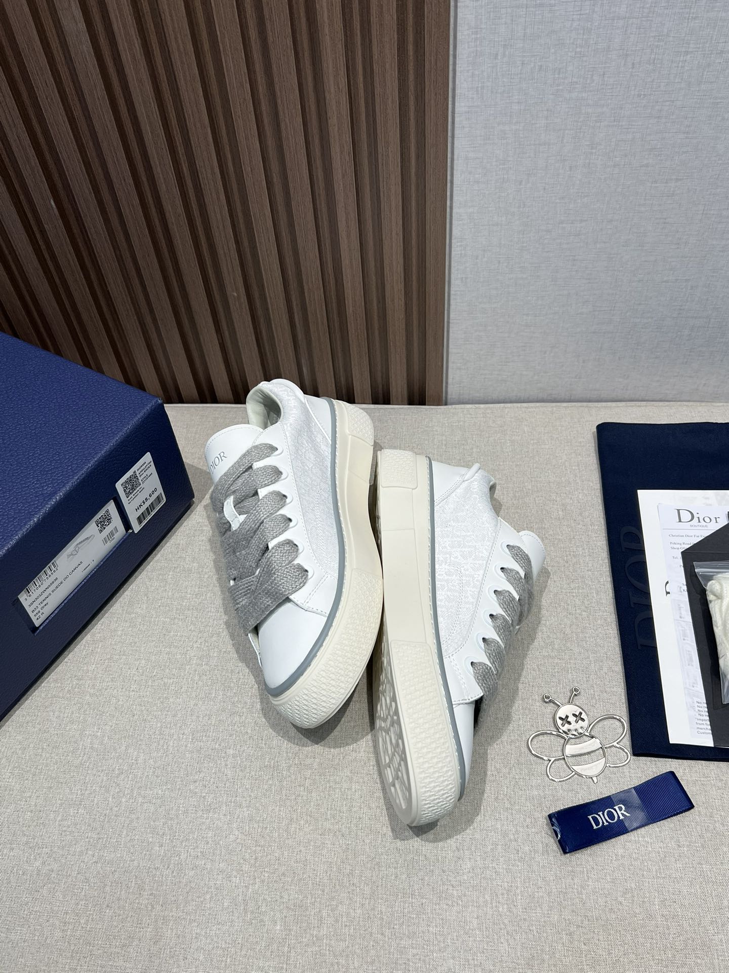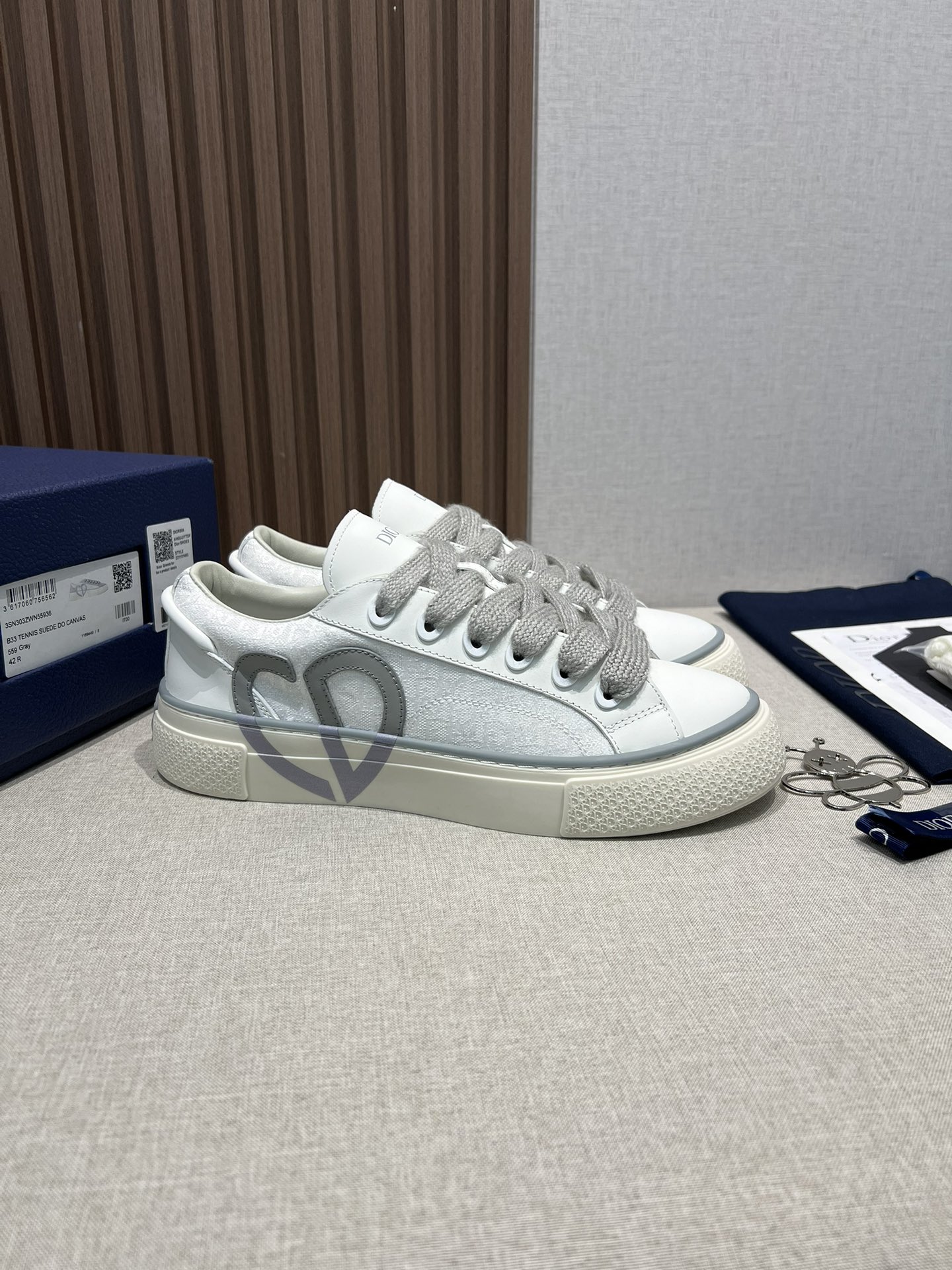 原版购入开发 做货 这款 B33 运动鞋是二零二三秋季新品,重新诠释经典的网球鞋,时尚的廓形突显厚实感。采用海军蓝色和白色提花面料精心制作,饰以 Oblique 印花,搭配绒面革镶片,别具一格的加垫鞋舌点缀以 Dior 压花标志,搭配海军蓝色马海毛宽鞋带和哑光同色调饰面黄铜孔眼。白色 Dior Oblique 图案橡胶鞋底,后侧饰以对比鲜明的 Dior 30 Avenue Montaigne 标志提升格调。可为休闲造型增添时尚气质