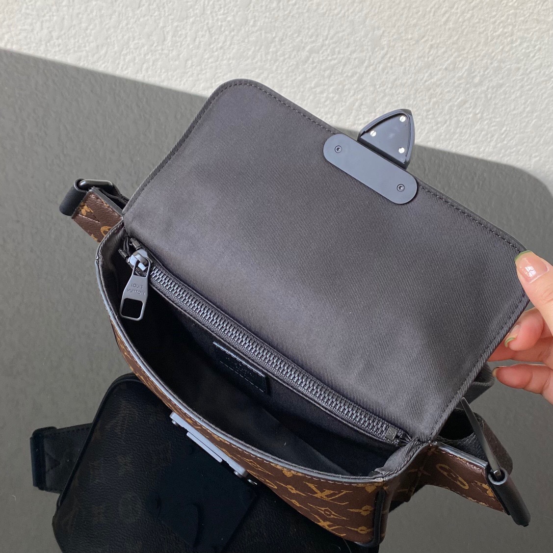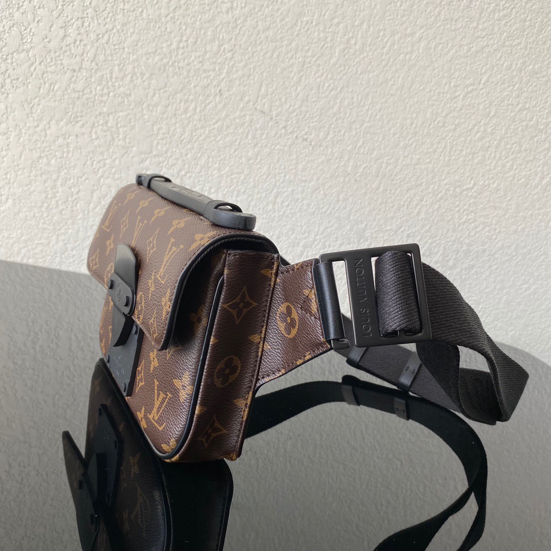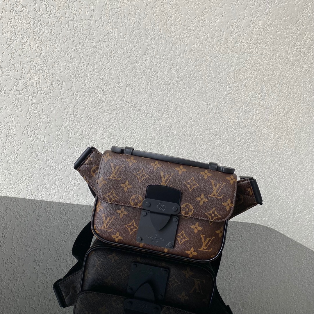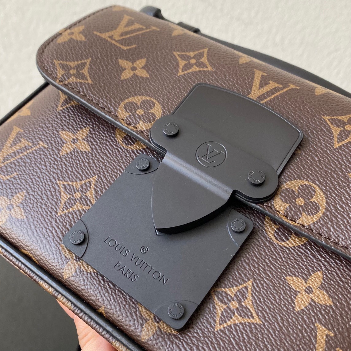 原厂 《配全套正品包装》 型号:M45807 尺寸:21 x 15 x 4 厘米 老花黑色 胸包系列 此新款 S Lock Sling 手袋配有以路易威登传统硬箱锁扣为灵感的磁吸锁扣,可确保个人物品安全无虞。Monogram Macassar 帆布配有创意金属锁扣,锁扣上饰有优雅的哑光黑色饰面。坚固的硬箱风格手柄与可调节肩带皆饰有 LV 标识,提供多种背携选择。