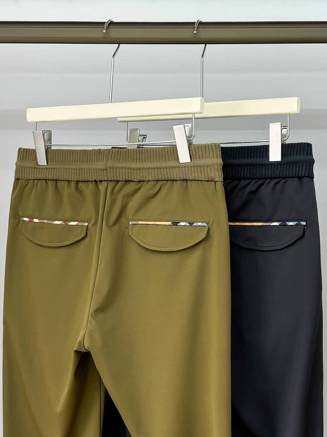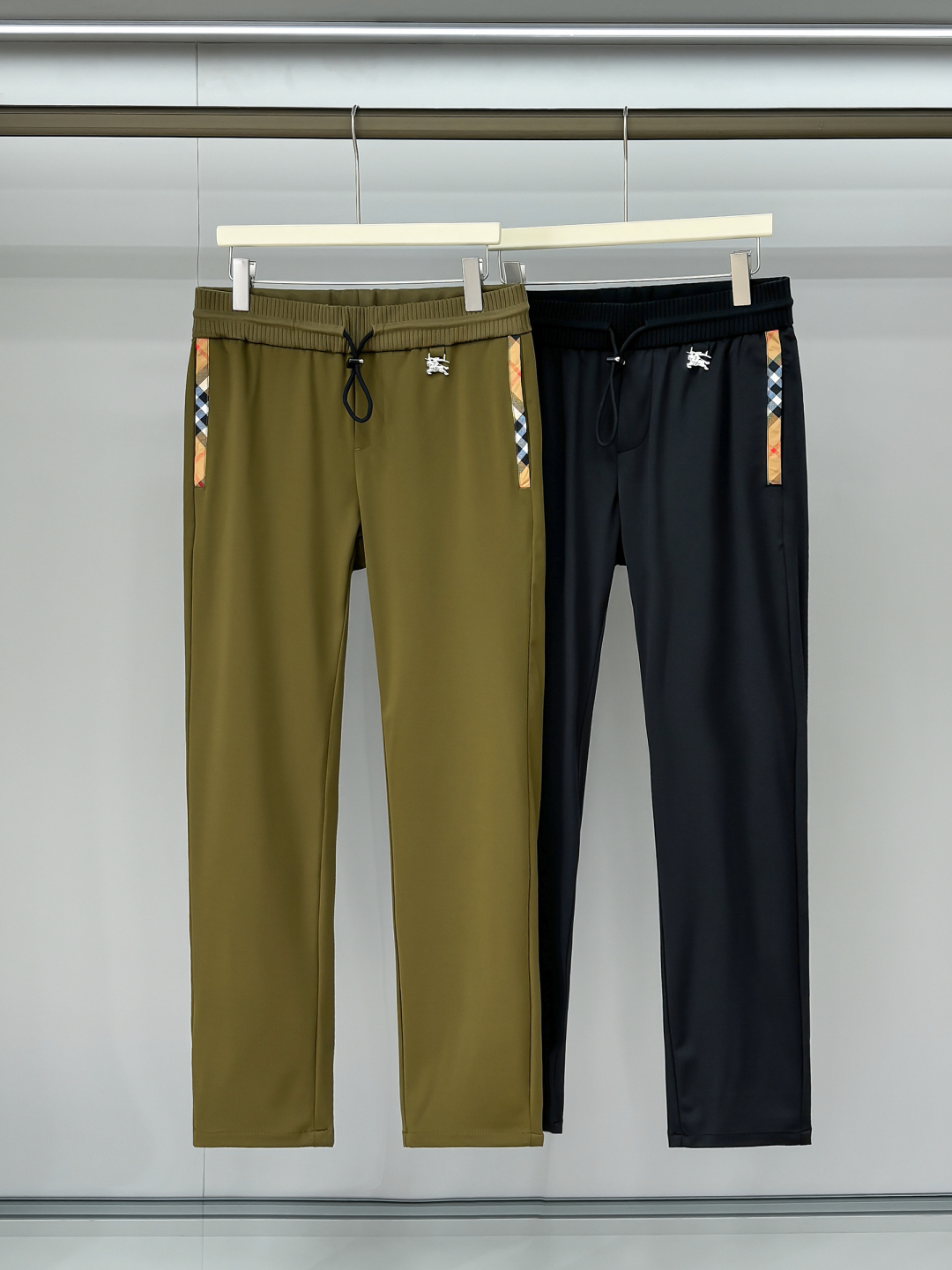 合照细节 BU25SS春夏新款轻薄弹力棉质抽绳休闲裤,男士格纹拼接口袋金属战马挂件商务休闲长裤!贸易公司渠道稀出,领先官网发售!作为B家24年春夏系列新品,它始终保持着品牌标志性元素,让您的着装风格依旧是低调优雅有品位!