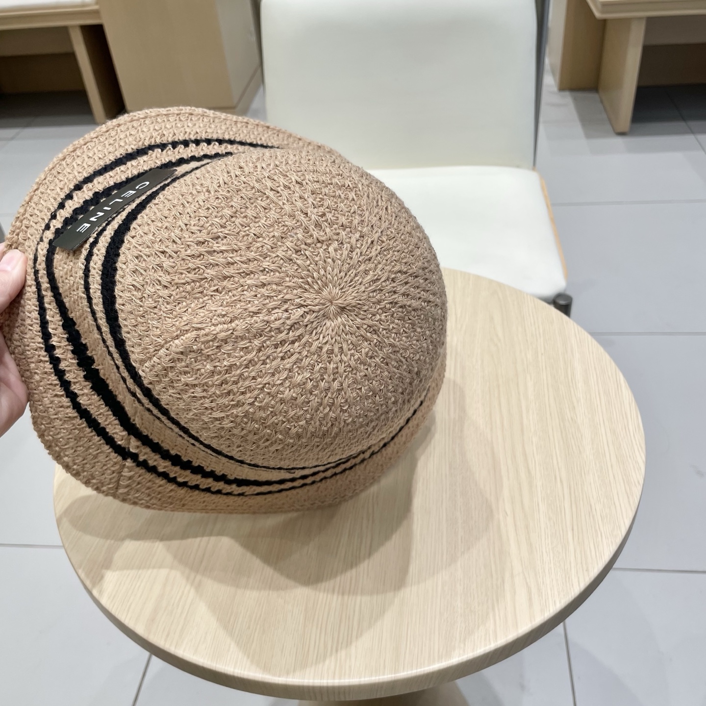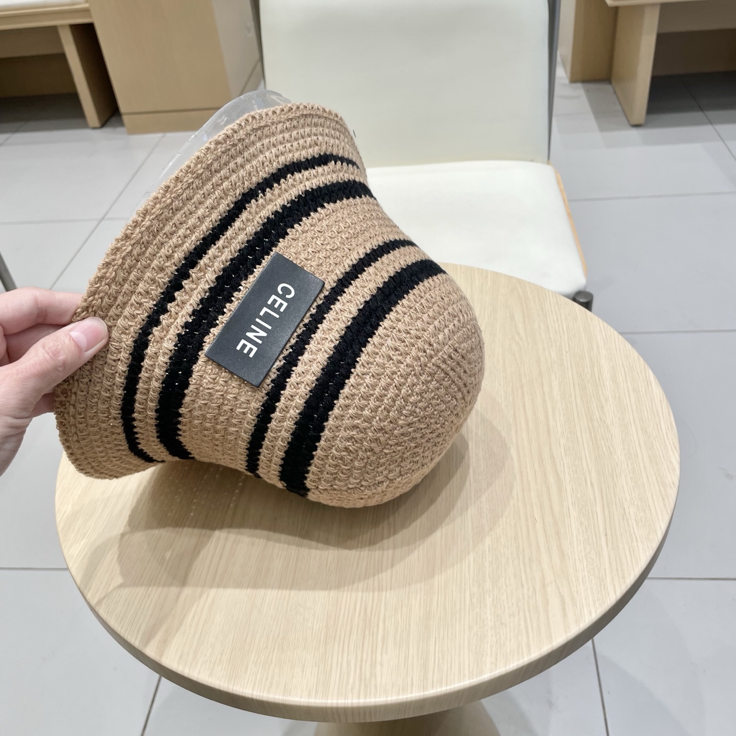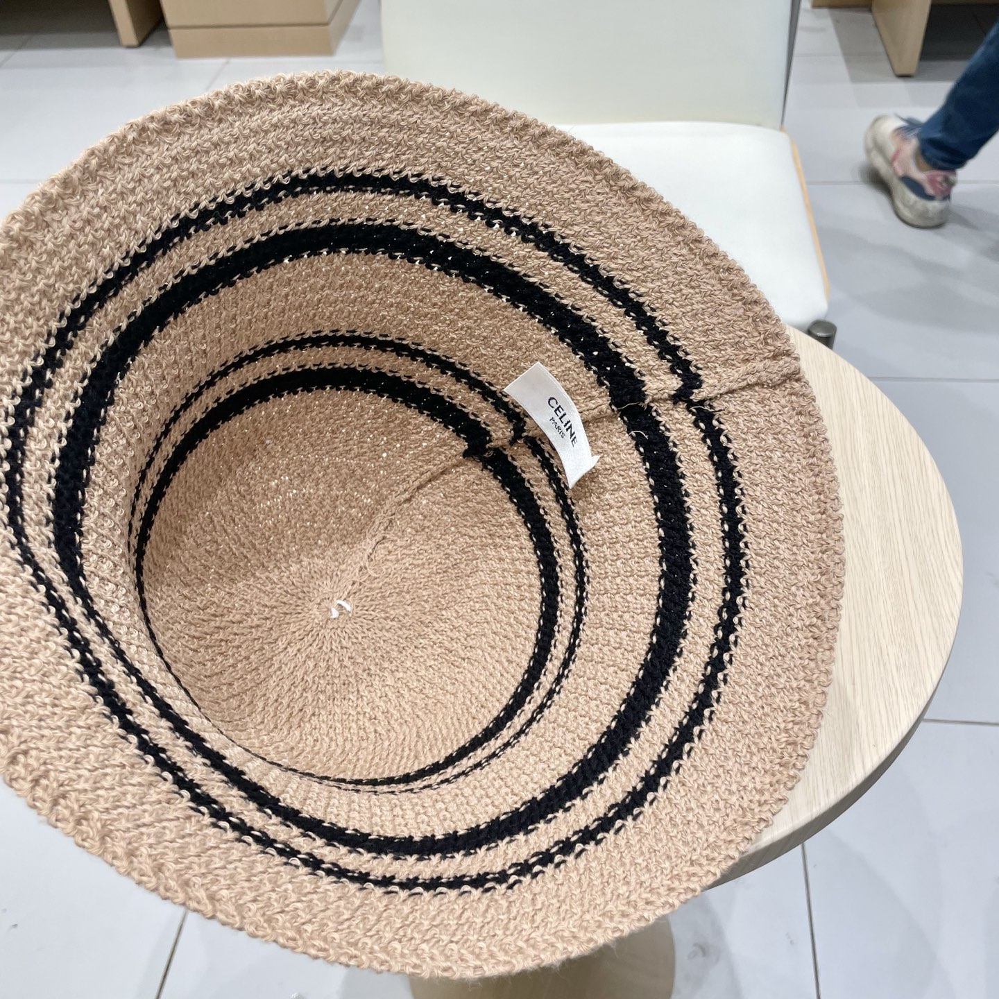 塞琳Celine复古线条春夏编织渔夫帽横条纹女帽子软顶盆帽百搭防晒出游遮阳