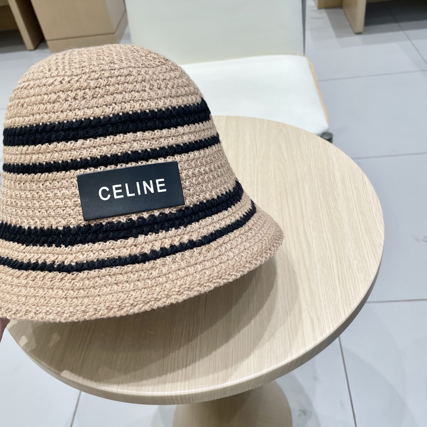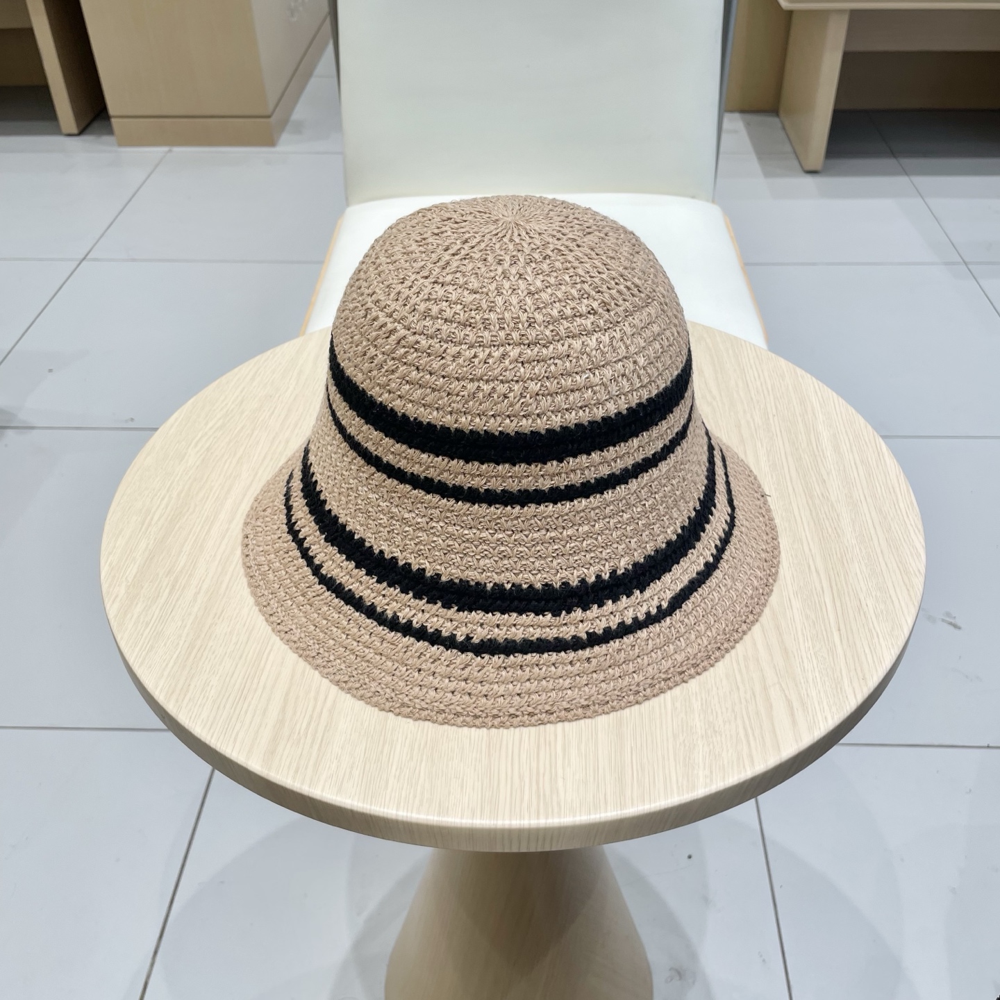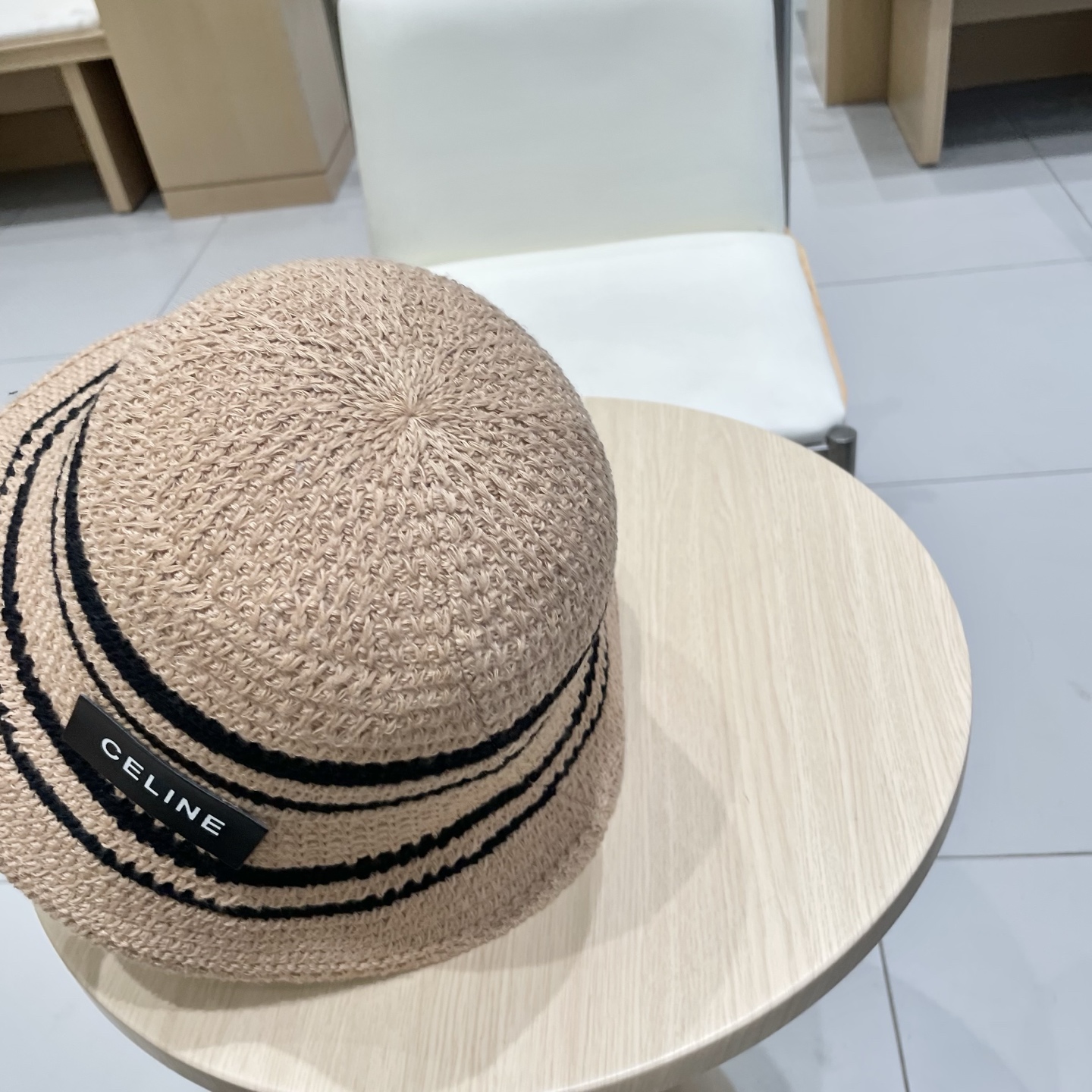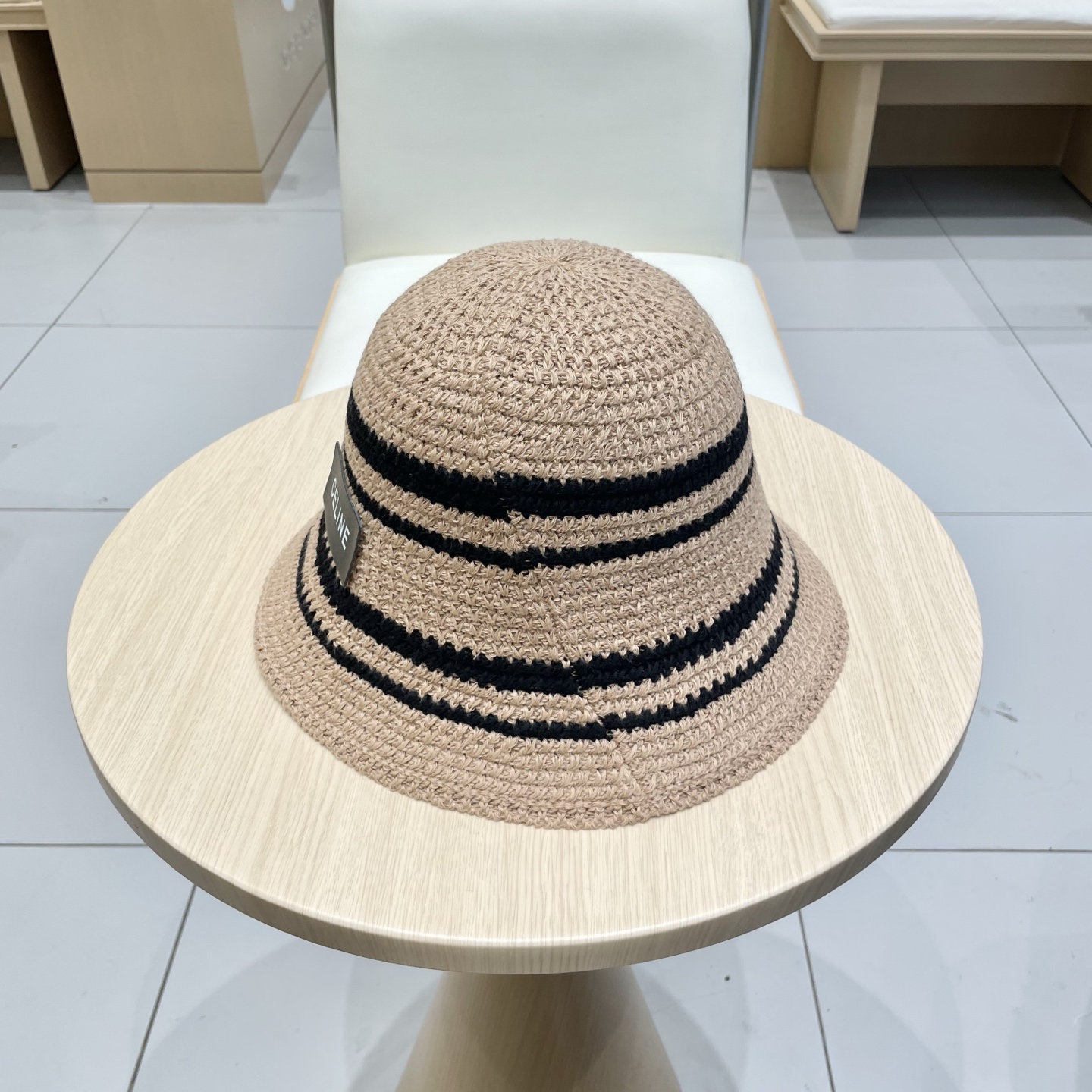 塞琳Celine复古线条春夏编织渔夫帽横条纹女帽子软顶盆帽百搭防晒出游遮阳