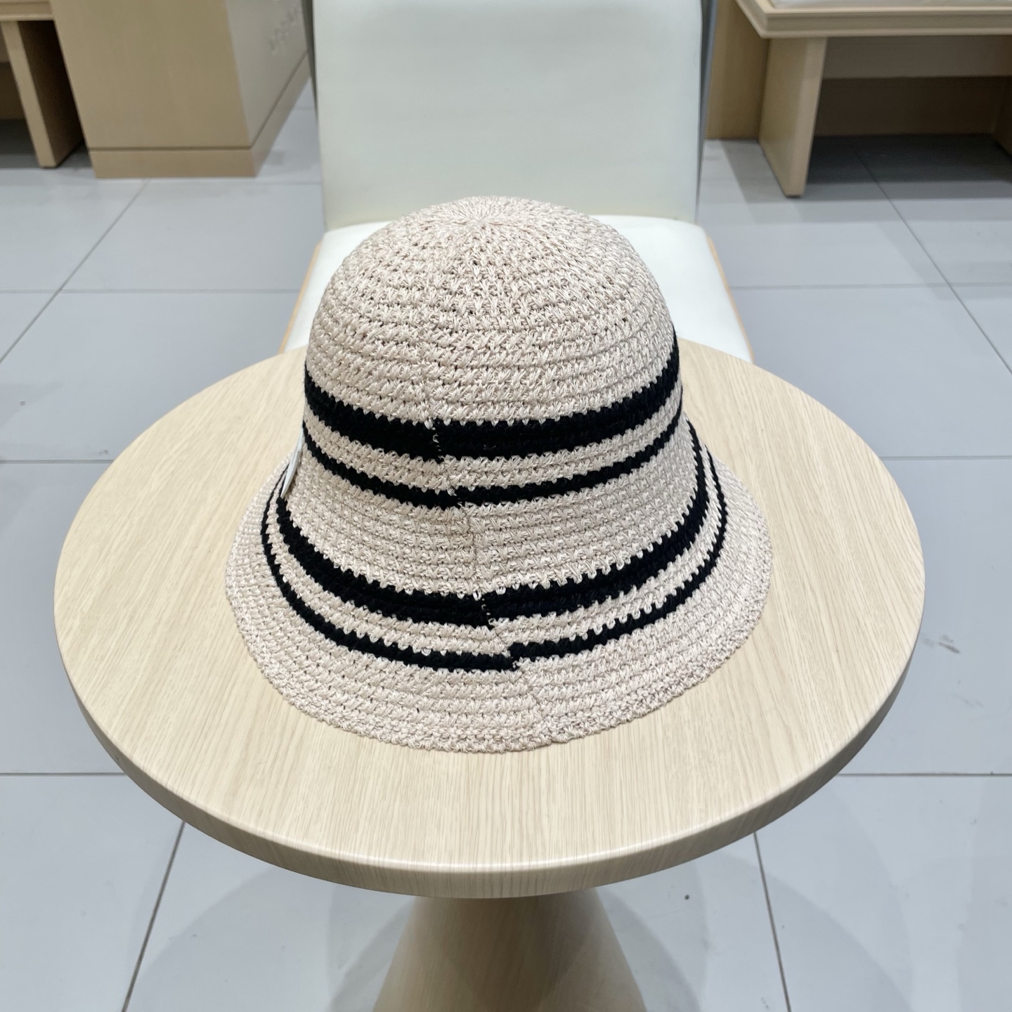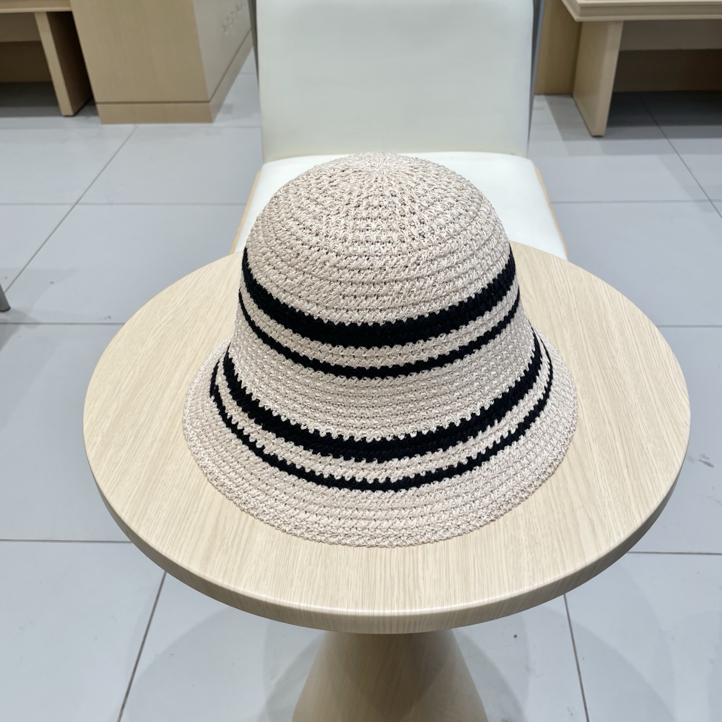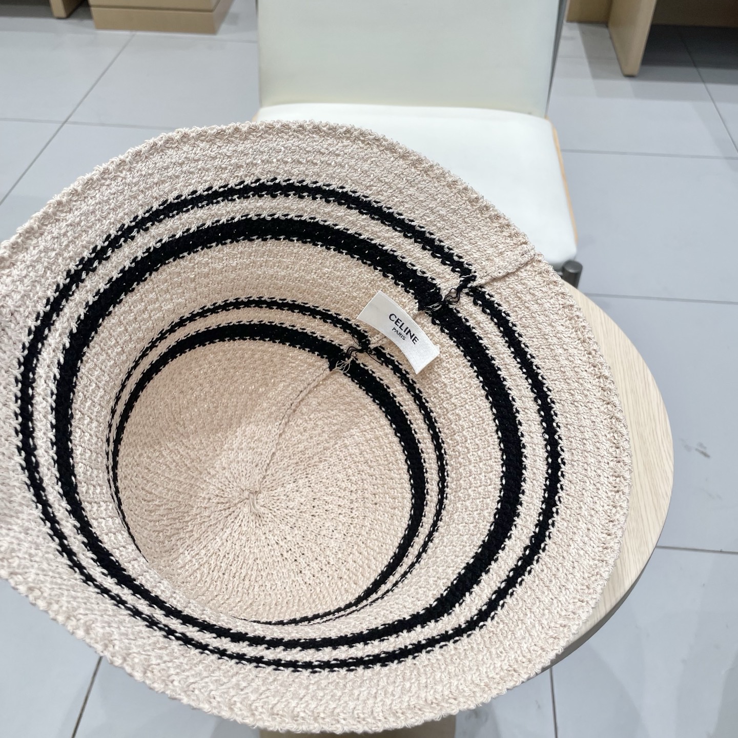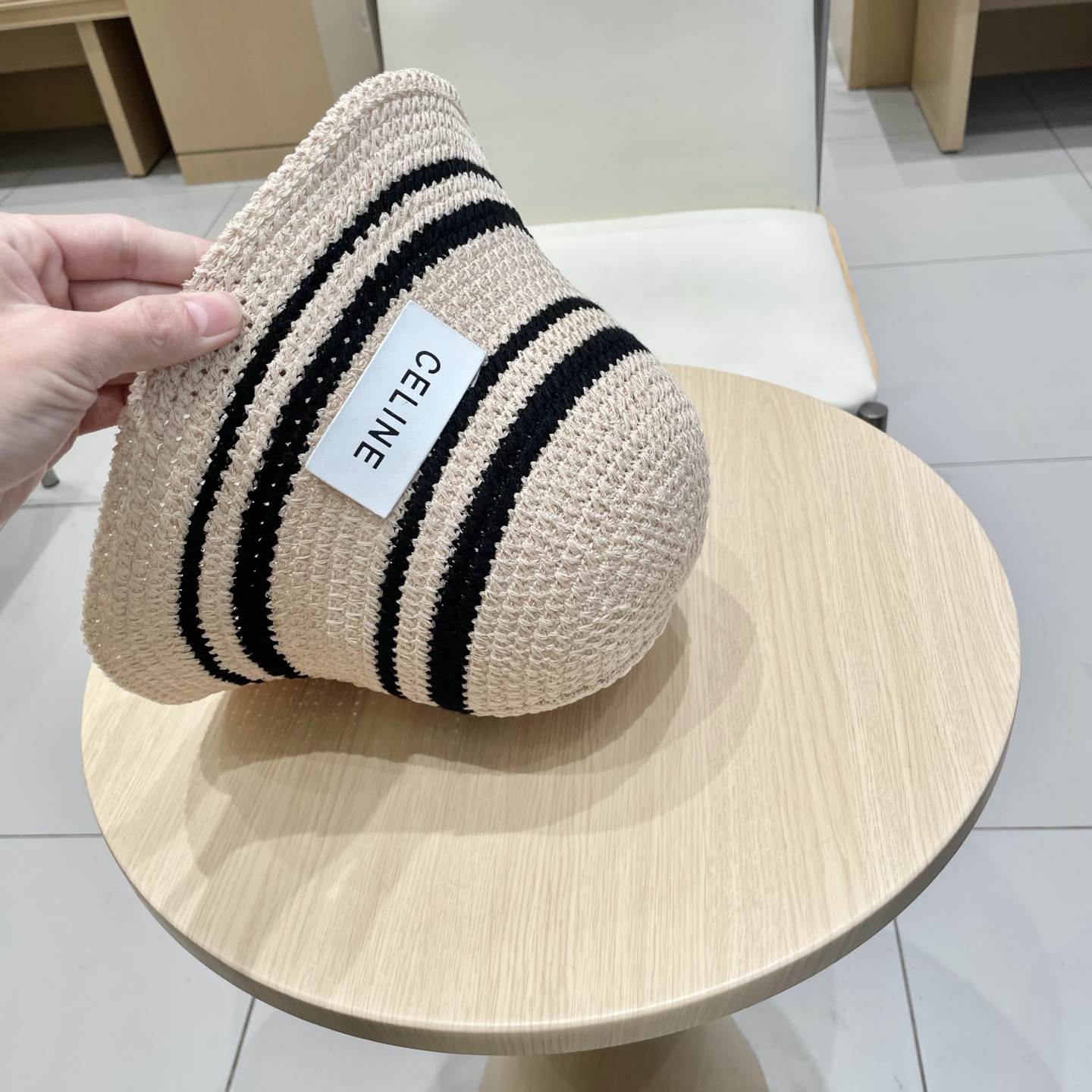 塞琳Celine复古线条春夏编织渔夫帽横条纹女帽子软顶盆帽百搭防晒出游遮阳