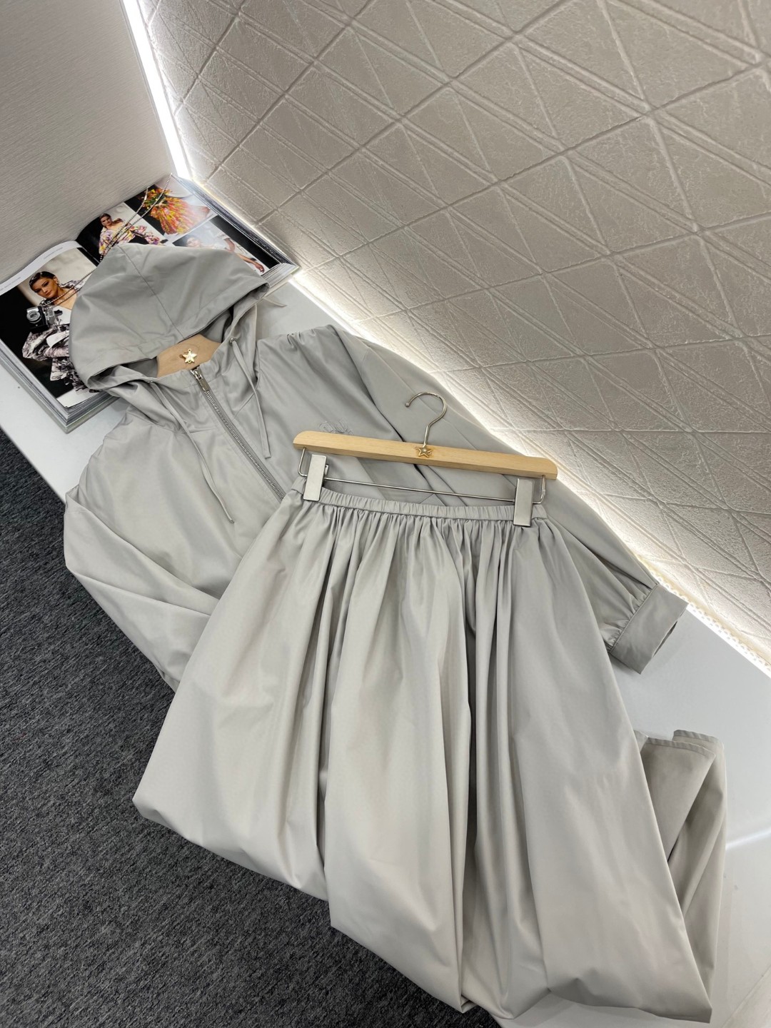 连帽外套半裙套装