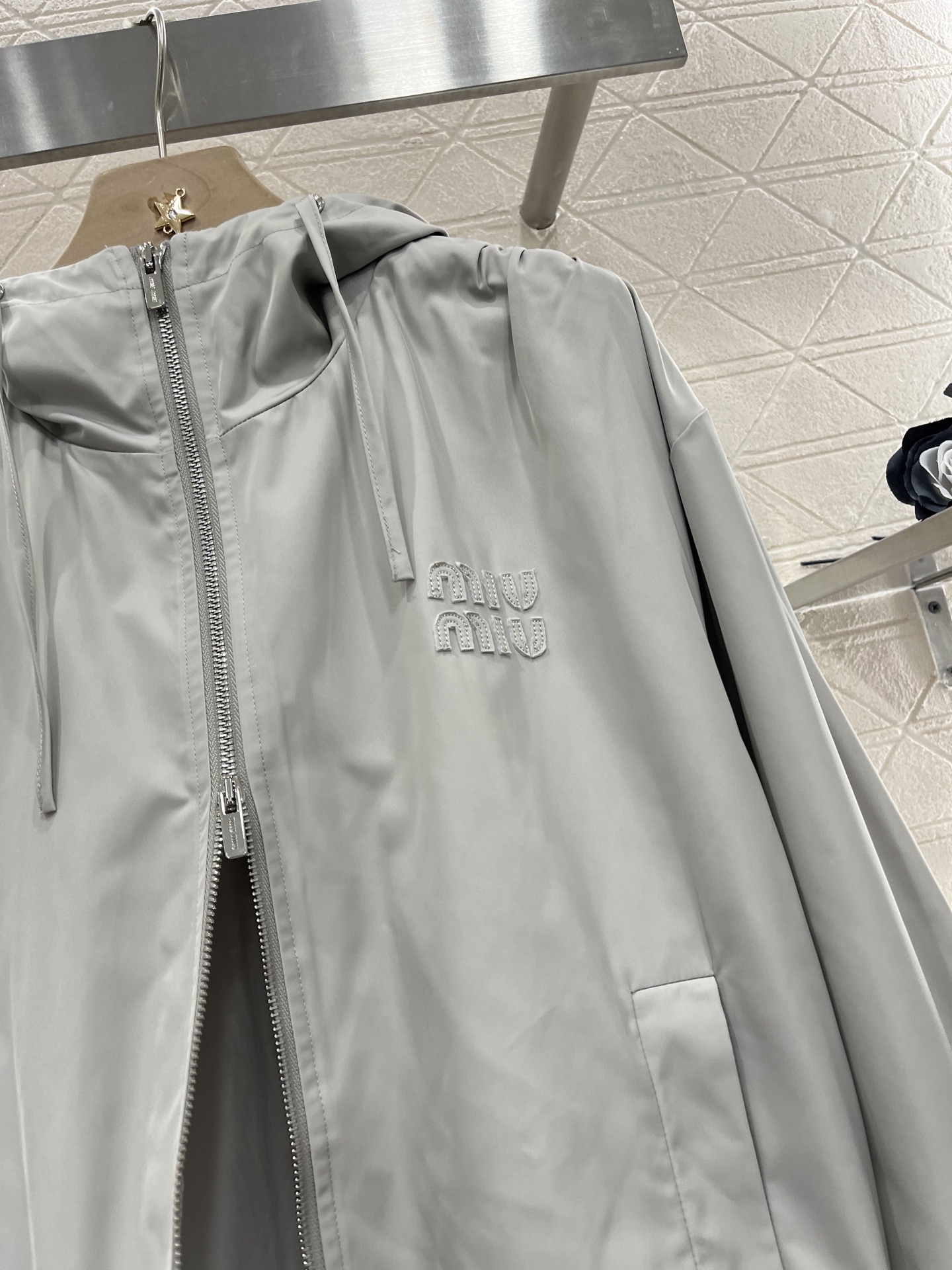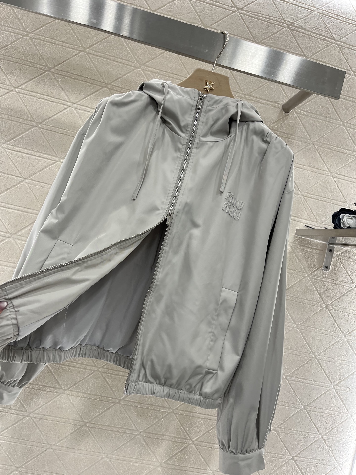 定制YB进口防风防水尼龙材质 质感高级 立体有型 连帽抽绳双向拉链外套 帅气十足 尽显时髦格调穿搭 廓形划分上下比例更显身材 字母徽标简约设计款展现品牌风范 穿搭尽显个性风采 搭配同系列半身裙 A字中长款半身裙 高腰设计搭配外扩裙边造型 修饰腿形显瘦松弛 成套搭配更具品牌魅力 时髦潮流 定制面辅料 认准版本 高版本