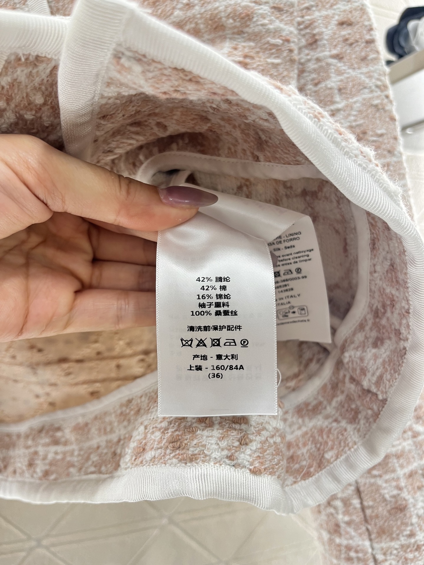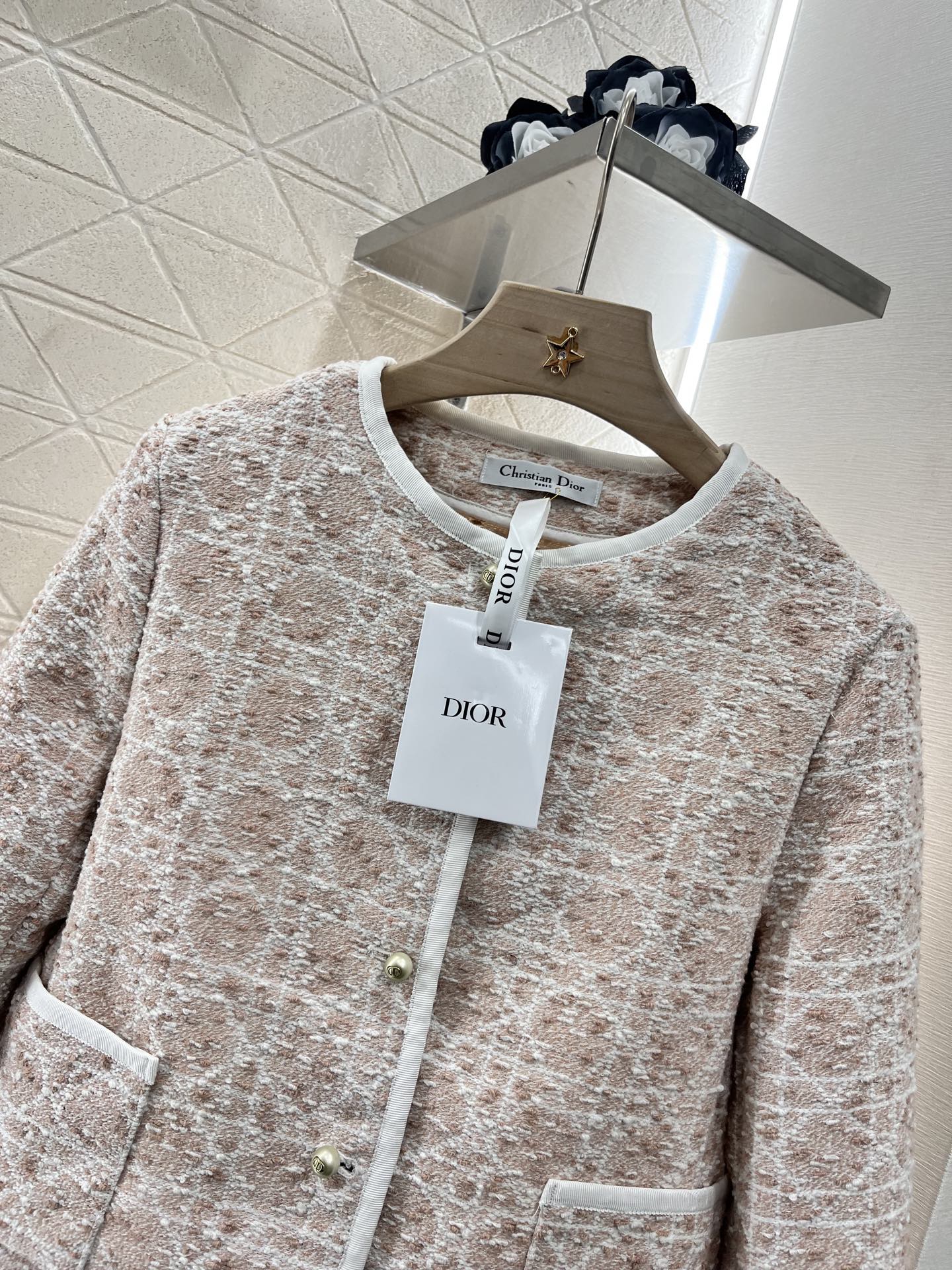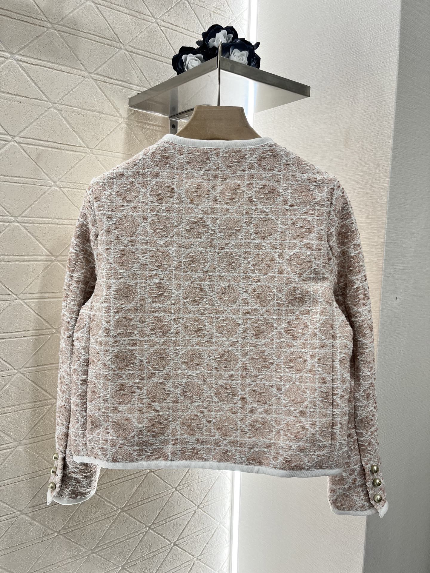 外套 短裤原单狠货女装 配包装♥Dio*♥2025新品上架 圆领洋装半裙套装 定制YB进口粗纺毛呢材质 质感高级 品相十足 圆领洋装外套版型 正肩垫肩设计贴合人体 更显身姿纤细挺拔 前襟和领口以立体白色捆边点亮细节 配合细腻的白色纱线规则交织出腾格纹满铺于全身 名媛格调立显 同系列直筒半裙 细节呼应 完美演绎优雅千金感 成套浅蓝白➕樱花粉显贵显质感 知性温柔 出席正式场合的不二之选 ⚠️天花板版本 真丝内衬 定制面辅料 认准版本 高版本