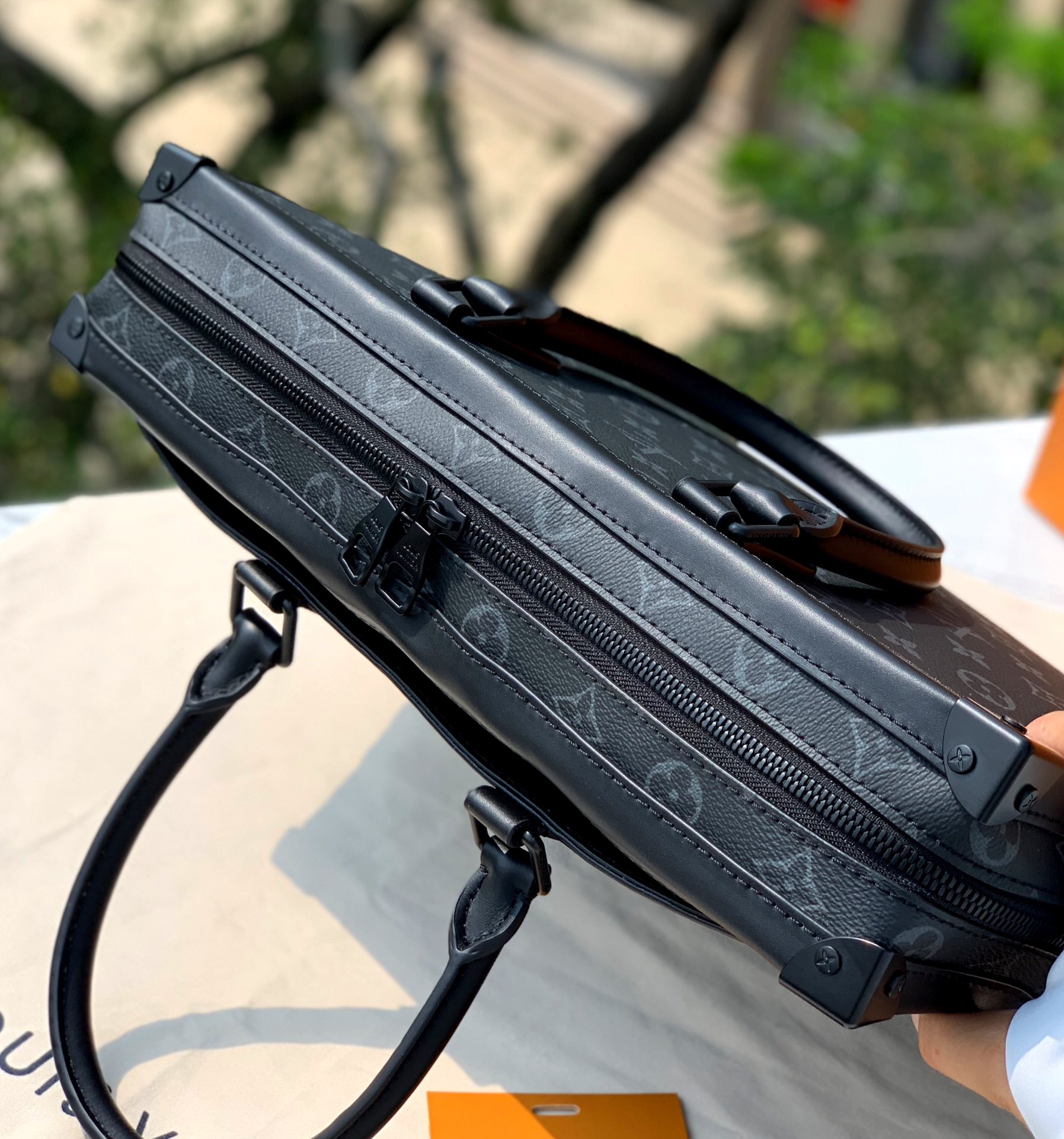 尺寸29x 38x 8cm 香港贸易公司订单!Lv Soft Trunk黑花男士公文包M44952,公文包以 Monogram Eclipse 帆布望造方正构型,加固边角致意路易威登的制箱传统,牛皮饰边手柄和可拆卸肩带实现多种背携方式,内袋与后外袋增加功能细特,上班耍帅的好选择之一!