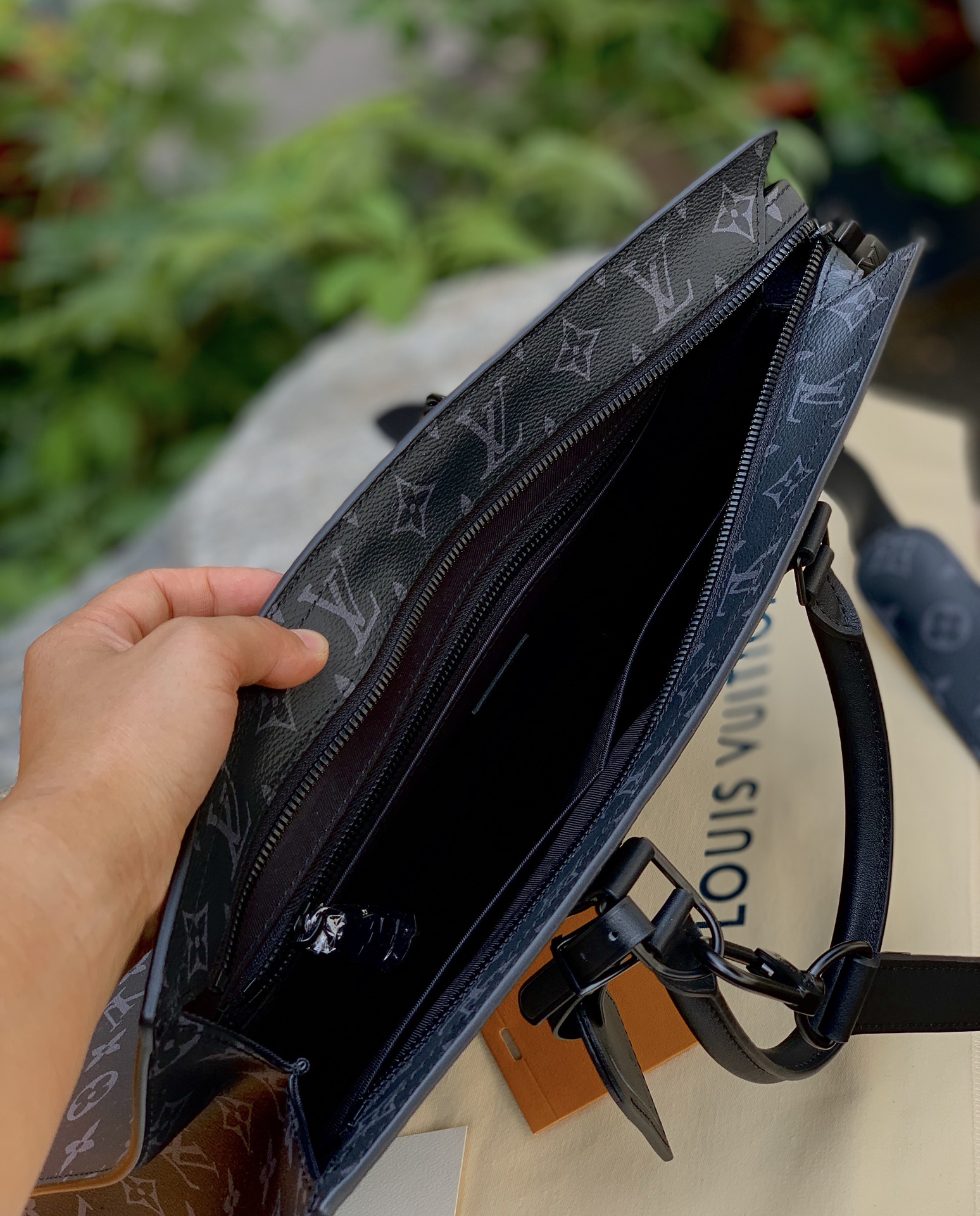 尺寸39 x 30 x 7 CM 原厂渠道,从经典的黑花涂层帆布、意大利进口牛皮、织物内衬、压印、再到烤漆工艺的五金全部都是原厂原装!柜上抱出体验!强推2022新款Sac Plat Horizontal Zippé 黑武士公文包!这款公文包无论是大小、实用性、外形、适用场合真的是满分首选!!满足日常通勤上班、出门逛街、短途出差等,高贵酷帅的包身牛皮耐磨硬挺,好看耐用,走哪都会戴上它!