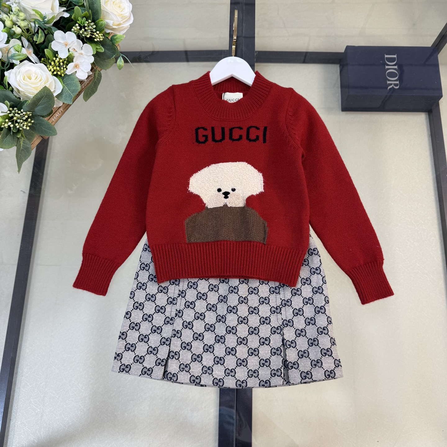 尺码:100-160、全码现货 一套 Gucci新款羊绒衫细节图 单件羊绒套头毛衣套装裙现货