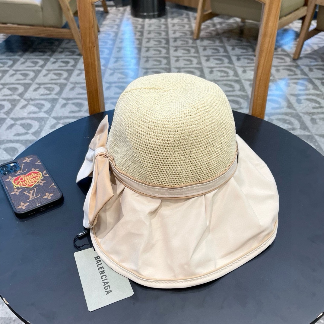 巴黎世家balenclaga渔夫帽子女夏季遮阳彩胶防紫外线防晒帽大帽檐显脸小蝴蝶结太阳帽