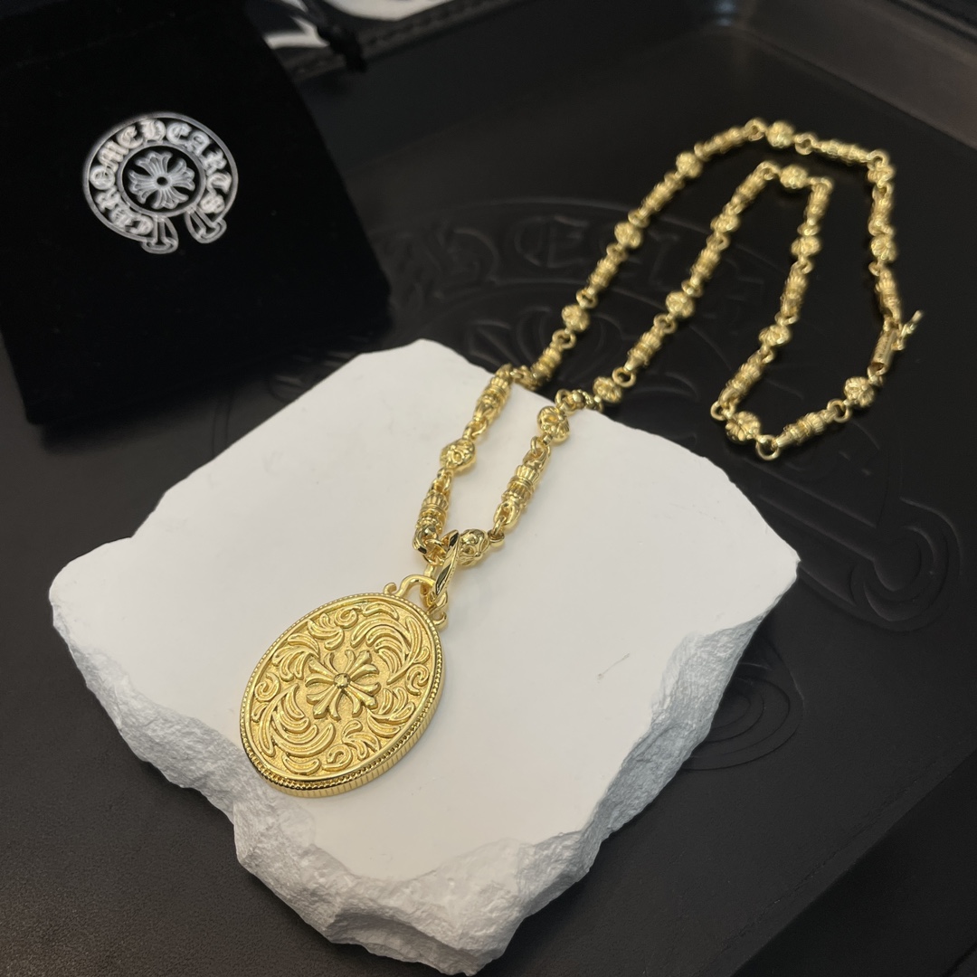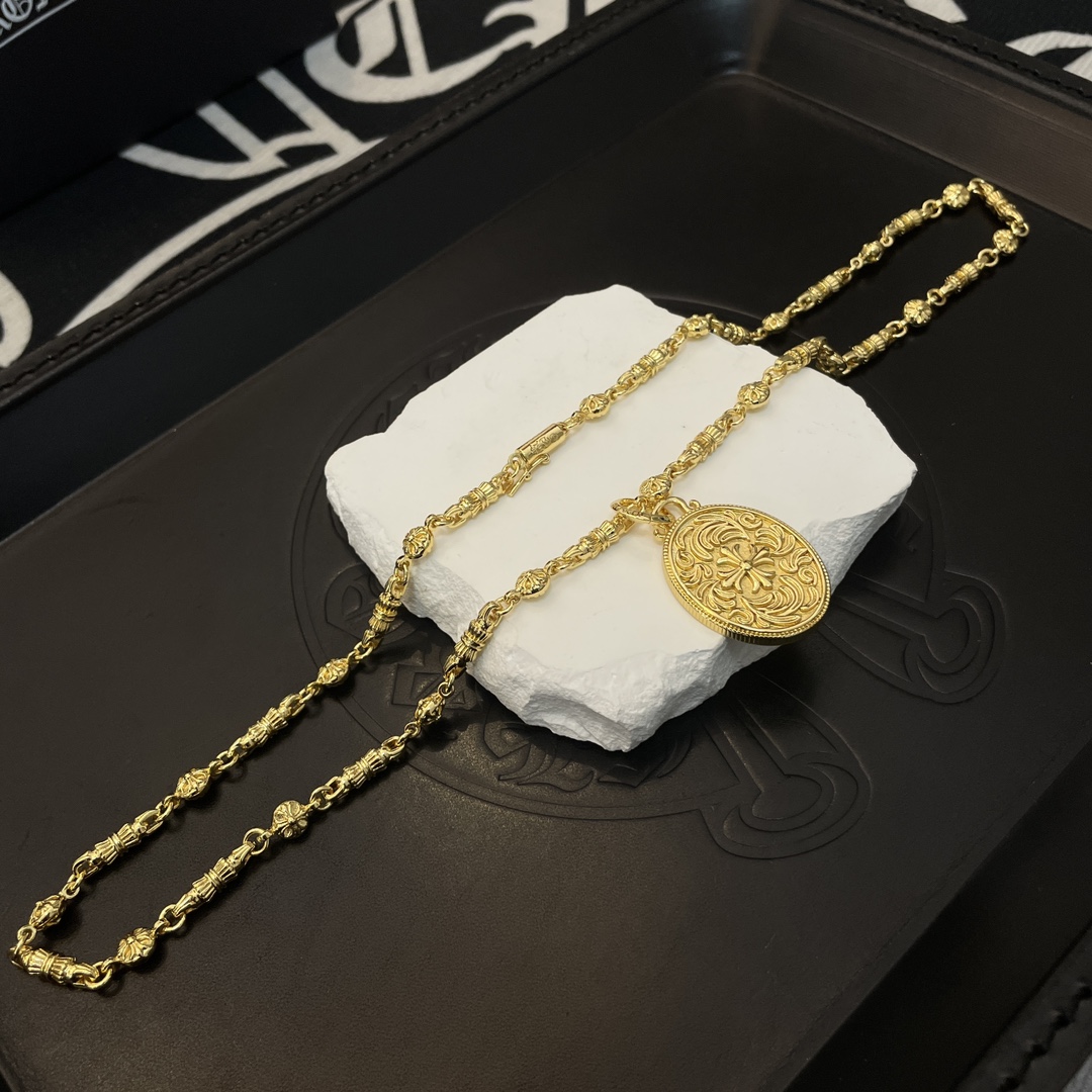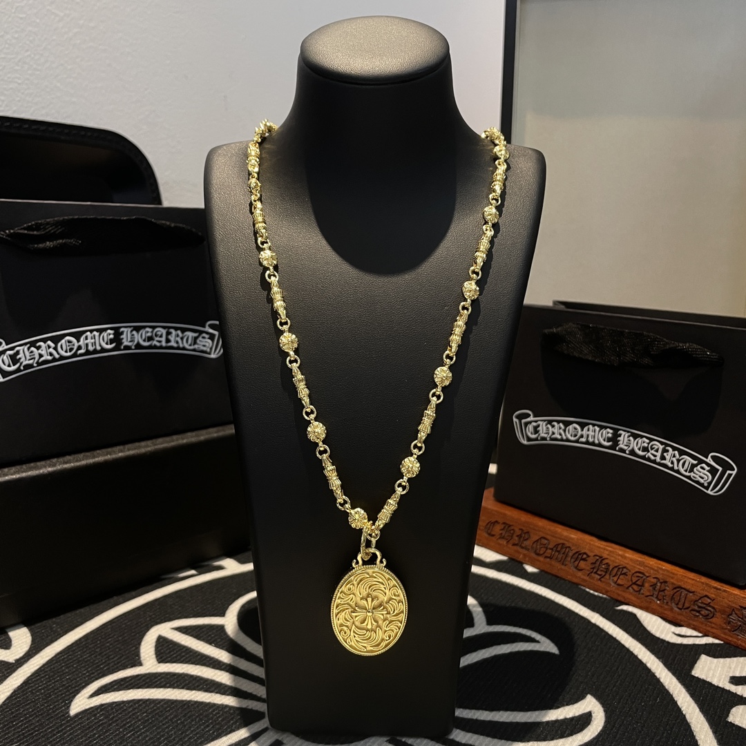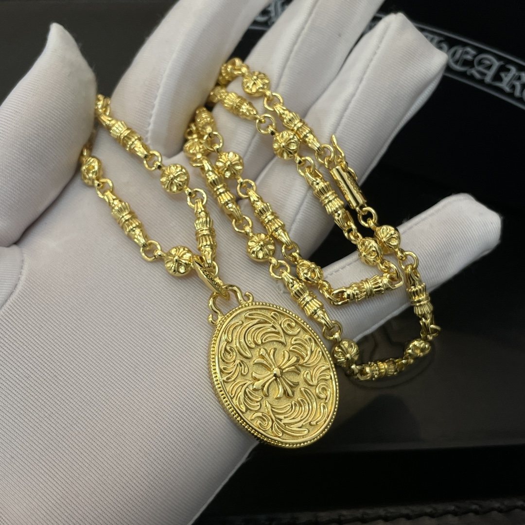 抖音/快手/ins/小红书/直播热门 ,新款【专柜品质】Chrome Hearts克罗心黄金十字花球项链 ,藤蔓十字花吊坠,凹凸造型不同的花纹设计风格 呈现出与众不同 十字架 童军花是克罗心的志 所以更经久不衰 正品打版Chrome Hearts克罗心 区别市场普通轻版 对版对标品质 看字印细节 复古做旧灰氧程度.精工版本!!! 纯手工打造 ~正品开模 潮流时尚必备 男女均可佩戴 情侣同款 官网原版 摇滚朋克泰银风格 复古元素 潮流百搭!