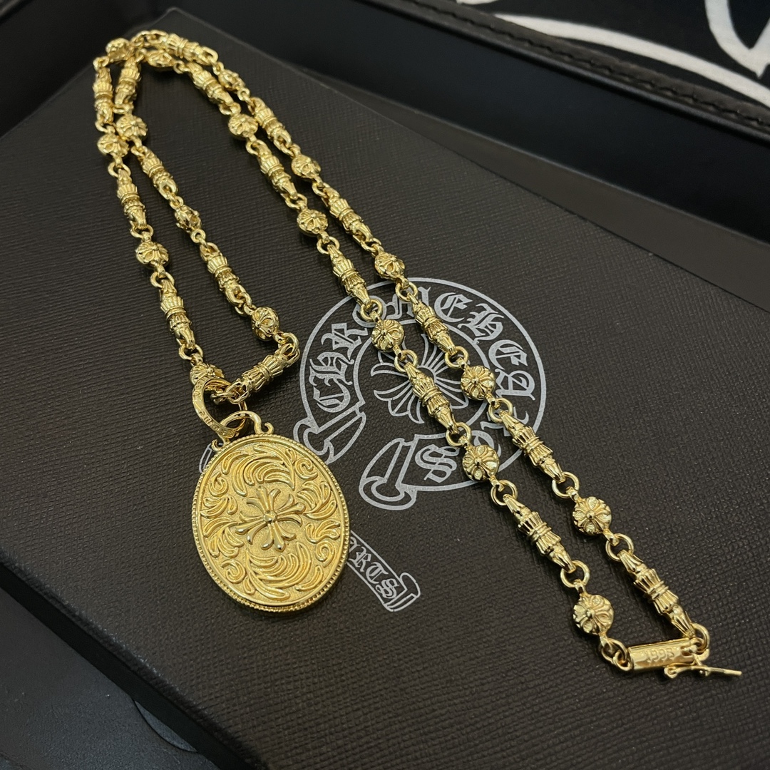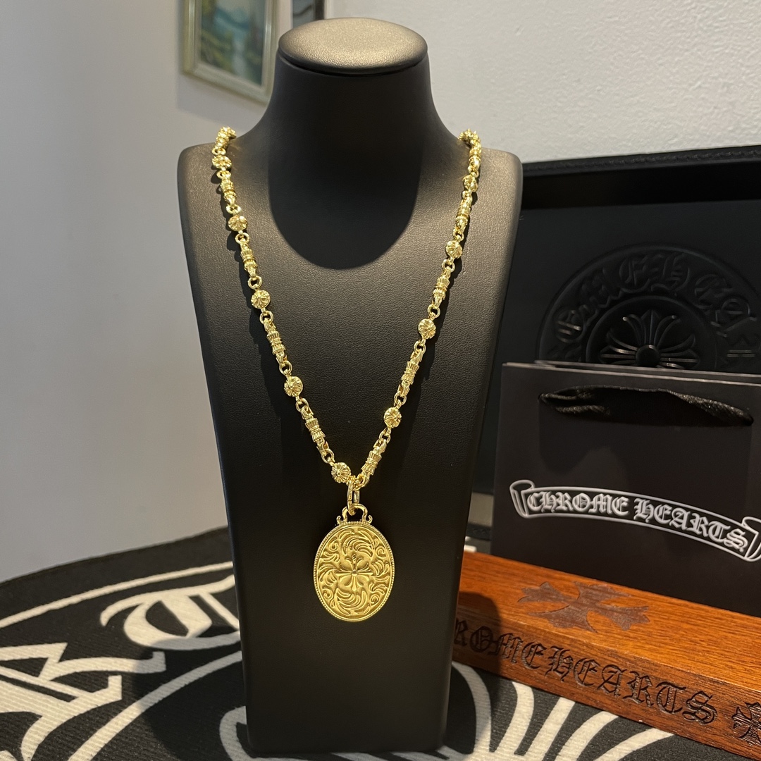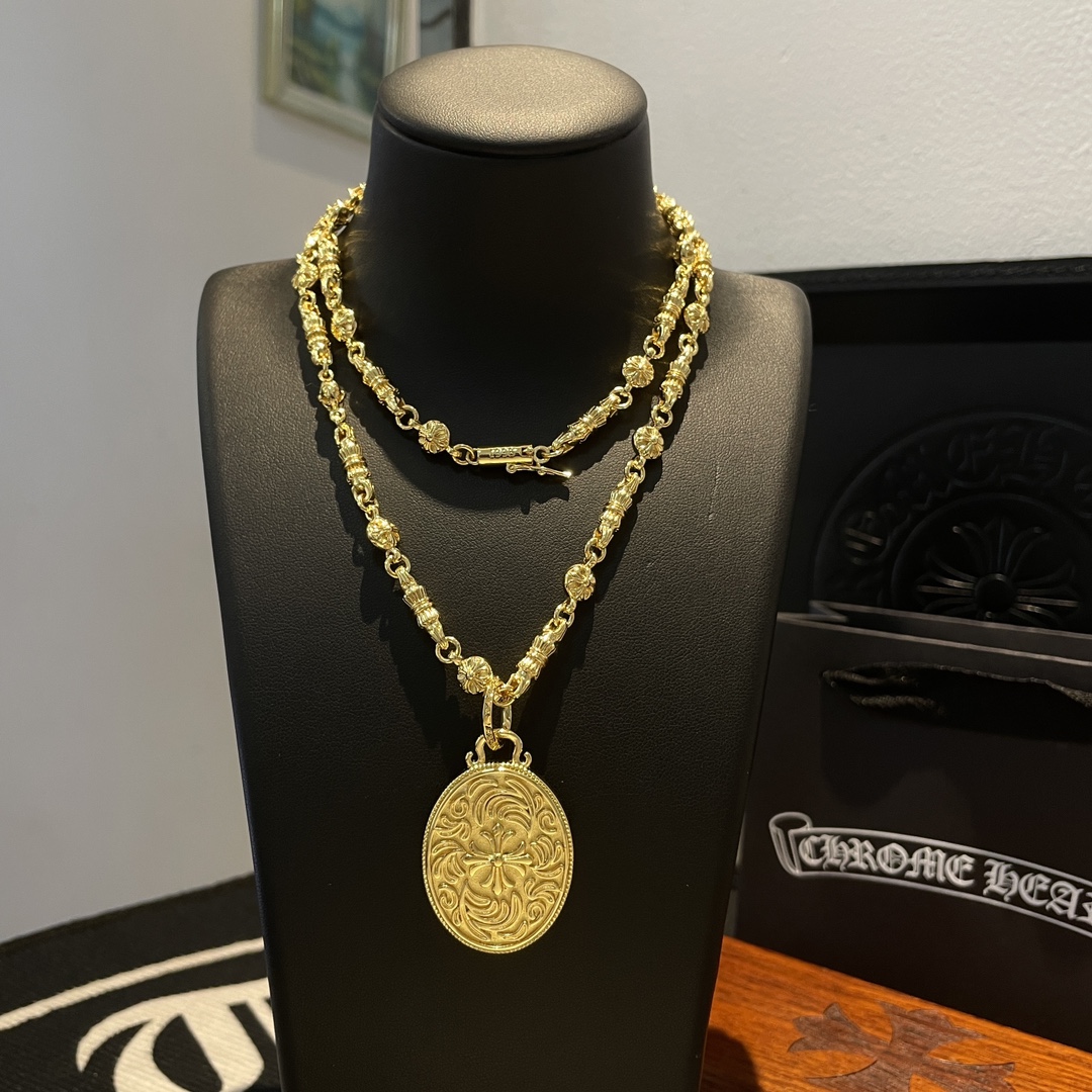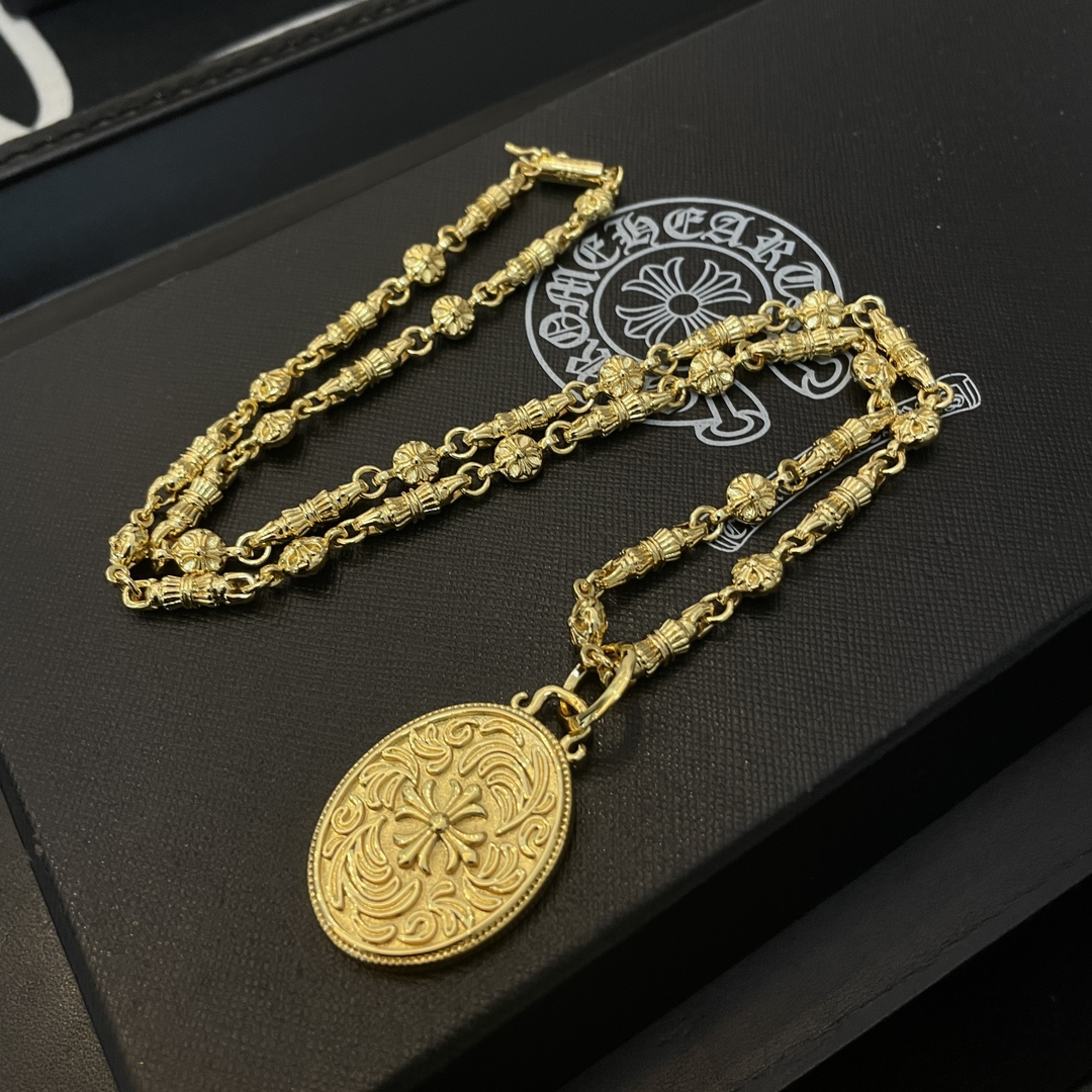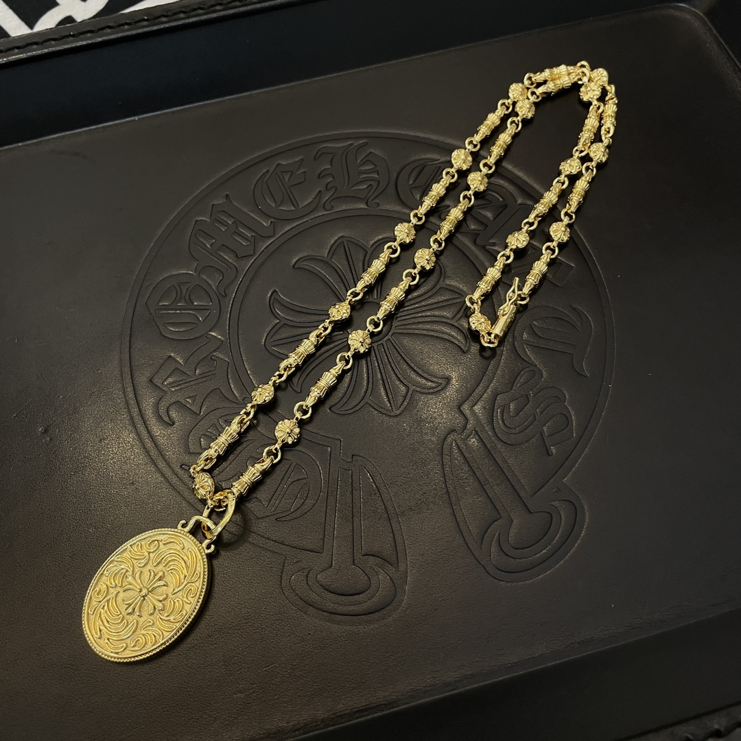 抖音/快手/ins/小红书/直播热门 ,新款【专柜品质】Chrome Hearts克罗心黄金十字花球项链 ,藤蔓十字花吊坠,凹凸造型不同的花纹设计风格 呈现出与众不同 十字架 童军花是克罗心的志 所以更经久不衰 正品打版Chrome Hearts克罗心 区别市场普通轻版 对版对标品质 看字印细节 复古做旧灰氧程度.精工版本!!! 纯手工打造 ~正品开模 潮流时尚必备 男女均可佩戴 情侣同款 官网原版 摇滚朋克泰银风格 复古元素 潮流百搭!