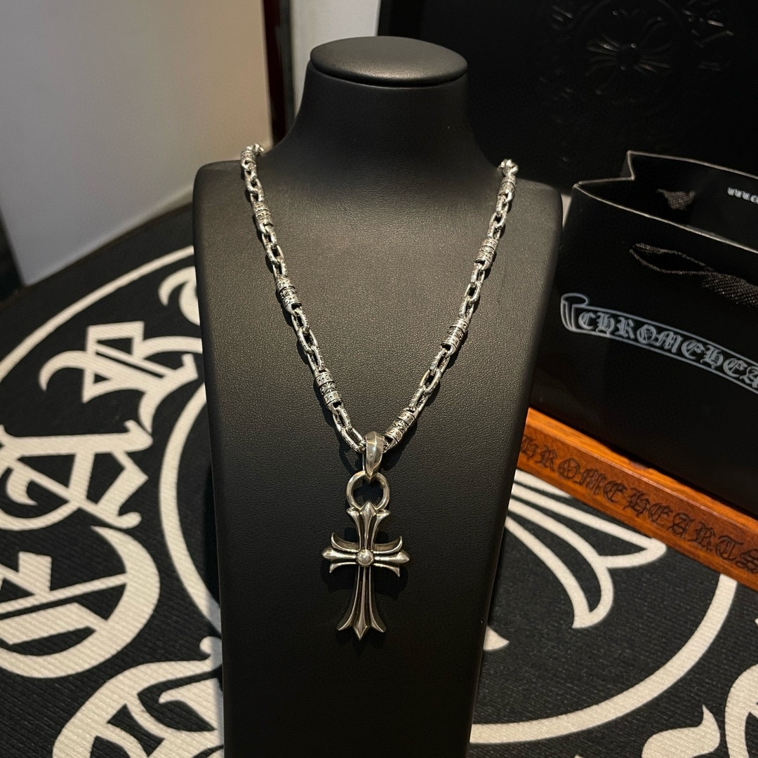 抖音/快手/ins/小红书/直播热门 ,新款【专柜品质】Chrome Hearts克罗心经典十字架项链 ,十字架吊坠,凹凸造型不同的花纹设计风格 呈现出与众不同 十字架 童军花是克罗心的志 所以更经久不衰 正品打版Chrome Hearts克罗心 区别市场普通轻版 对版对标品质 看字印细节 复古做旧灰氧程度.精工版本!!! 纯手工打造 ~正品开模 潮流时尚必备 男女均可佩戴 情侣同款 官网原版 摇滚朋克泰银风格 复古元素 潮流百搭!
