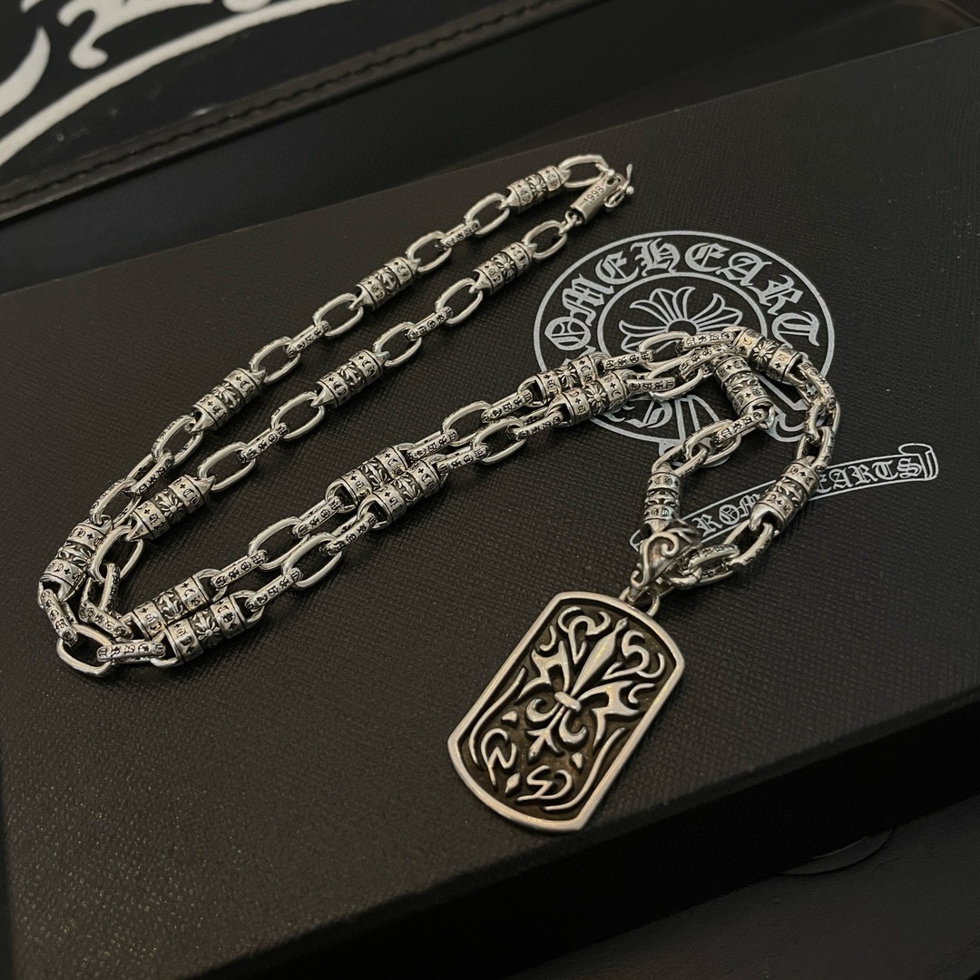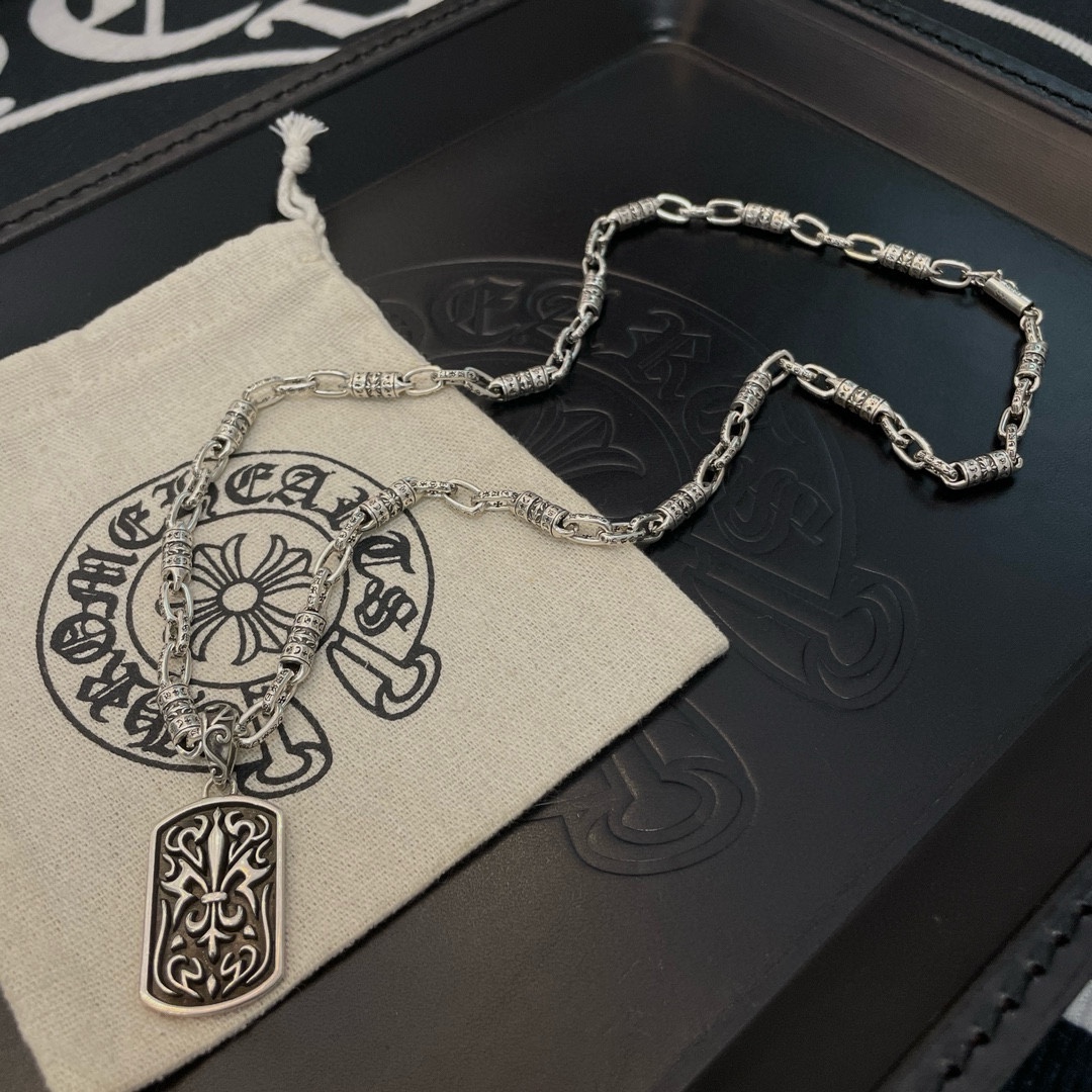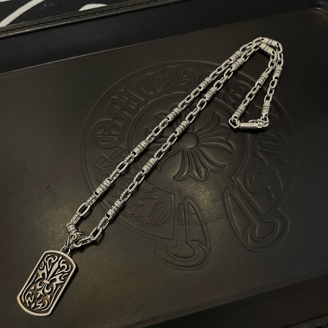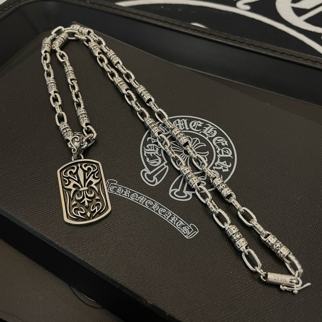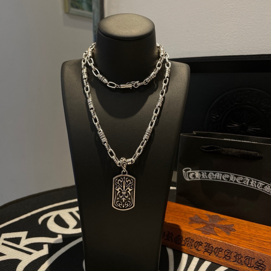 抖音/快手/ins/小红书/直播热门 ,新款【专柜品质】Chrome Hearts克罗心经典十字架项链 ,军牌吊坠,凹凸造型不同的花纹设计风格 呈现出与众不同 十字架 童军花是克罗心的志 所以更经久不衰 正品打版Chrome Hearts克罗心 区别市场普通轻版 对版对标品质 看字印细节 复古做旧灰氧程度.精工版本!!! 纯手工打造 ~正品开模 潮流时尚必备 男女均可佩戴 情侣同款 官网原版 摇滚朋克泰银风格 复古元素 潮流百搭!