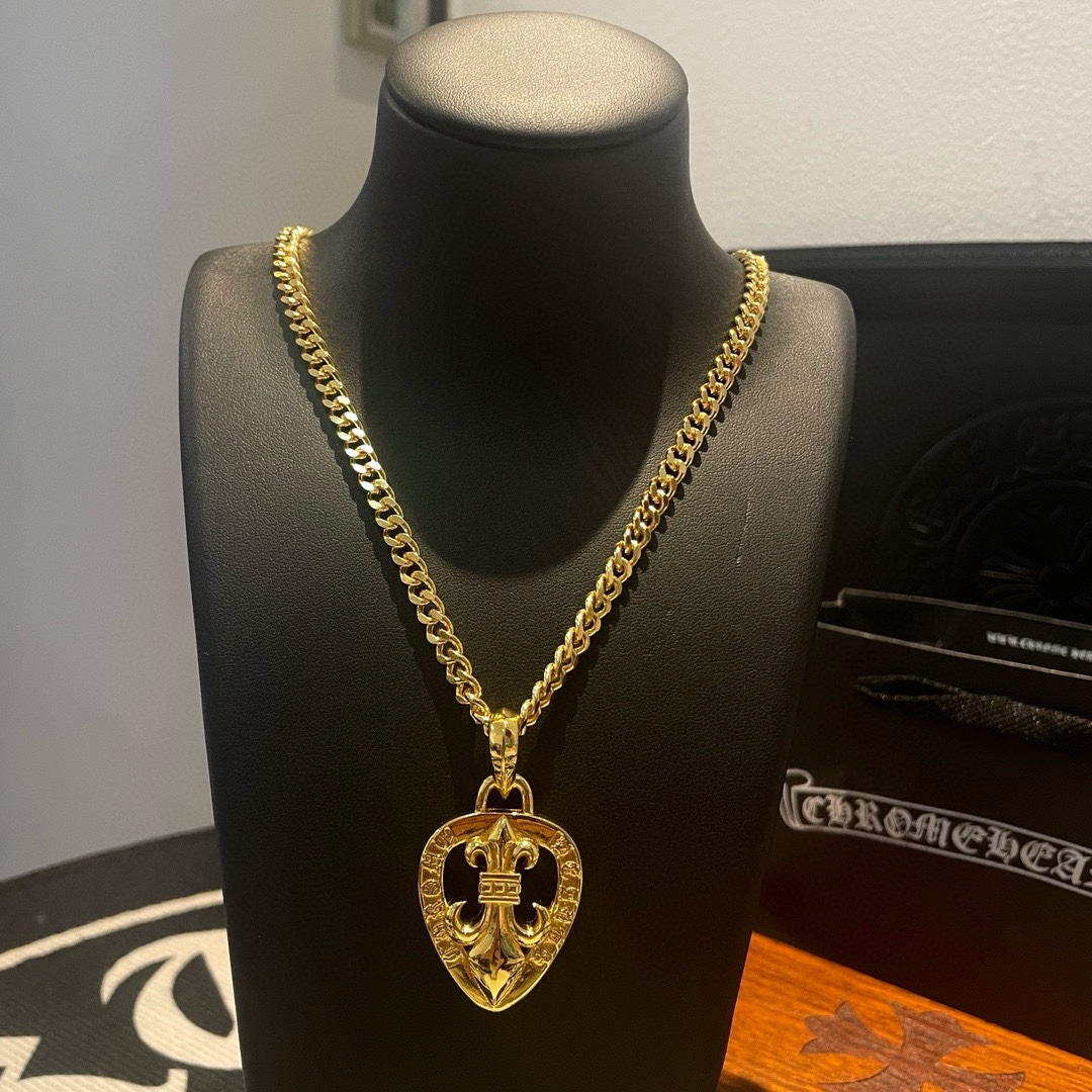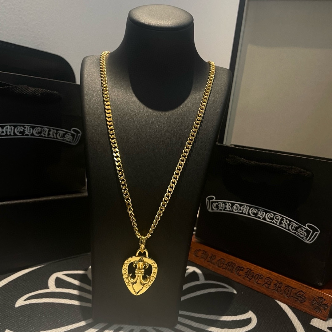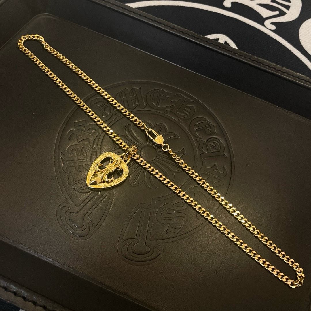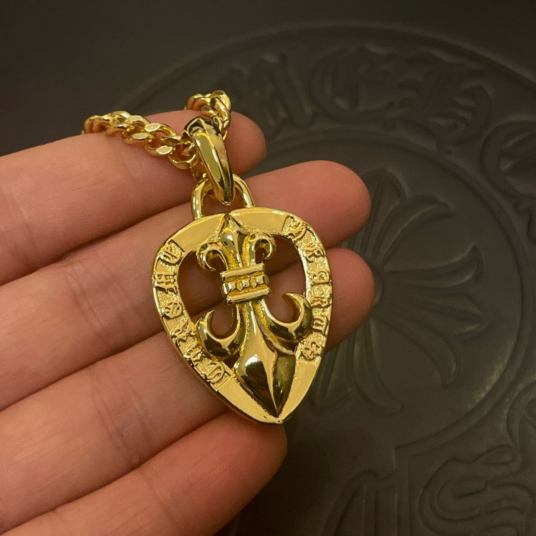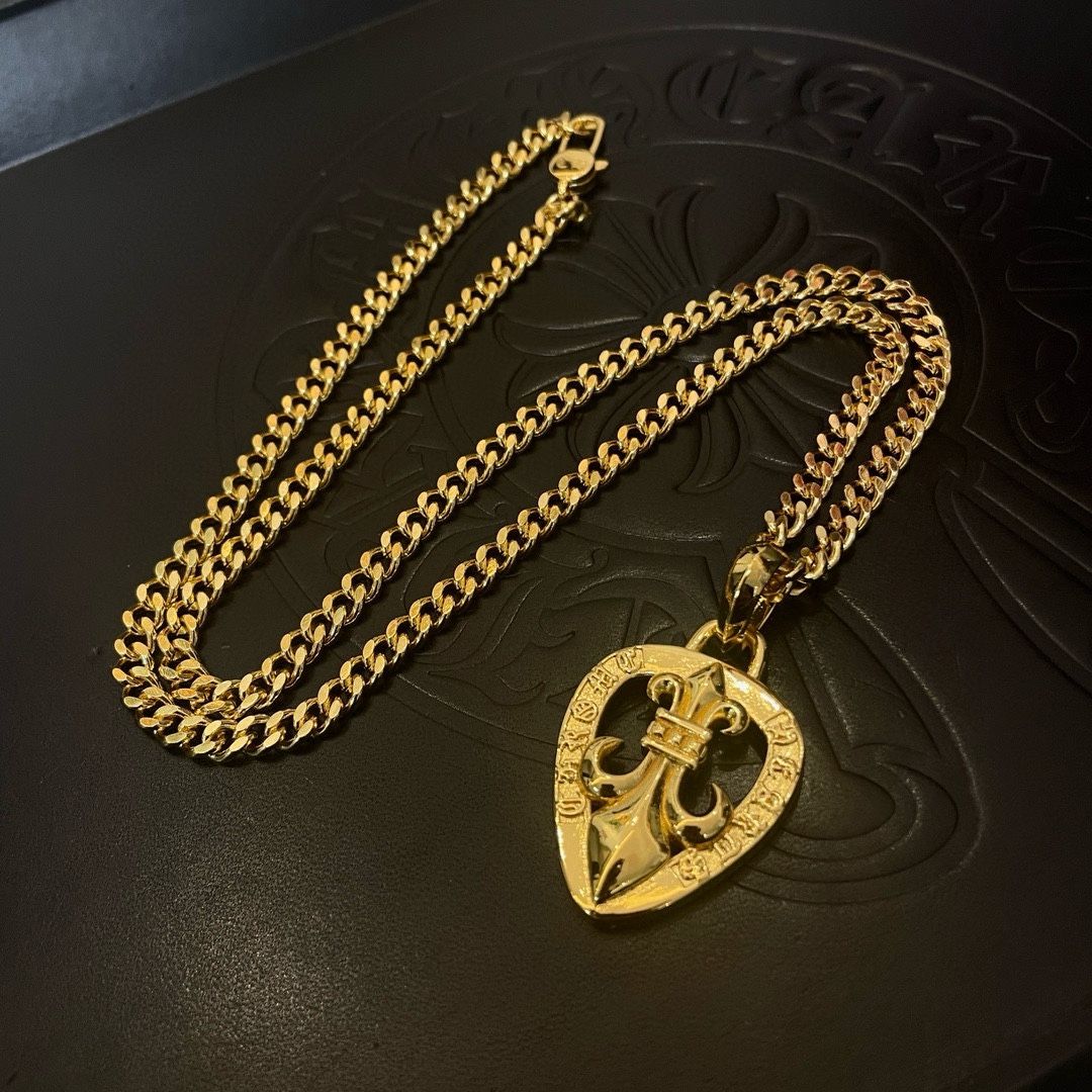抖音/快手/ins/小红书/直播热门 ,新款【专柜品质】Chrome Hearts克罗心黄金色经典项链项链 ,心型童军花吊坠,凹凸造型不同的花纹设计风格 呈现出与众不同 十字架 童军花是克罗心的志 所以更经久不衰 正品打版Chrome Hearts克罗心 区别市场普通轻版 对版对标品质 看字印细节 复古做旧灰氧程度.精工版本!!! 纯手工打造 ~正品开模 潮流时尚必备 男女均可佩戴 情侣同款 官网原版 摇滚朋克泰银风格 复古元素 潮流百搭!