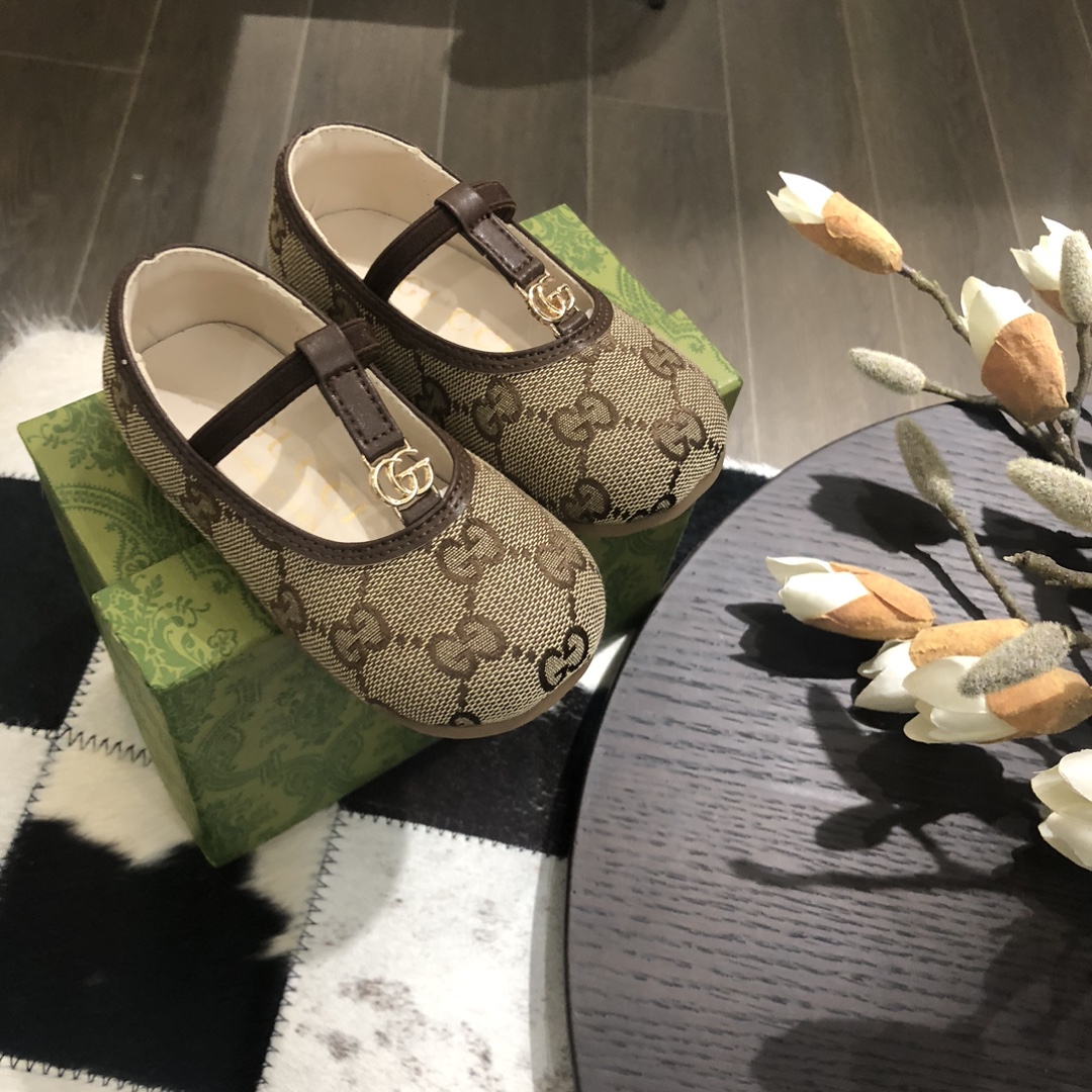 新品独家上市 25年 早春新款 GUCC*儿童BB鞋 橡皮筋设计 (无须携带) 皮配定制经典格子小宝必备单品 适合1-3岁小朋友 内长12.5cm-15.cm.
