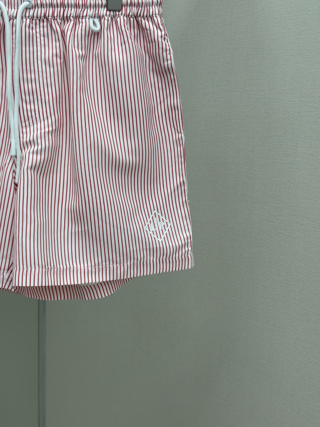新品LP海滩条纹泳裤,侧缝口袋,后口袋,弹性拉绳腰围,弹力腰围,内置网眼三角裤,中长款。面料:涤纶68%,尼龙32%,衬里:涤纶100%,SIZE:S M L XL