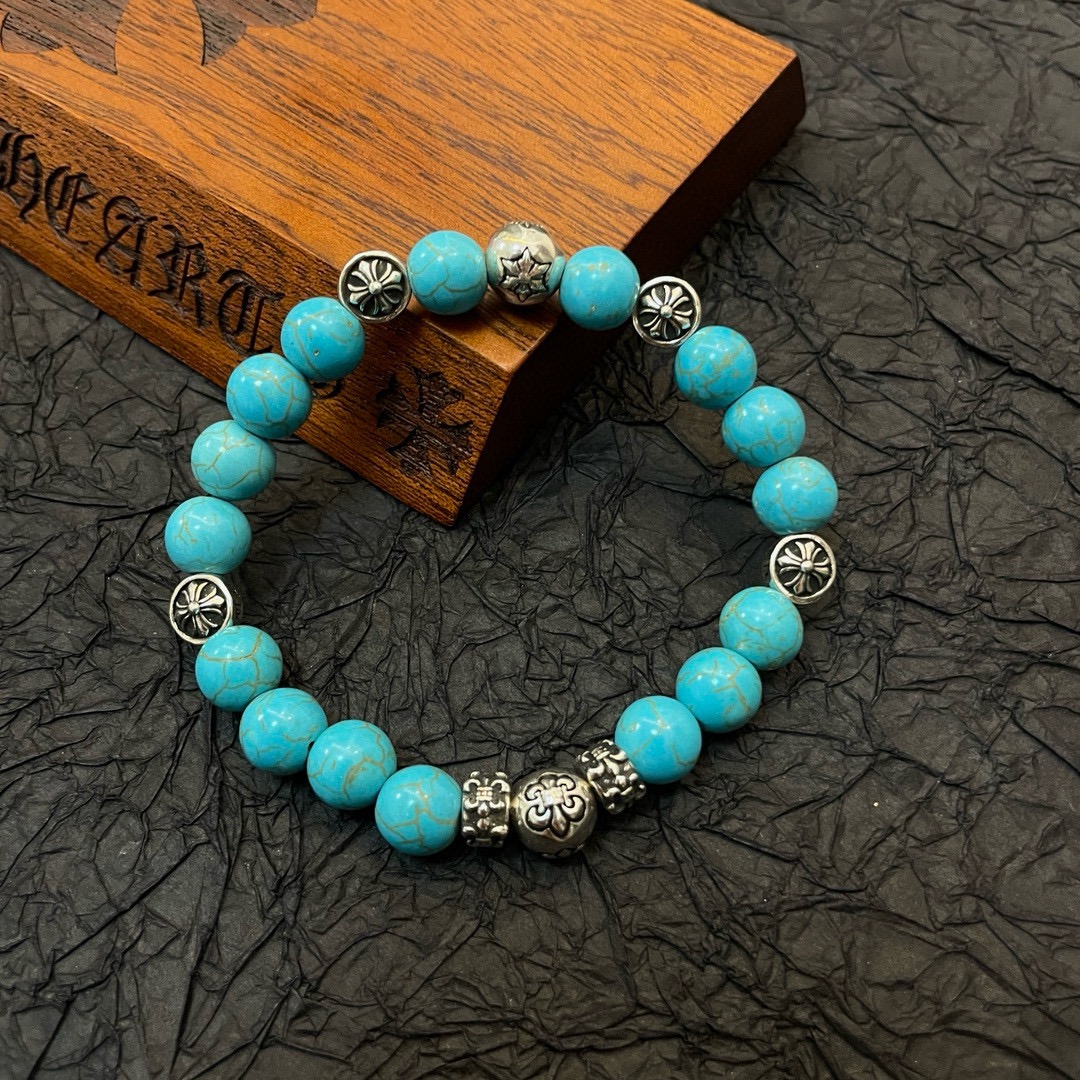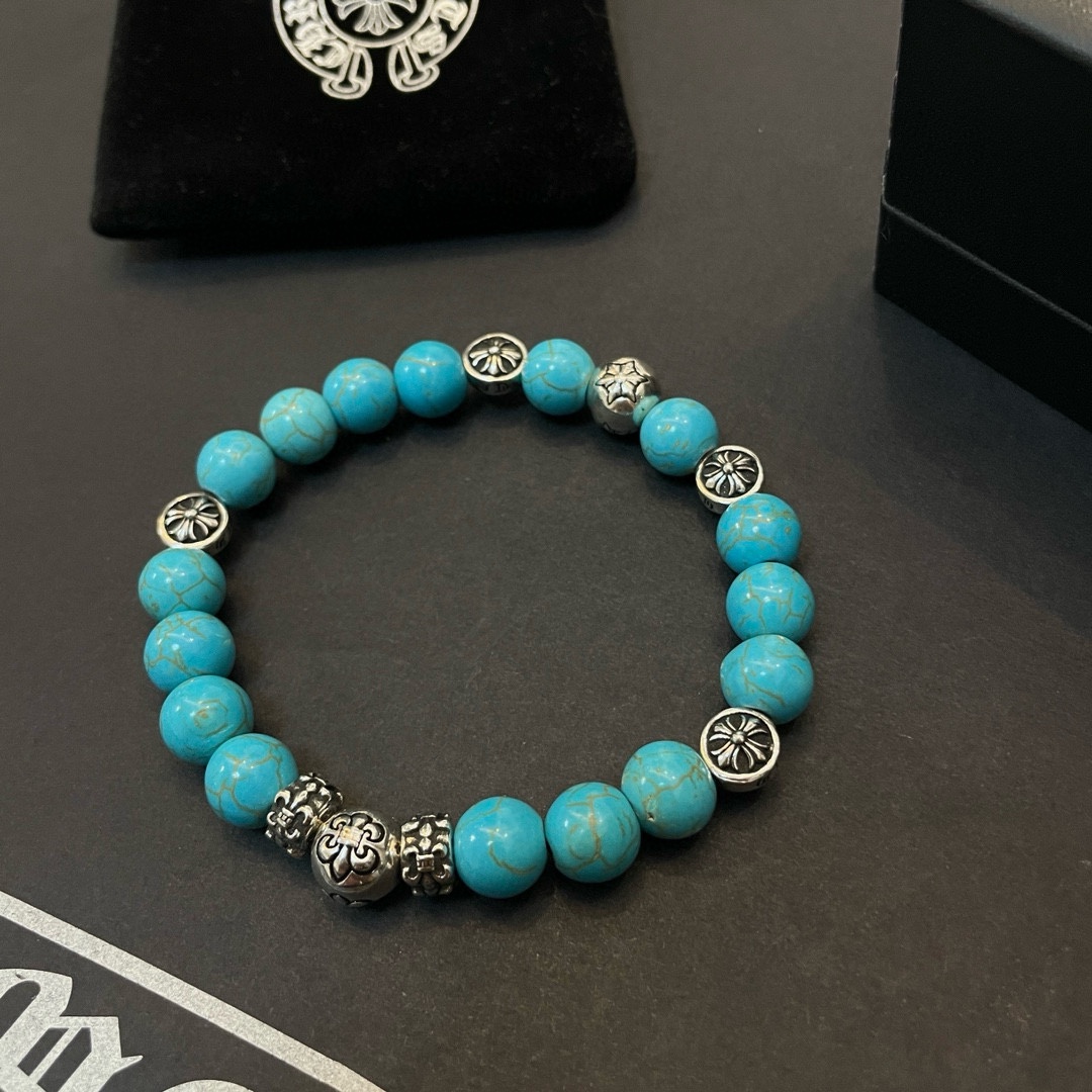 新款【专柜品质】Chrome Hearts克罗心 经典复古多元素蓝松石手串手链 ,快手/ins/小红书热门,凹凸造型不同的花纹设计风格呈现出与众不同 十字架童军花是克罗心的标志 所以更经久不衰 正品打版Chrome Hearts克罗心 区别市场普通轻版 对版对标品质 看字印细节 复古做旧灰氧程度.精工版本!