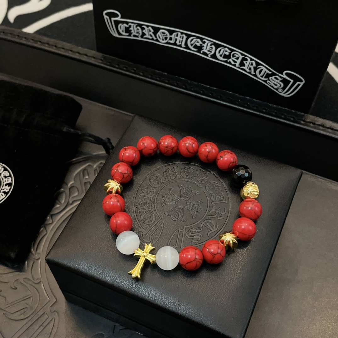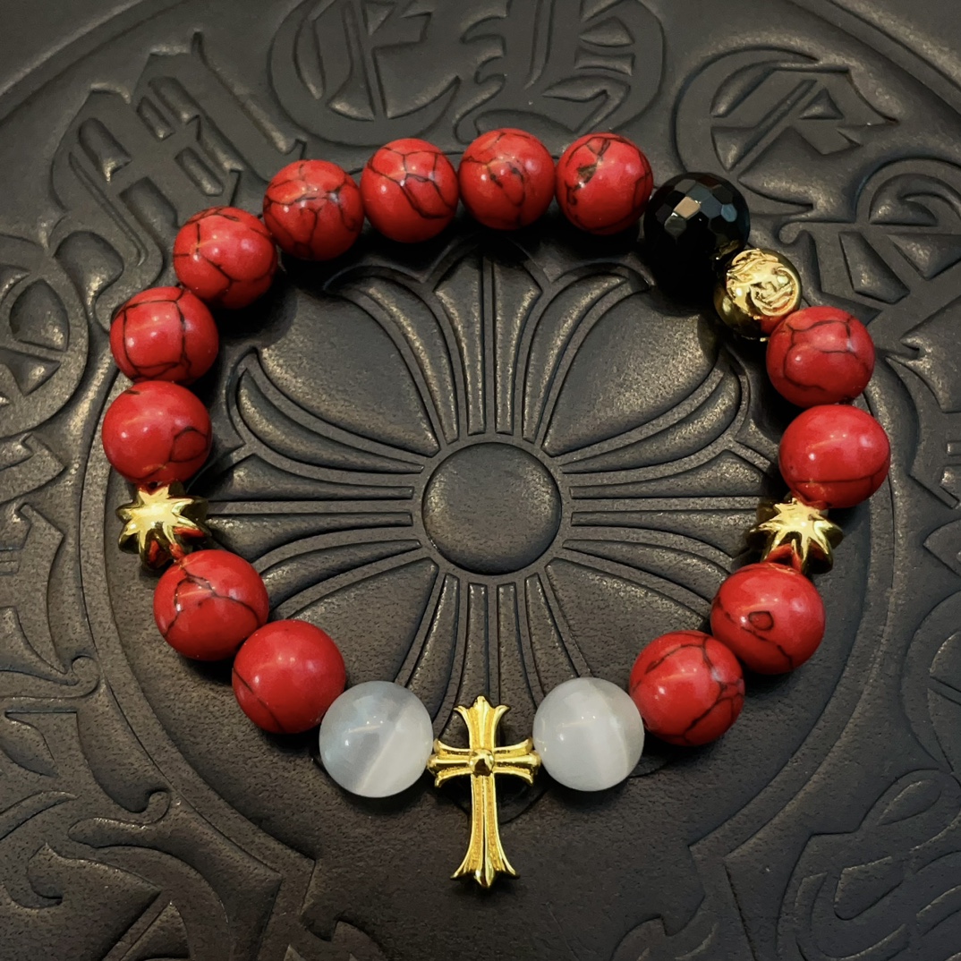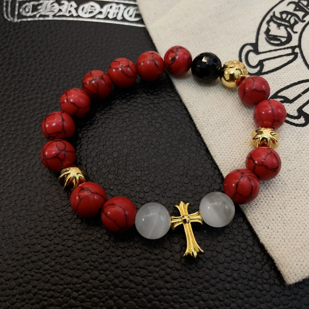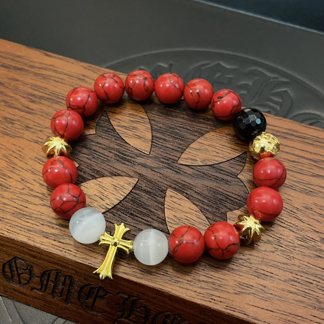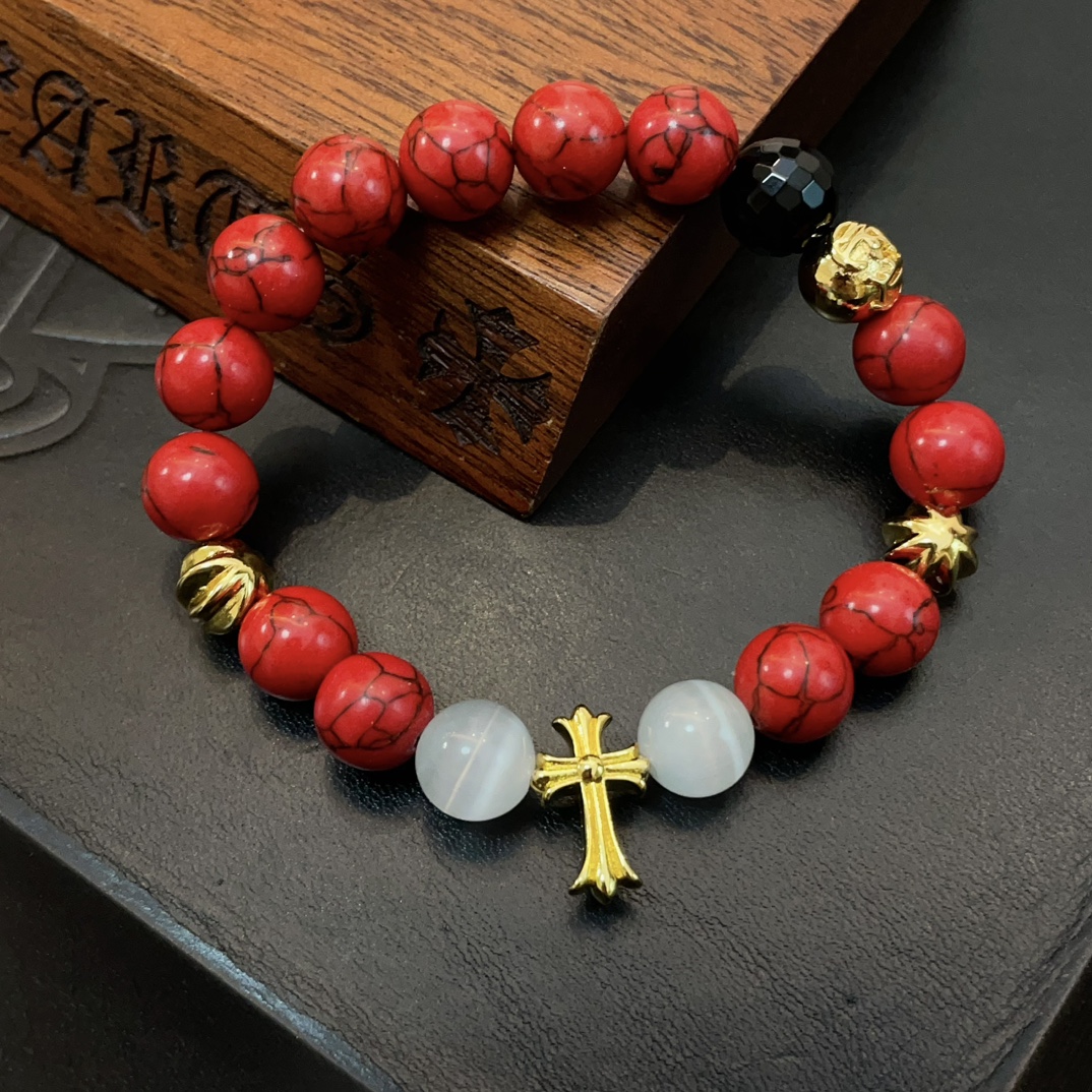 新款【专柜品质】Chrome Hearts克罗心 经典复古多元素红松石手串手链 ,快手/ins/小红书热门,凹凸造型不同的花纹设计风格呈现出与众不同 十字架童军花是克罗心的标志 所以更经久不衰 正品打版Chrome Hearts克罗心 区别市场普通轻版 对版对标品质 看字印细节 复古做旧灰氧程度.精工版本!