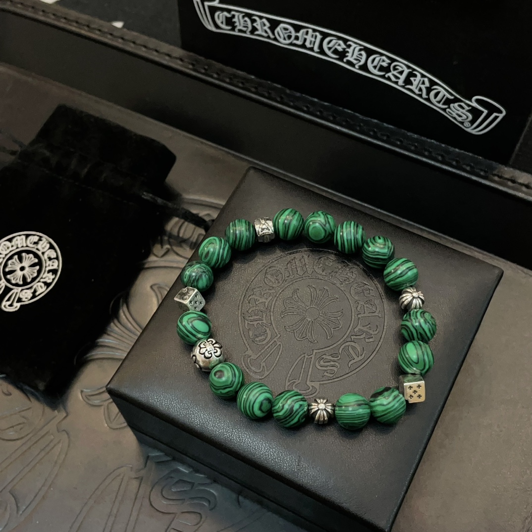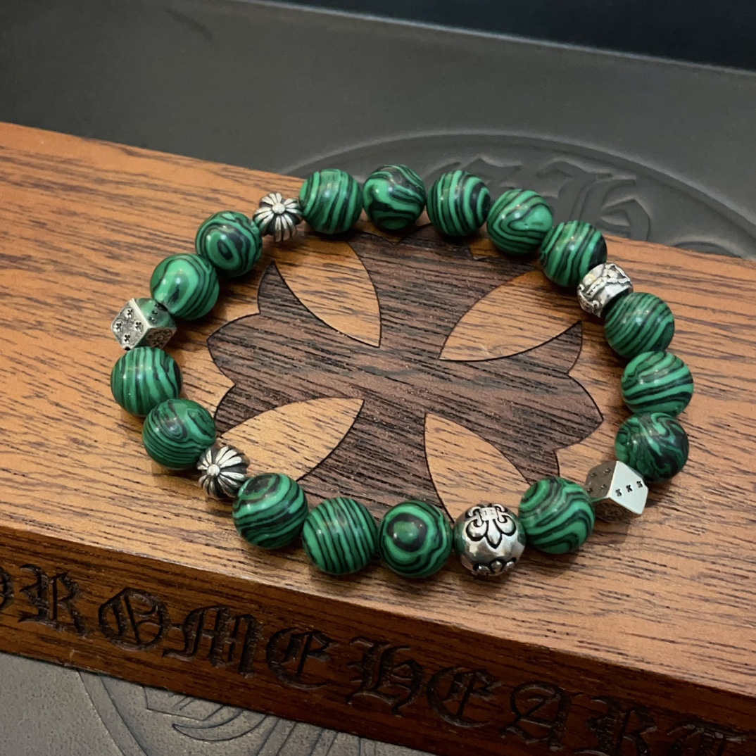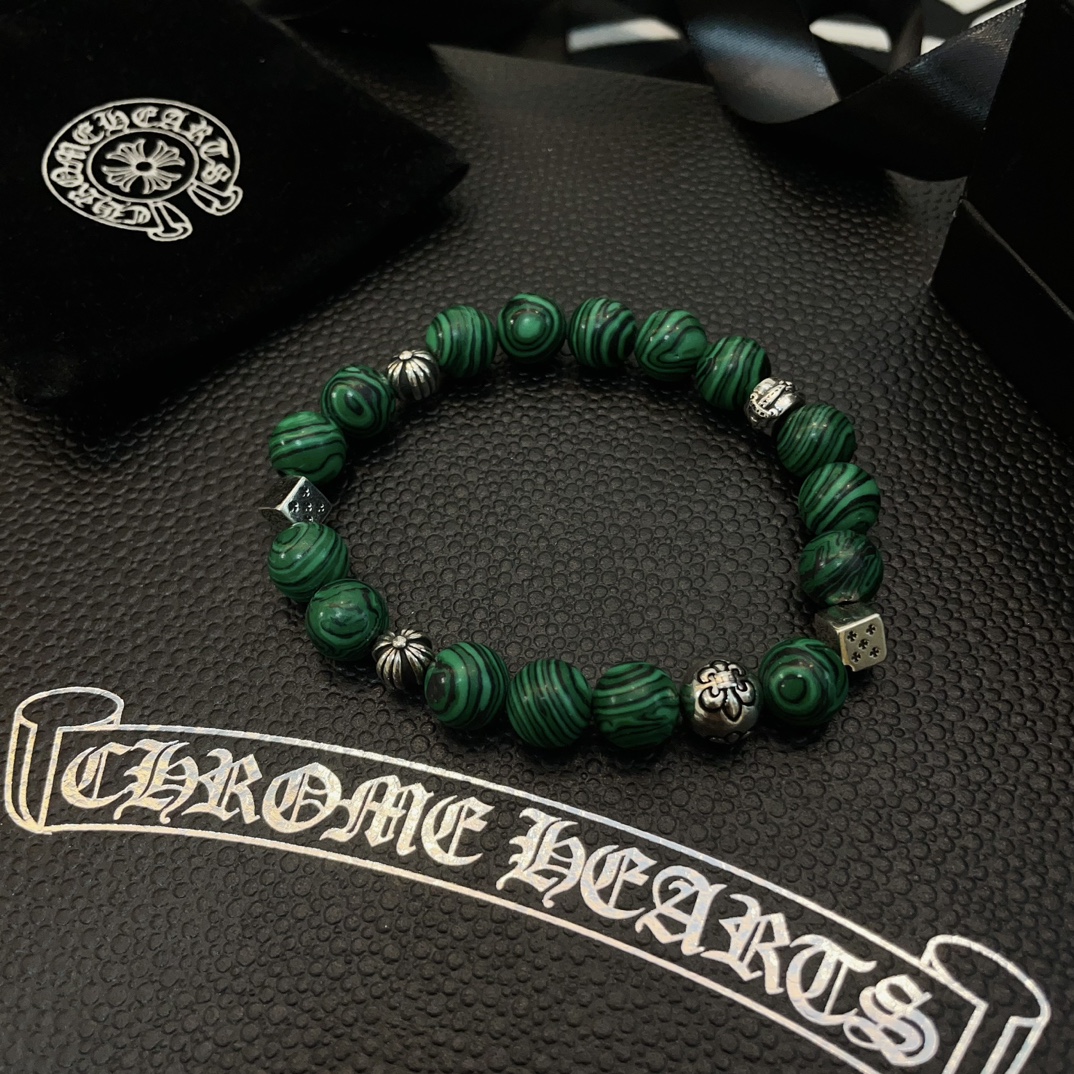 新款【专柜品质】Chrome Hearts克罗心 经典复古多元素孔雀石手串手链 ,快手/ins/小红书热门,凹凸造型不同的花纹设计风格呈现出与众不同 十字架童军花是克罗心的标志 所以更经久不衰 正品打版Chrome Hearts克罗心 区别市场普通轻版 对版对标品质 看字印细节 复古做旧灰氧程度.精工版本!