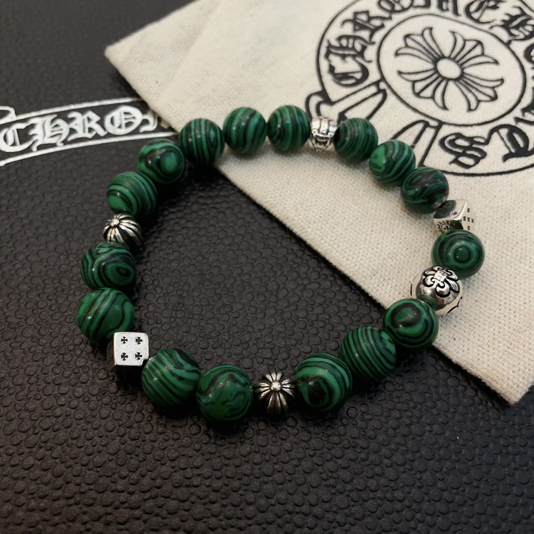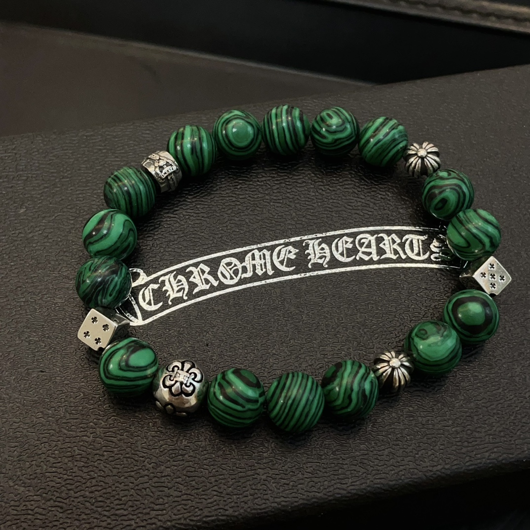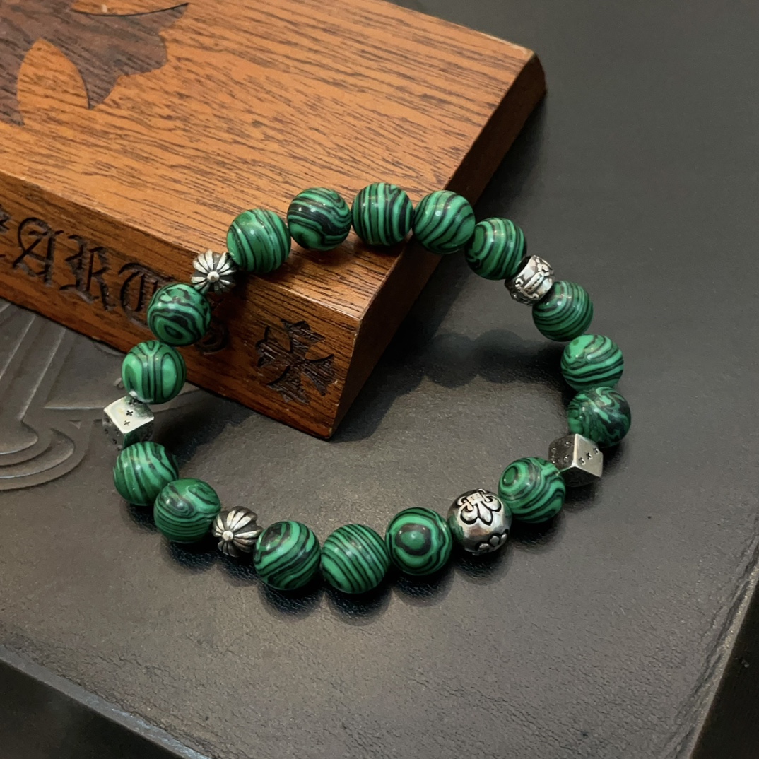 新款【专柜品质】Chrome Hearts克罗心 经典复古多元素孔雀石手串手链 ,快手/ins/小红书热门,凹凸造型不同的花纹设计风格呈现出与众不同 十字架童军花是克罗心的标志 所以更经久不衰 正品打版Chrome Hearts克罗心 区别市场普通轻版 对版对标品质 看字印细节 复古做旧灰氧程度.精工版本!