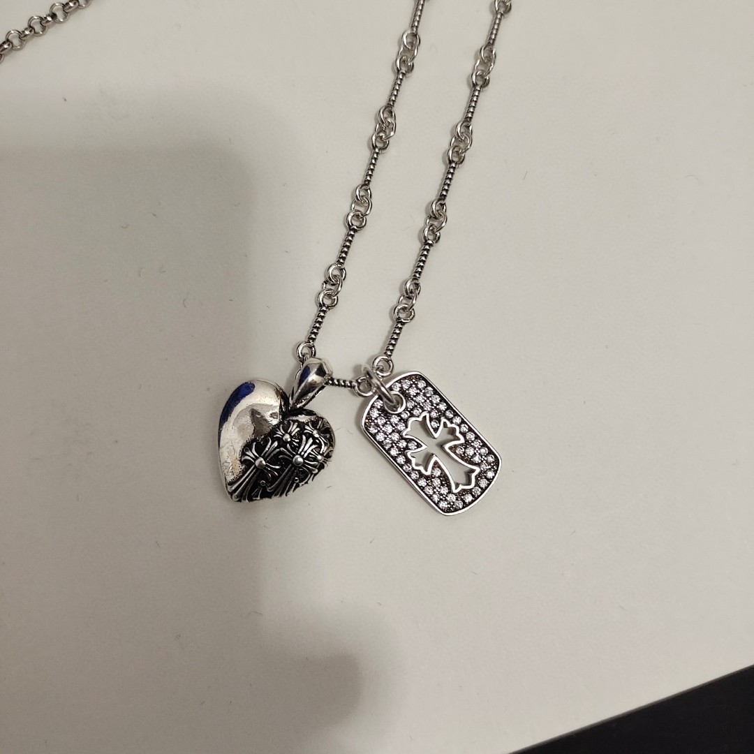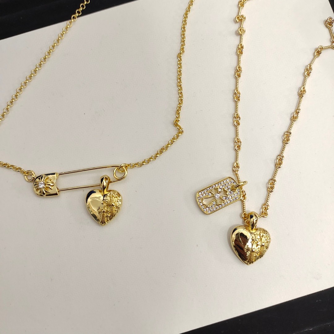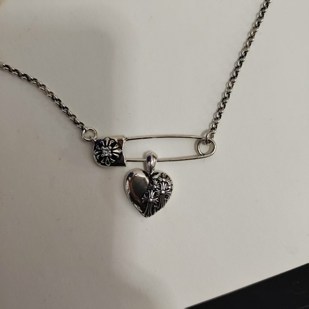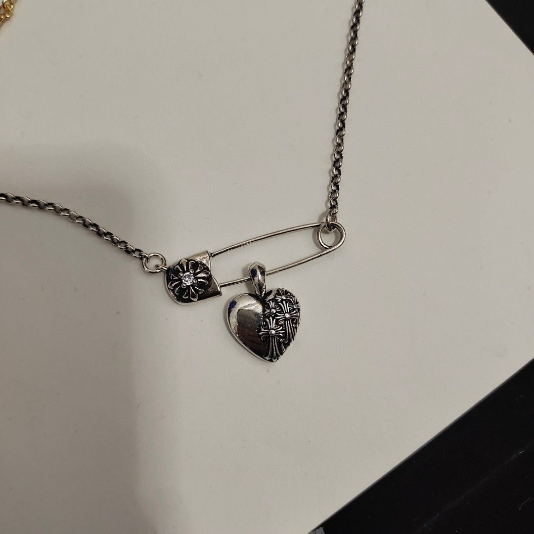 新款【专柜品质】Chrome Hearts克罗心复古金色别针项链 桃心吊坠 凹凸造型不同的花纹设计风格 呈现出与众不同 十字架 童军花是克罗心的志 所以更经久不衰 正品打版Chrome Hearts克罗心 区别市场普通轻版 对版对标品质 看字印细节 复古做旧灰氧程度.精工版本!!! 纯手工打造 ~正品开模 潮流时尚必备 男女均可佩戴 情侣同款 官网原版 摇滚朋克泰银风格 复古元素 潮流百搭!