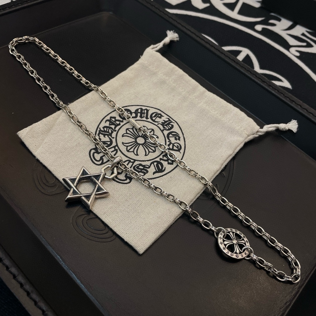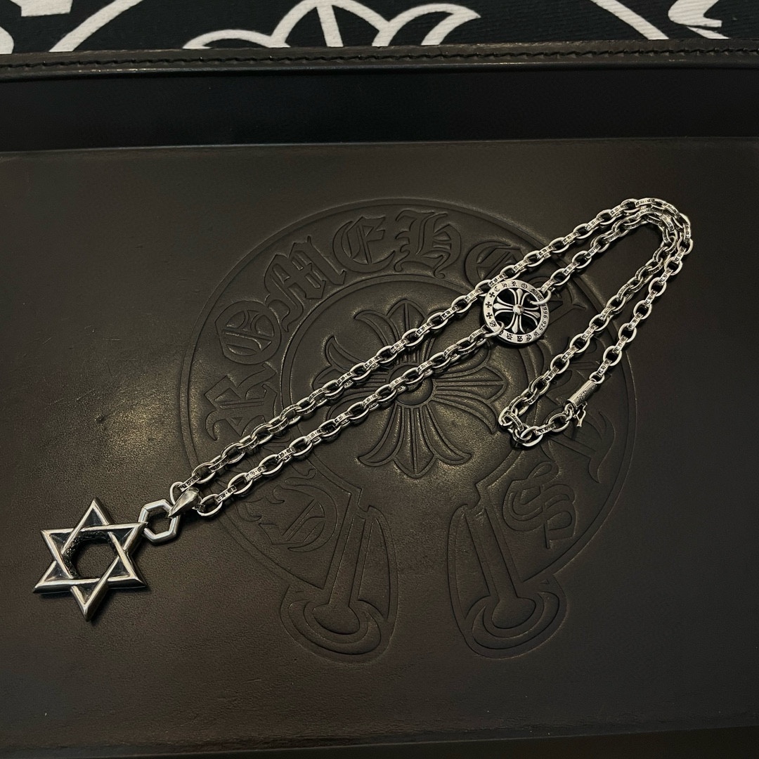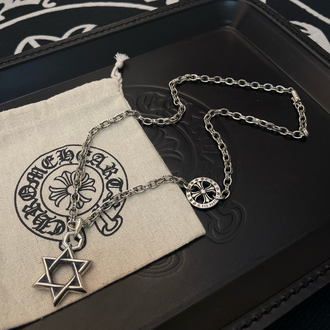 新款【专柜品质】Chrome Hearts克罗心十字架项链 六芒星吊坠 快手/ins/小红书热门 凹凸造型不同的花纹设计风格 呈现出与众不同 十字架 童军花是克罗心的志 所以更经久不衰 正品打版Chrome Hearts克罗心 区别市场普通轻版 对版对标品质 看字印细节 复古做旧灰氧程度.精工版本!!! 纯手工打造 ~正品开模 潮流时尚必备 男女均可佩戴 情侣同款 官网原版 摇滚朋克泰银风格 复古元素 潮流百搭!