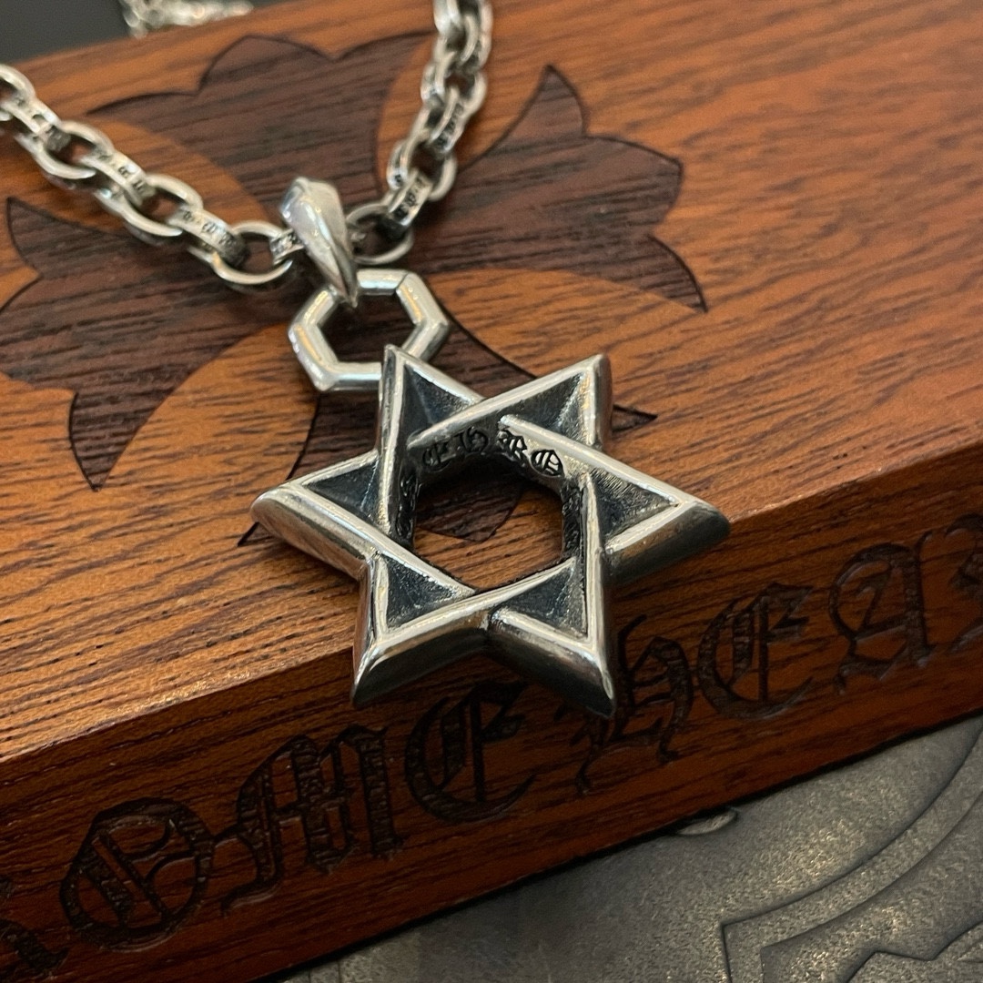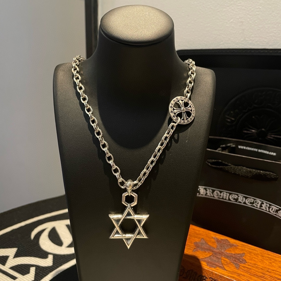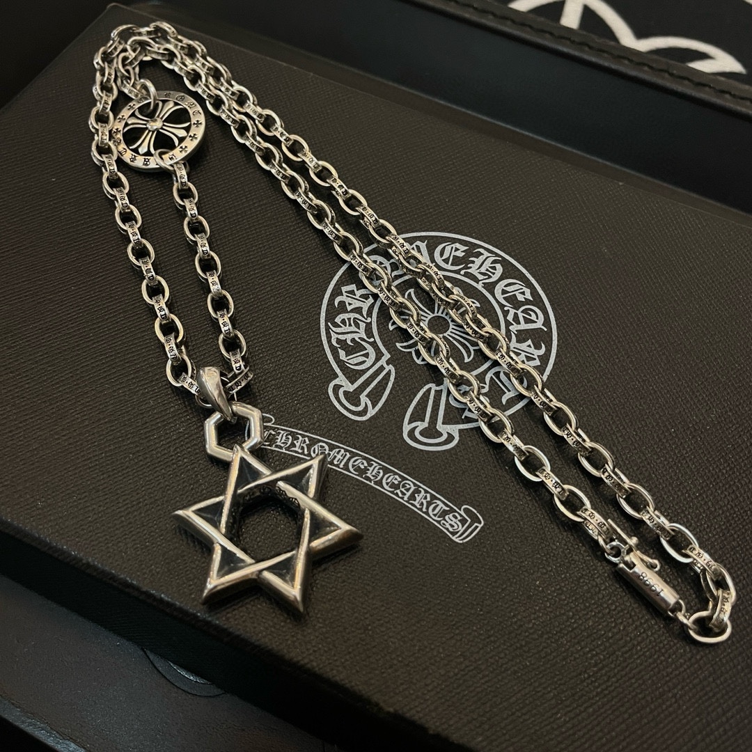 新款【专柜品质】Chrome Hearts克罗心十字架项链 六芒星吊坠 快手/ins/小红书热门 凹凸造型不同的花纹设计风格 呈现出与众不同 十字架 童军花是克罗心的志 所以更经久不衰 正品打版Chrome Hearts克罗心 区别市场普通轻版 对版对标品质 看字印细节 复古做旧灰氧程度.精工版本!!! 纯手工打造 ~正品开模 潮流时尚必备 男女均可佩戴 情侣同款 官网原版 摇滚朋克泰银风格 复古元素 潮流百搭!