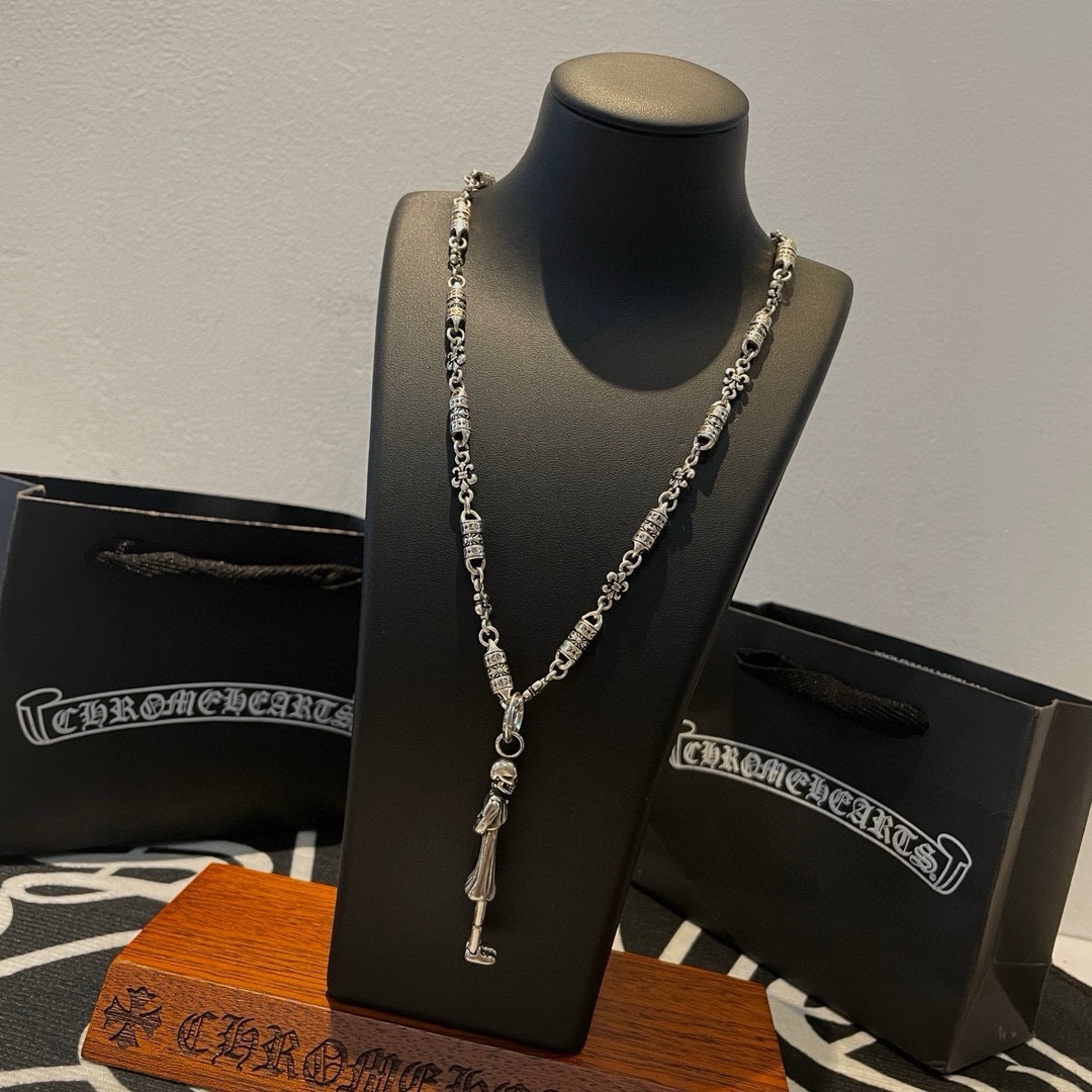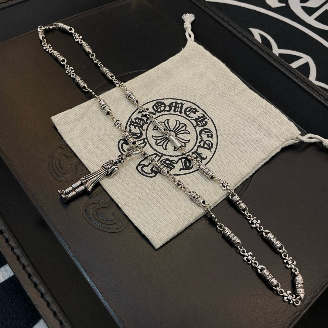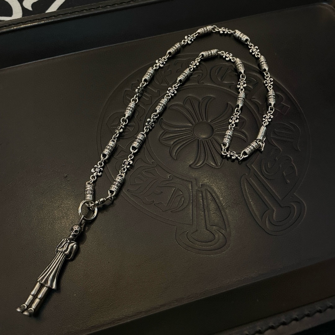 新款【专柜品质】Chrome Hearts克罗心童军花项链 女孩骷髅头吊坠 凹凸造型不同的花纹设计风格 呈现出与众不同 十字架 童军花是克罗心的志 所以更经久不衰 正品打版Chrome Hearts克罗心 区别市场普通轻版 对版对标品质 看字印细节 复古做旧灰氧程度.精工版本!!! 纯手工打造 ~正品开模 潮流时尚必备 男女均可佩戴 情侣同款 官网原版 摇滚朋克泰银风格 复古元素 潮流百搭!