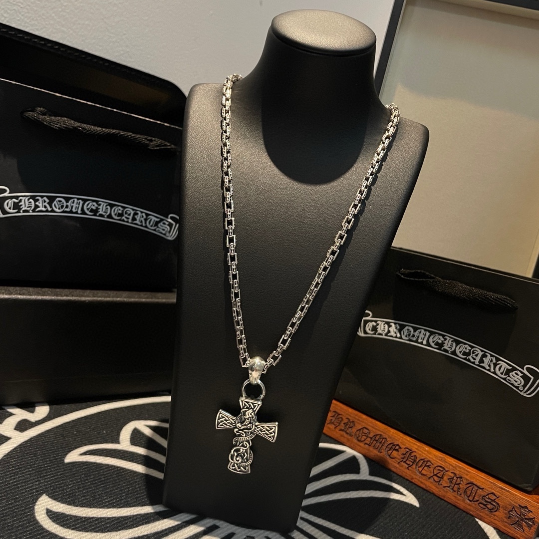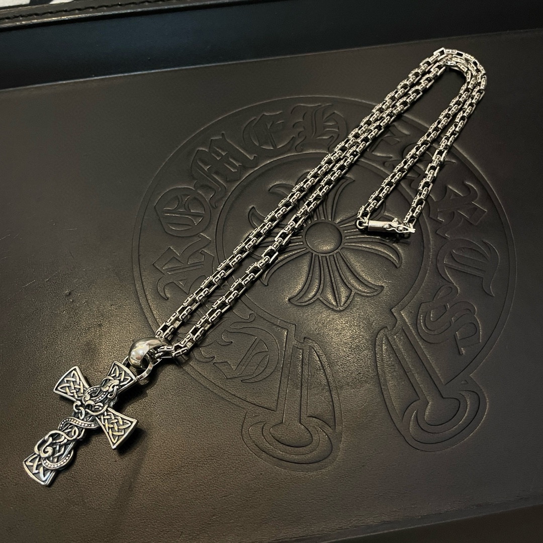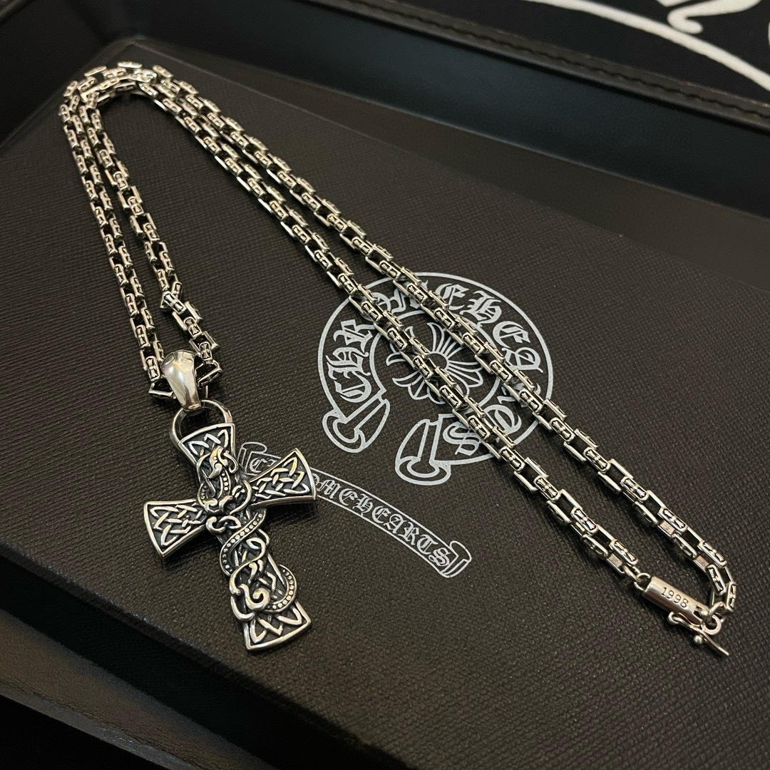 新款【专柜品质】Chrome Hearts克罗心 经典复古十字架项链 龙腾十字架吊坠 快手/ins/小红书热门 凹凸造型不同的花纹设计风格 呈现出与众不同 十字架 童军花是克罗心的志 所以更经久不衰 正品打版Chrome Hearts克罗心 区别市场普通轻版 对版对标品质 看字印细节 复古做旧灰氧程度.精工版本!!! 纯手工打造 ~正品开模 潮流时尚必备 男女均可佩戴 情侣同款 官网原版 摇滚朋克泰银风格 复古元素 潮流百搭!