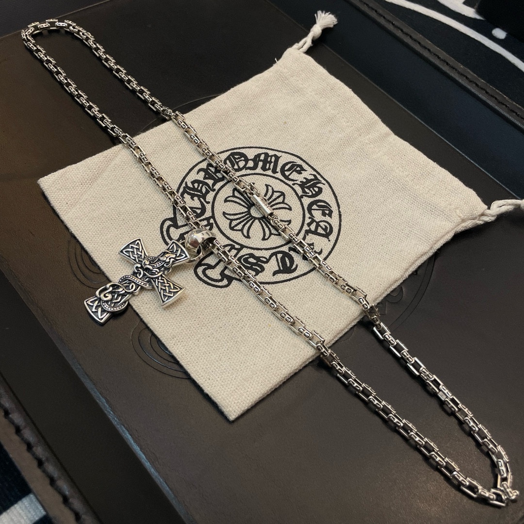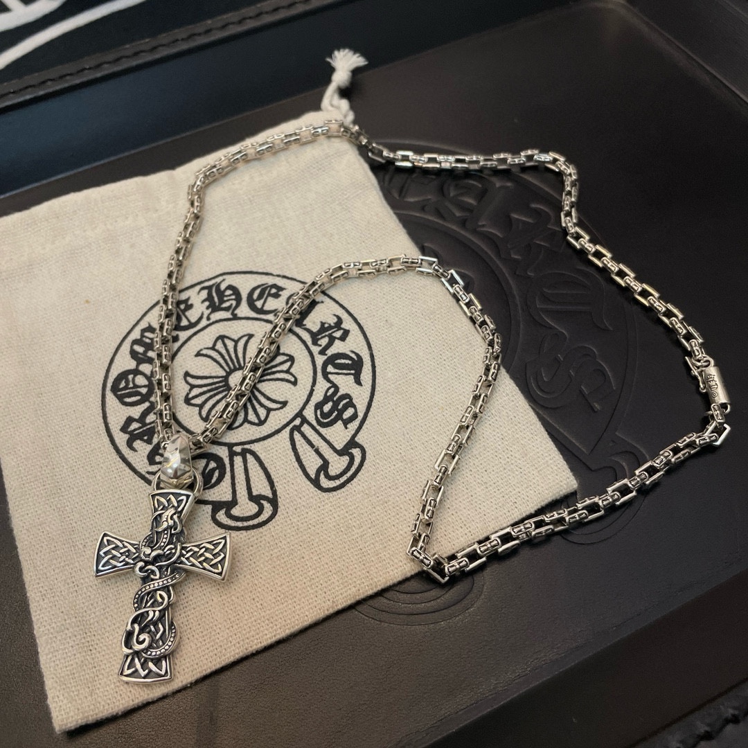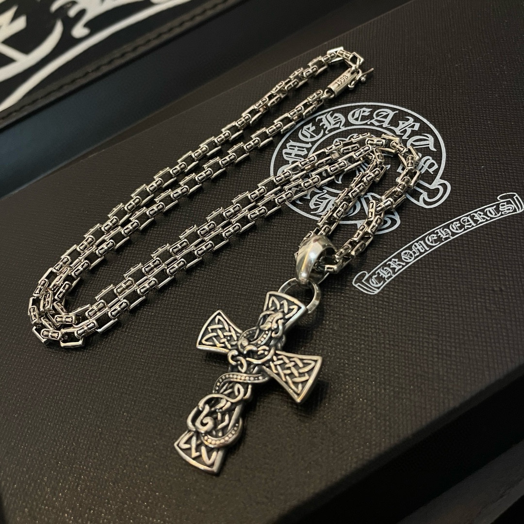 新款【专柜品质】Chrome Hearts克罗心 经典复古十字架项链 龙腾十字架吊坠 快手/ins/小红书热门 凹凸造型不同的花纹设计风格 呈现出与众不同 十字架 童军花是克罗心的志 所以更经久不衰 正品打版Chrome Hearts克罗心 区别市场普通轻版 对版对标品质 看字印细节 复古做旧灰氧程度.精工版本!!! 纯手工打造 ~正品开模 潮流时尚必备 男女均可佩戴 情侣同款 官网原版 摇滚朋克泰银风格 复古元素 潮流百搭!