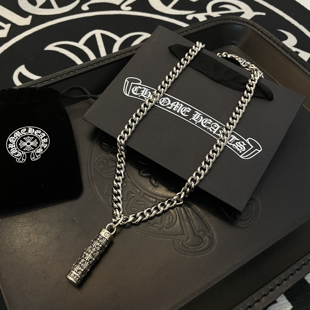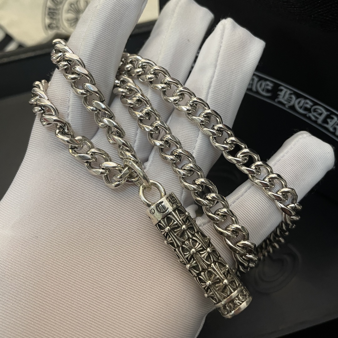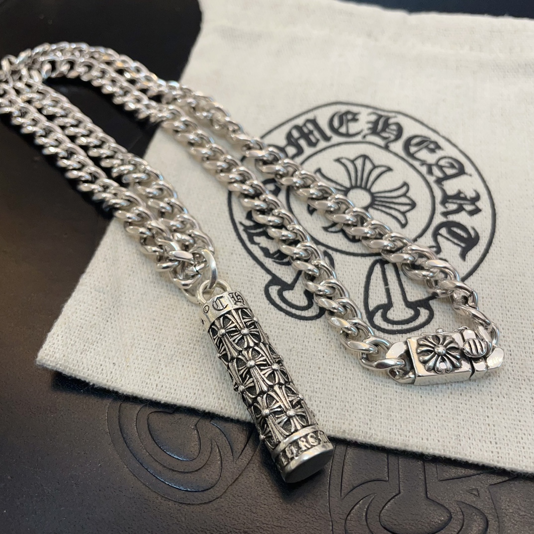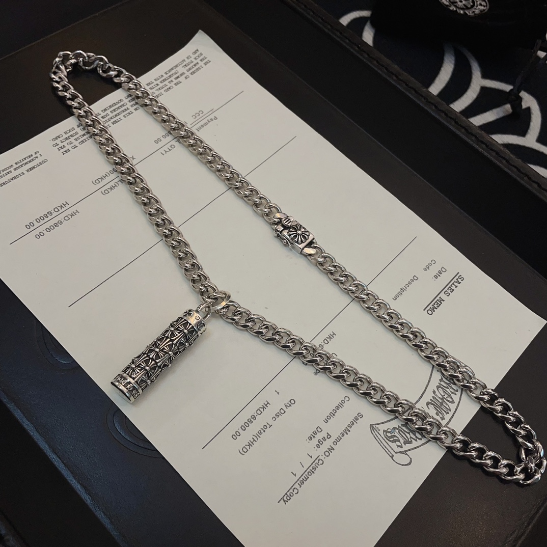 新款【专柜品质】Chrome Hearts克罗心粗条经典古巴项链,十字架圆柱吊坠 凹凸造型不同的花纹设计风格 呈现出与众不同 十字架 童军花是克罗心的志 所以更经久不衰 正品打版Chrome Hearts克罗心 区别市场普通轻版 对版对标品质 看字印细节 复古做旧灰氧程度.精工版本!!! 纯手工打造 ~正品开模 潮流时尚必备 男女均可佩戴 情侣同款 官网原版 摇滚朋克泰银风格 复古元素 潮流百搭!