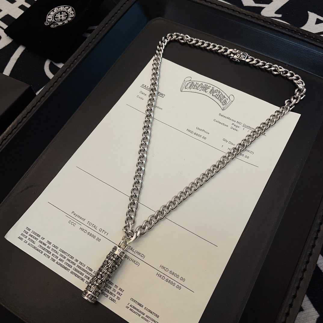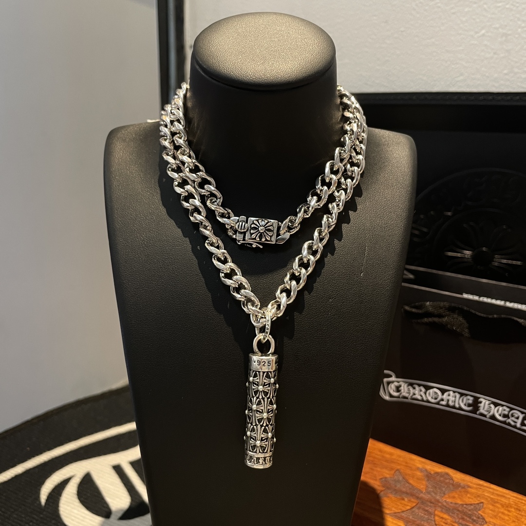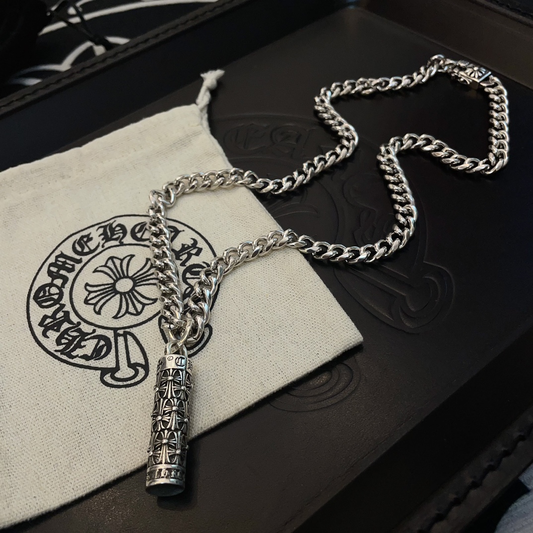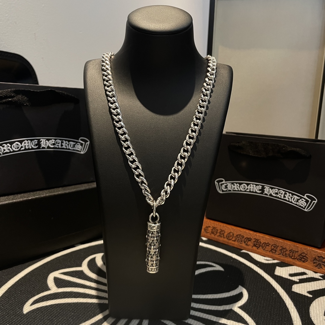 新款【专柜品质】Chrome Hearts克罗心粗条经典古巴项链,十字架圆柱吊坠 凹凸造型不同的花纹设计风格 呈现出与众不同 十字架 童军花是克罗心的志 所以更经久不衰 正品打版Chrome Hearts克罗心 区别市场普通轻版 对版对标品质 看字印细节 复古做旧灰氧程度.精工版本!!! 纯手工打造 ~正品开模 潮流时尚必备 男女均可佩戴 情侣同款 官网原版 摇滚朋克泰银风格 复古元素 潮流百搭!