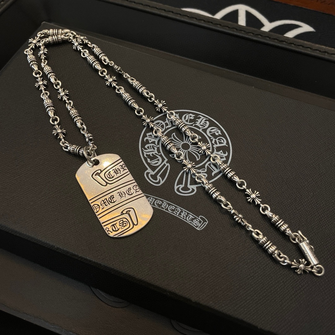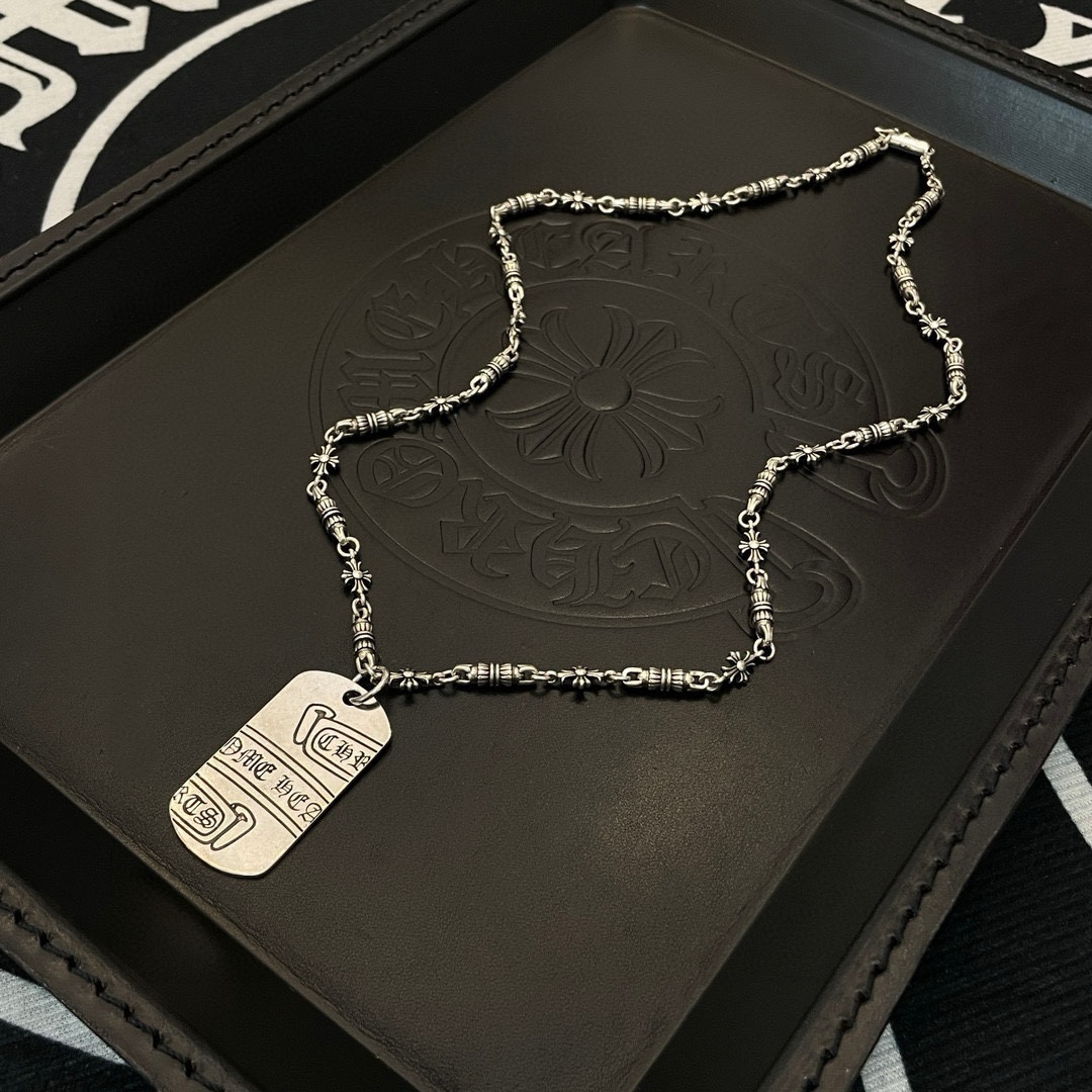 新款【专柜品质】Chrome Hearts克罗心 经典复古多元素项链 个性军牌吊坠 凹凸造型不同的花纹设计风格 呈现出与众不同 十字架 童军花是克罗心的志 所以更经久不衰 正品打版Chrome Hearts克罗心 区别市场普通轻版 对版对标品质 看字印细节 复古做旧灰氧程度.精工版本!!! 纯手工打造 ~正品开模 潮流时尚必备 男女均可佩戴 情侣同款 官网原版 摇滚朋克泰银风格 复古元素 潮流百搭!