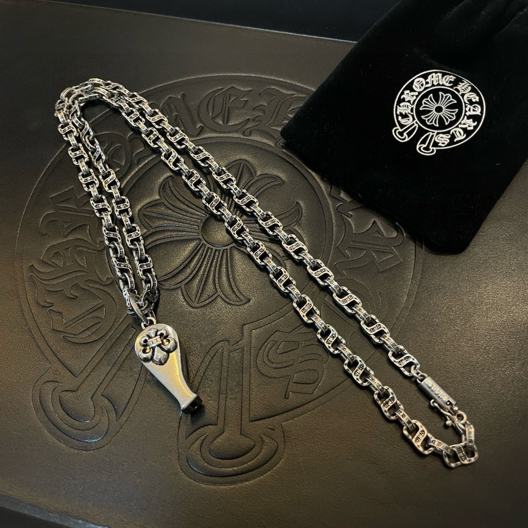 新款【专柜品质】Chrome Hearts克罗心 经典复古S形字母项链 口哨吊坠 凹凸造型不同的花纹设计风格 呈现出与众不同 十字架 童军花是克罗心的志 所以更经久不衰 正品打版Chrome Hearts克罗心 区别市场普通轻版 对版对标品质 看字印细节 复古做旧灰氧程度.精工版本!!! 纯手工打造 ~正品开模 潮流时尚必备 男女均可佩戴 情侣同款 官网原版 摇滚朋克泰银风格 复古元素 潮流百搭!