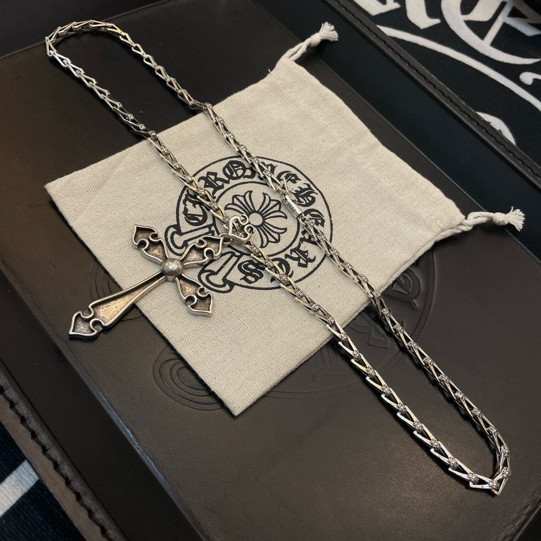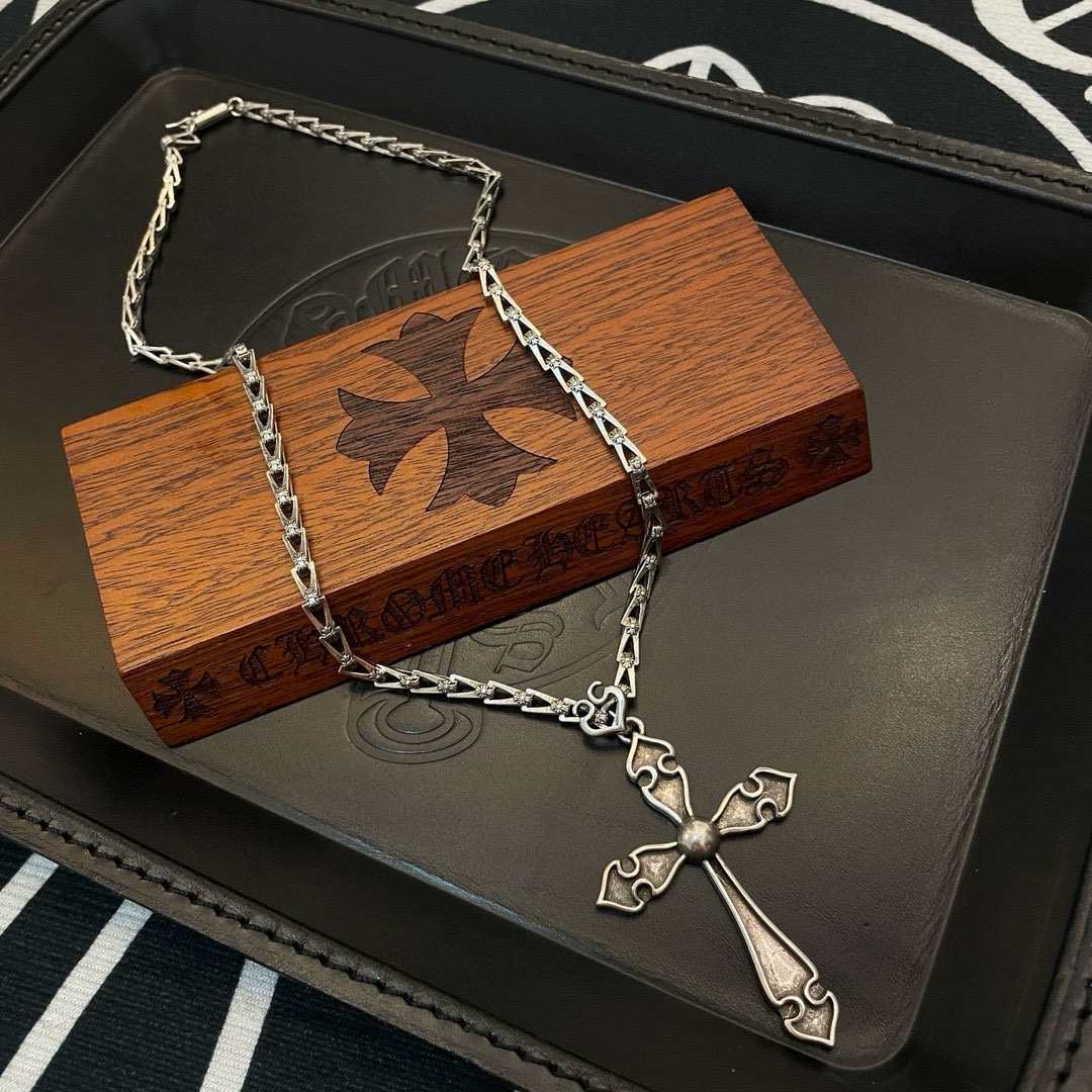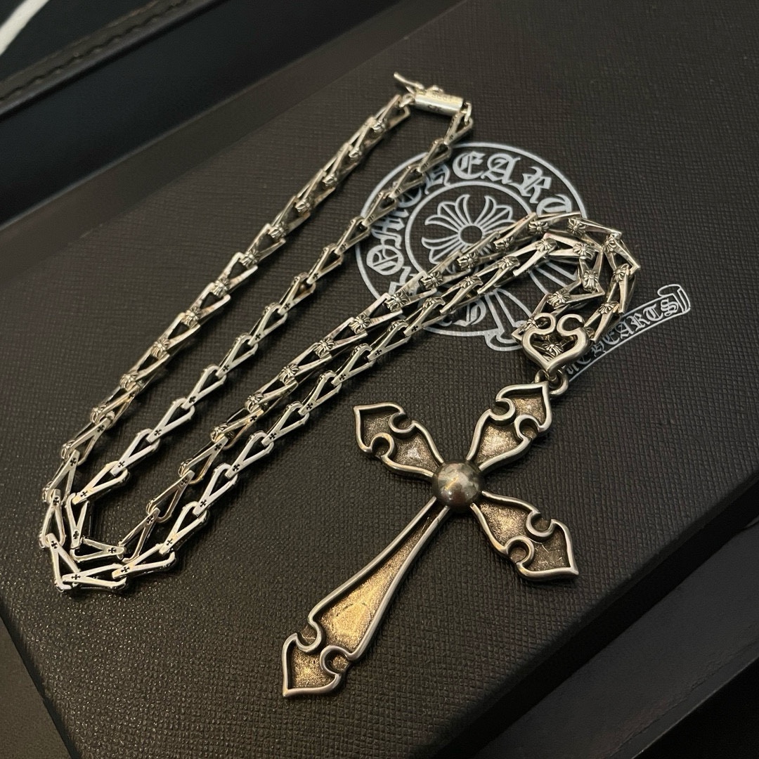 新款【专柜品质】Chrome Hearts克罗心 经典复古多元素十字花项链 大号十字架吊坠 快手/ins/小红书热门 凹凸造型不同的花纹设计风格 呈现出与众不同 十字架 童军花是克罗心的志 所以更经久不衰 正品打版Chrome Hearts克罗心 区别市场普通轻版 对版对标品质 看字印细节 复古做旧灰氧程度.精工版本!!! 纯手工打造 ~正品开模 潮流时尚必备 男女均可佩戴 情侣同款 官网原版 摇滚朋克泰银风格 复古元素 潮流百搭!