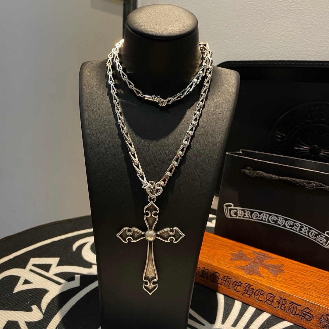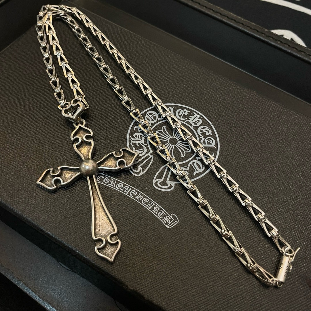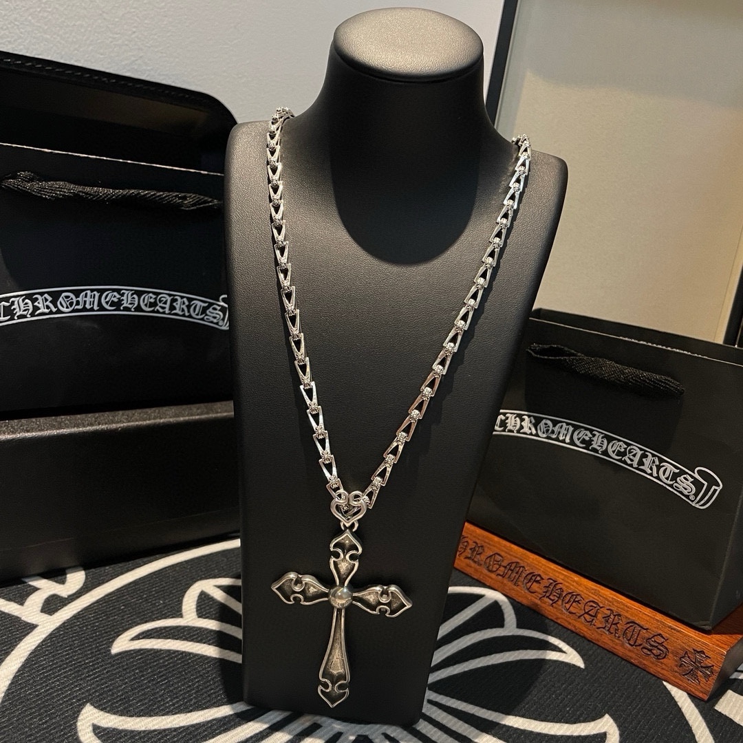 新款【专柜品质】Chrome Hearts克罗心 经典复古多元素十字花项链 大号十字架吊坠 快手/ins/小红书热门 凹凸造型不同的花纹设计风格 呈现出与众不同 十字架 童军花是克罗心的志 所以更经久不衰 正品打版Chrome Hearts克罗心 区别市场普通轻版 对版对标品质 看字印细节 复古做旧灰氧程度.精工版本!!! 纯手工打造 ~正品开模 潮流时尚必备 男女均可佩戴 情侣同款 官网原版 摇滚朋克泰银风格 复古元素 潮流百搭!