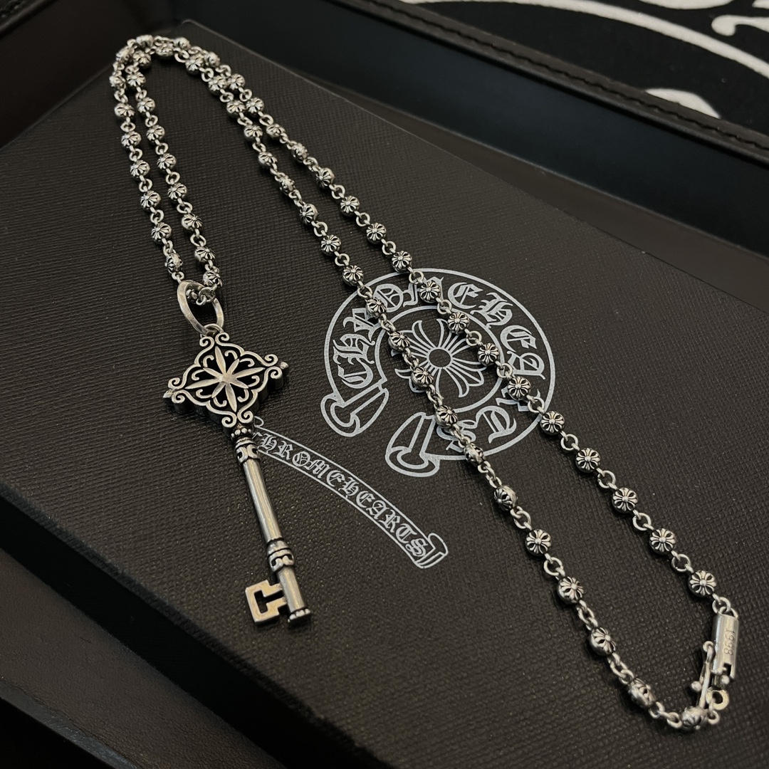 新款【专柜品质】Chrome Hearts克罗心经典复古十字花球项链 钥匙吊坠 凹凸造型不同的花纹设计风格 呈现出与众不同 十字架 童军花是克罗心的志 所以更经久不衰 正品打版Chrome Hearts克罗心 区别市场普通轻版 对版对标品质 看字印细节 复古做旧灰氧程度.精工版本!!! 纯手工打造 ~正品开模 潮流时尚必备 男女均可佩戴 情侣同款 官网原版 摇滚朋克泰银风格 复古元素 潮流百搭!