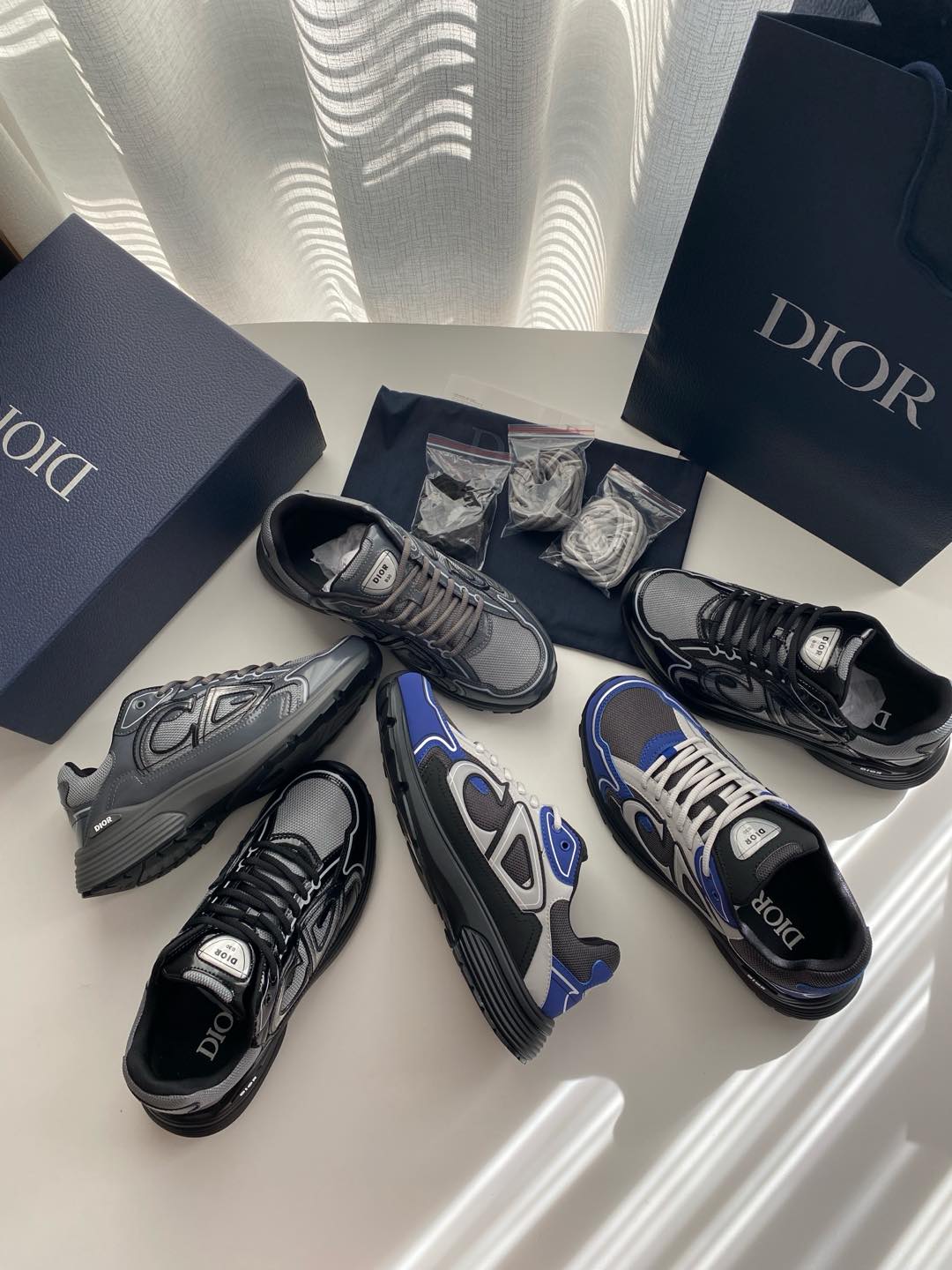 新款D家 B30 运动鞋 ✔️ 时尚现代,彰显运动风范,结合非凡技术与精湛工艺重新诠释,是 Di~ 的主打单品。采用浅灰色网眼织物和灰色亮面科技面料精心制作,搭配带有图形风格的半透明 CD30 标志提升格调。鞋舌和鞋跟处饰以银色调 Di~r B30 和 CD30 标志。轻盈的纹理效果橡胶鞋底饰以众多特色细节,内部弹力饰带打造理想的舒适穿着体验。可与各式休闲单品搭配,打造精致造型。
