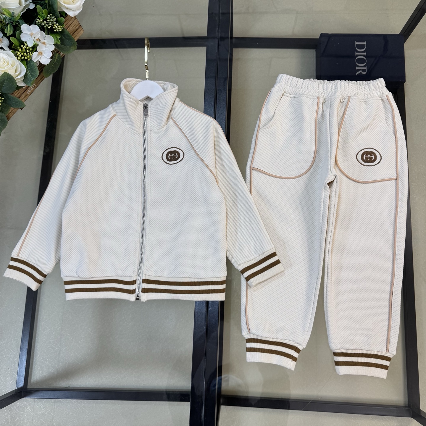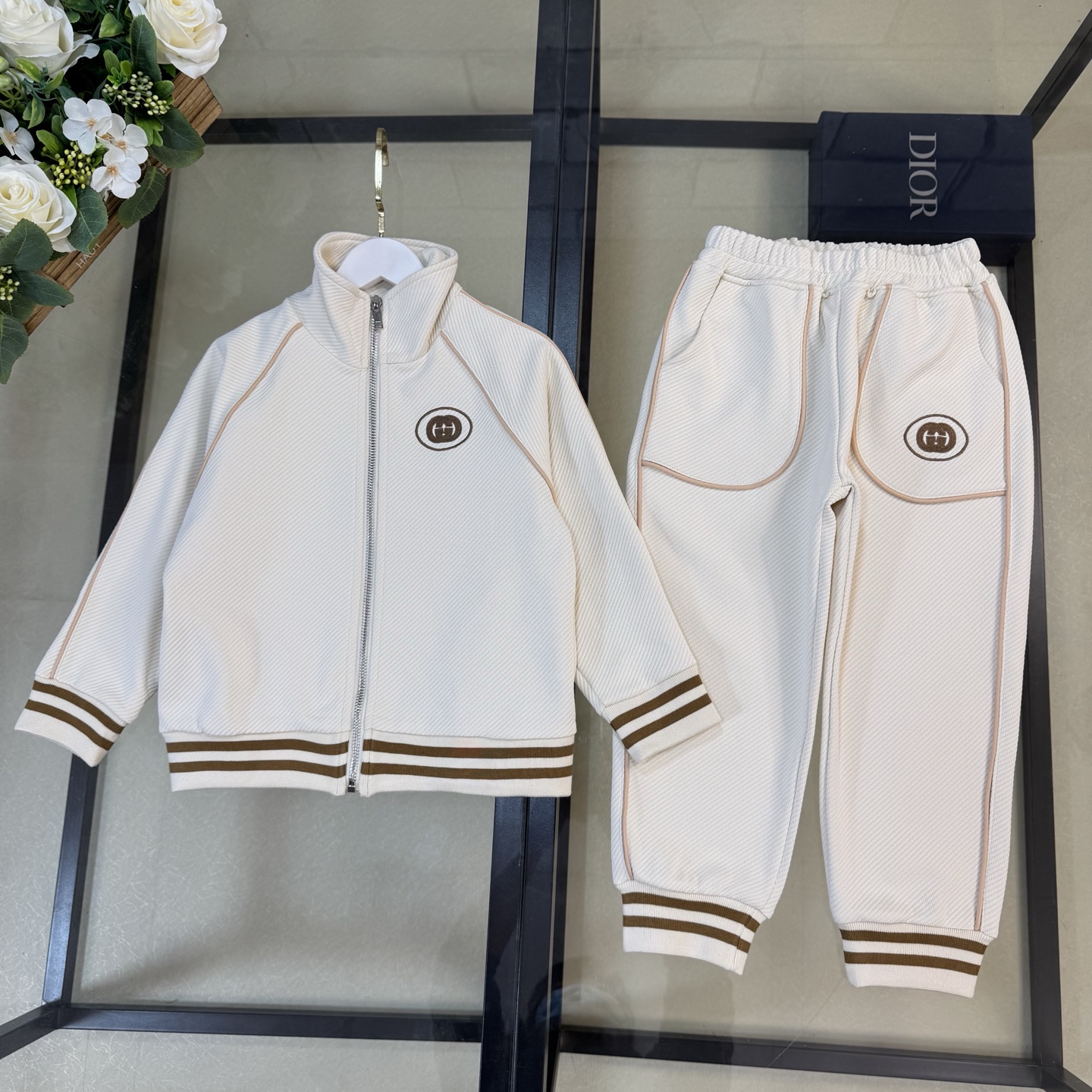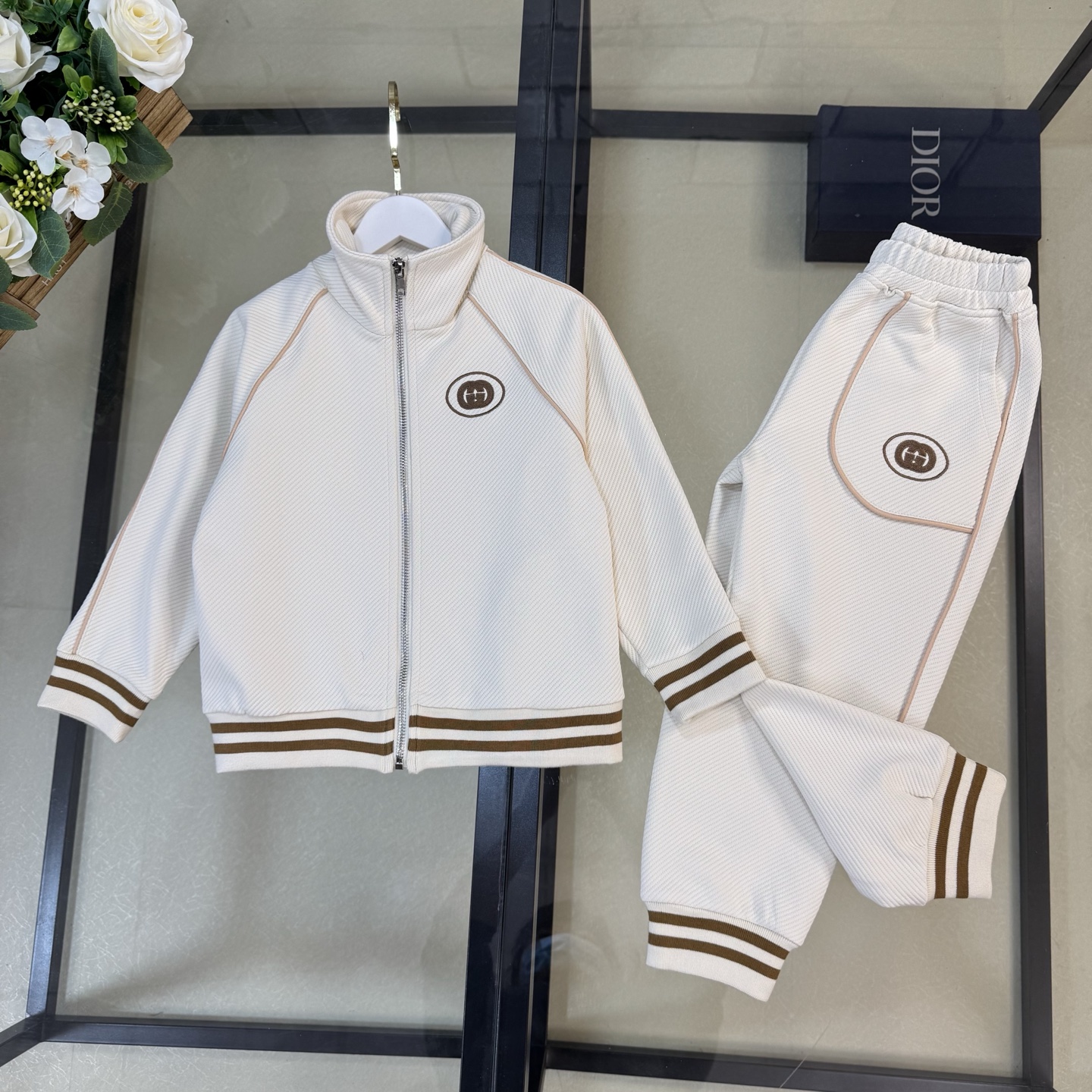 无折, size:110-120-130-140-150-160《现货发》 2025•ss春秋限定系列✨Gucc*休闲百搭套装 《立领拉链外套➕运动长裤】品质两件套!简约大气的经典款,省去搭配的烦恼,分开来穿也是白搭无压力!谁穿谁好看~ 独家定制款 手感柔软舒适,质感厚实饱满,保暖舒适性都是杠杠滴,品质一流,简约线条设计 好看大气 彰显时尚品味,简约舒适 运动大方,没有束缚感。版型也是舒适版型 ,集运动与修身一体 ,妥妥的百搭款,墙推款~一定的要入!