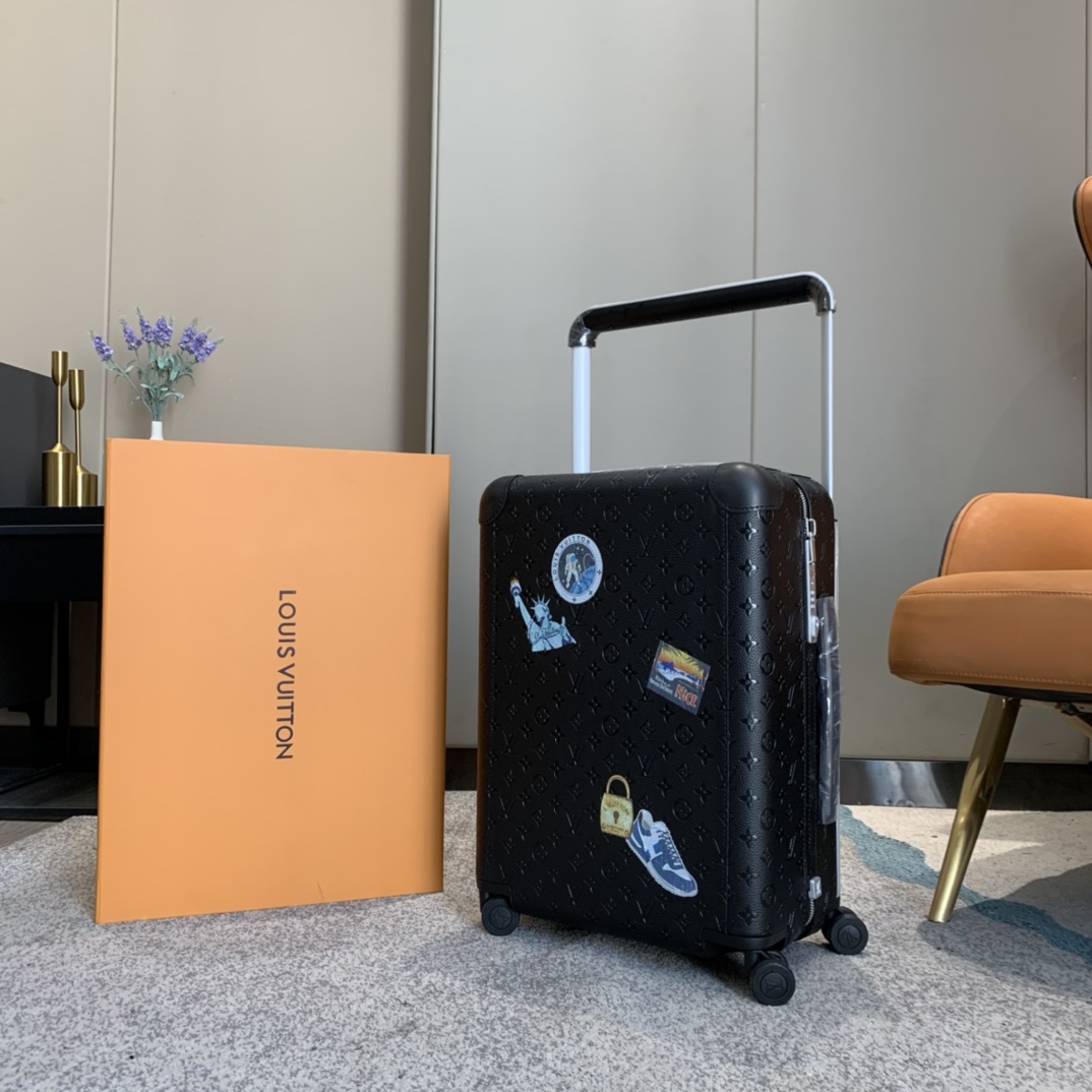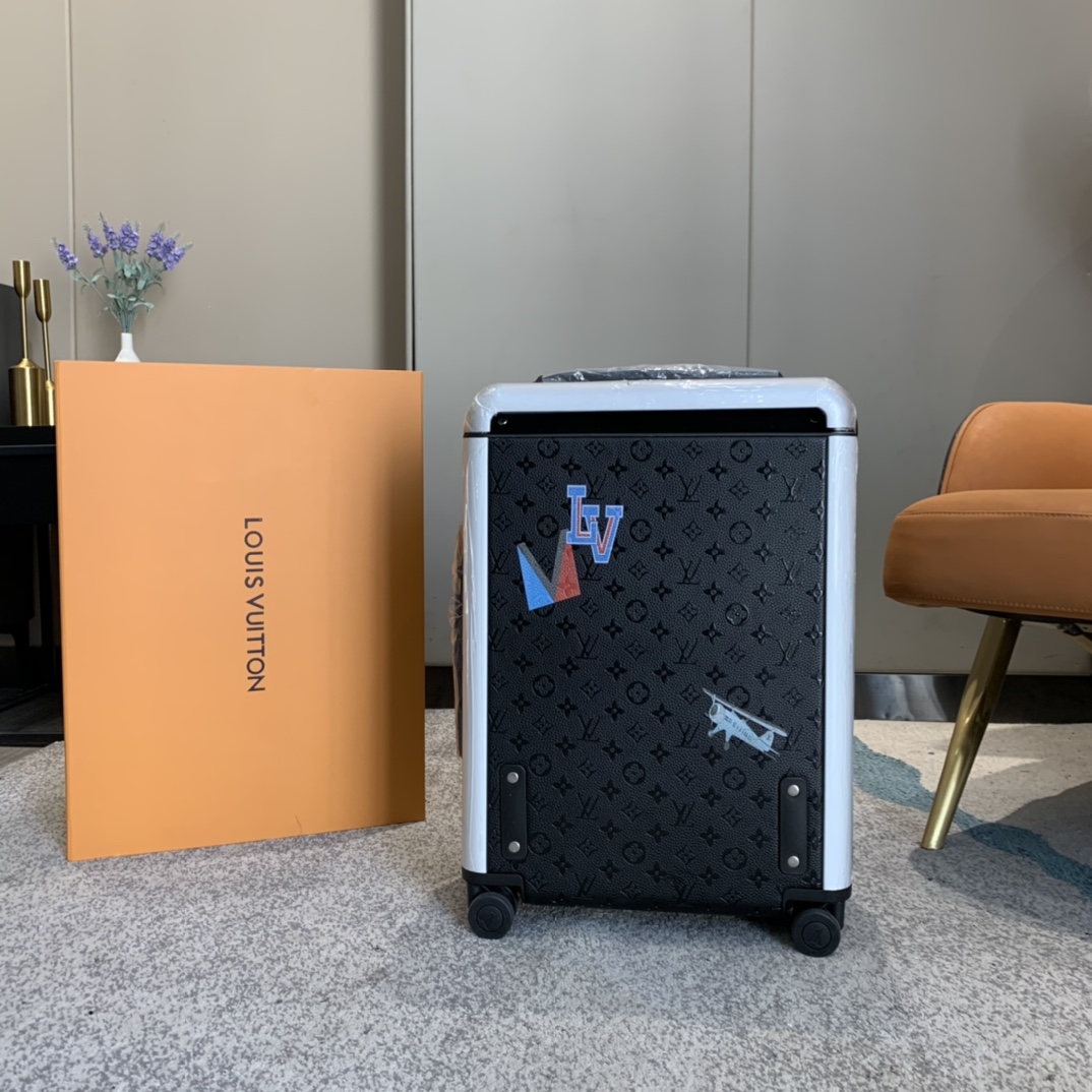 全新 Horizon 拉杆箱以个性创意革新威登的传奇经典,为标志性 Monogram 帆布点缀旅行贴饰,追溯品牌传统行李箱的设计风尚。皮革边角保护和超大外置拉杆丰富智慧细节,打造优雅且实用的旅行伴侣。
