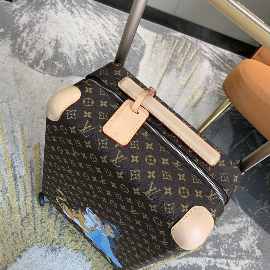 全新 Horizon 拉杆箱以个性创意革新威登的传奇经典,为标志性 Monogram 帆布点缀旅行贴饰,追溯品牌传统行李箱的设计风尚。皮革边角保护和超大外置拉杆丰富智慧细节,打造优雅且实用的旅行伴侣。
