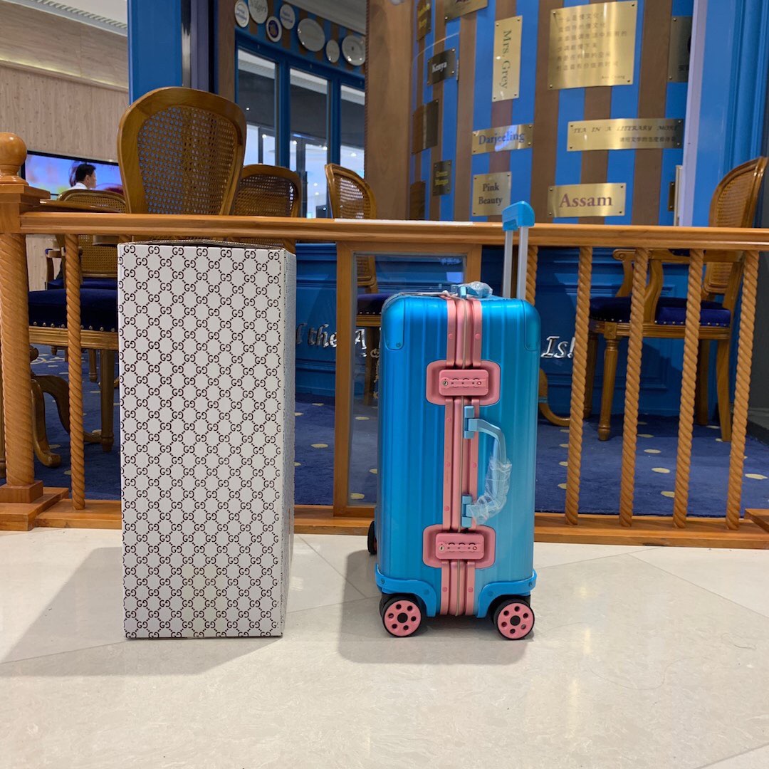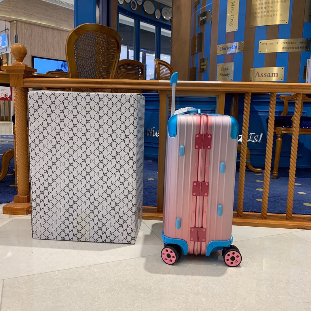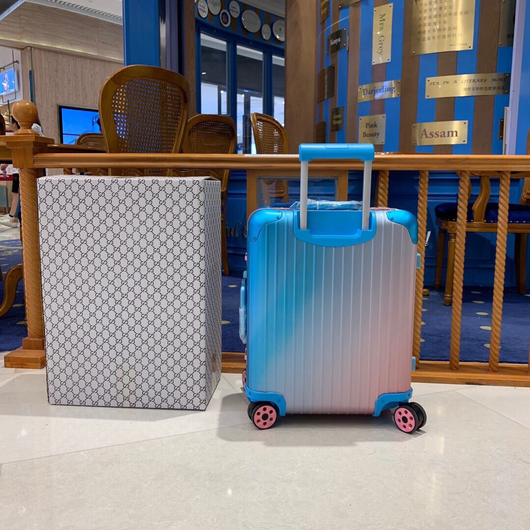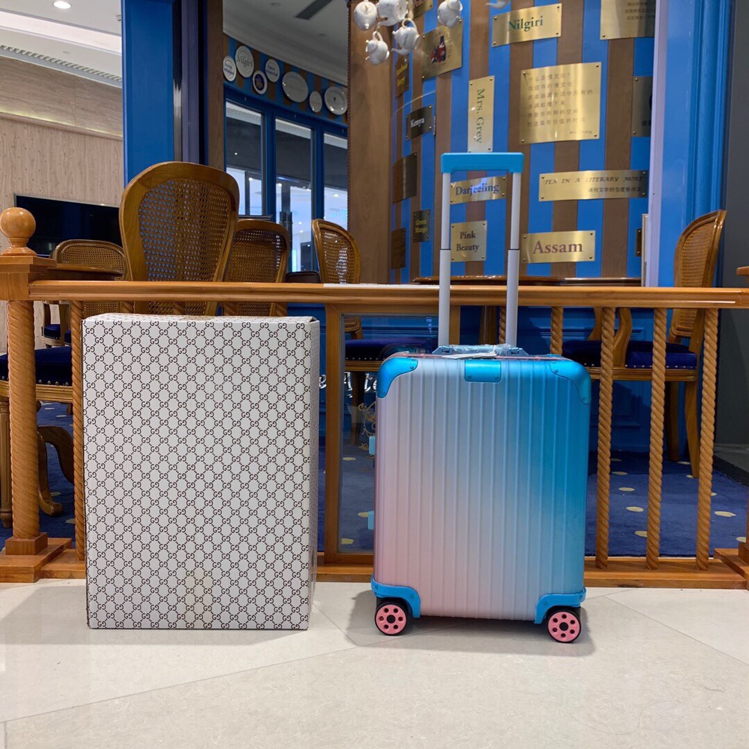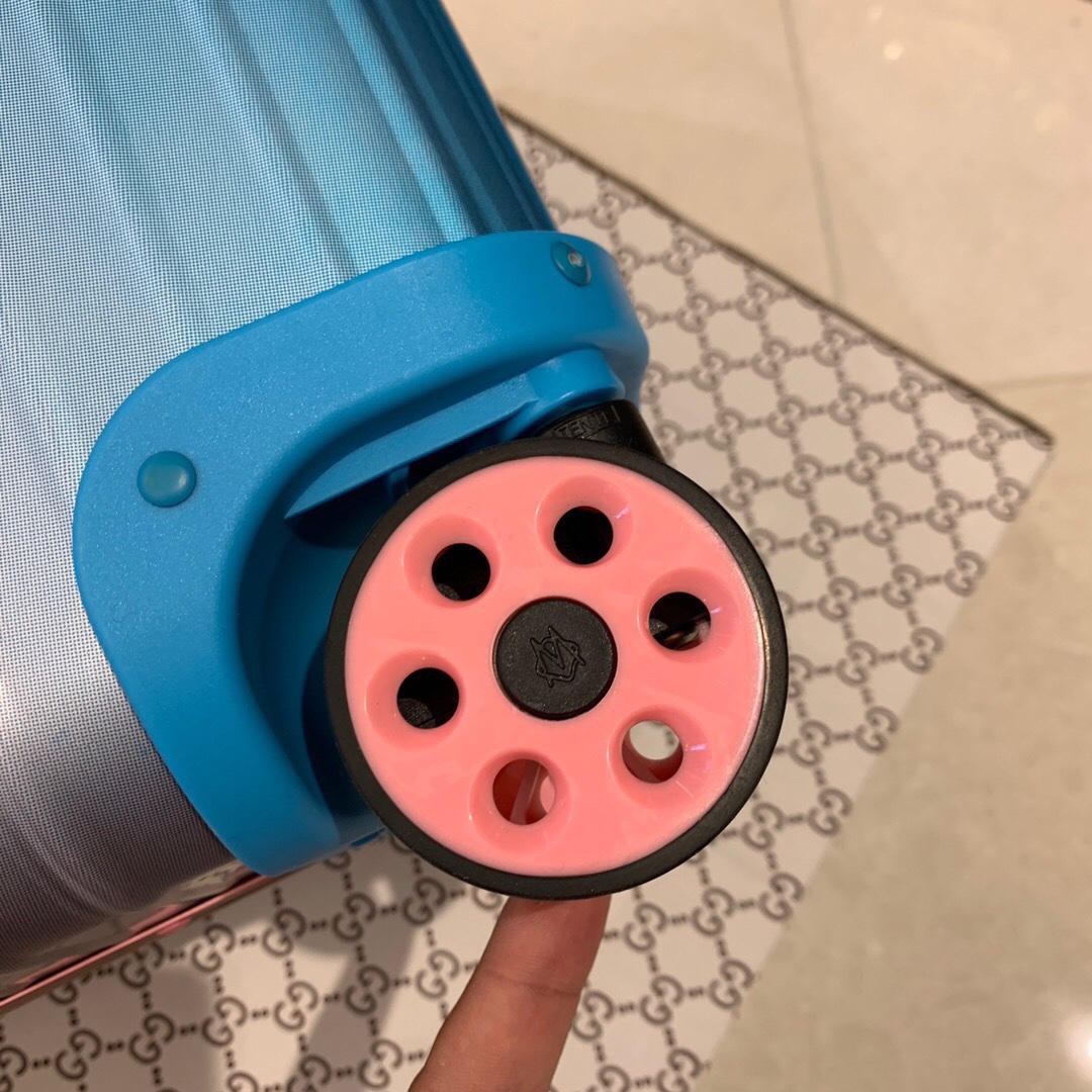 日默瓦rimowa渐变22寸全铝镁合金旅行箱拉杆箱登机箱 RIMOWA x Alex Israel 限量联名系列以洛杉矶落日美景为灵感来源创作彩色旅行箱,拥有福特渐变色泽、独一无二的设计、活力四射的彩色箱轮子! 尺寸:22寸, 颜色:按轮子分颜色