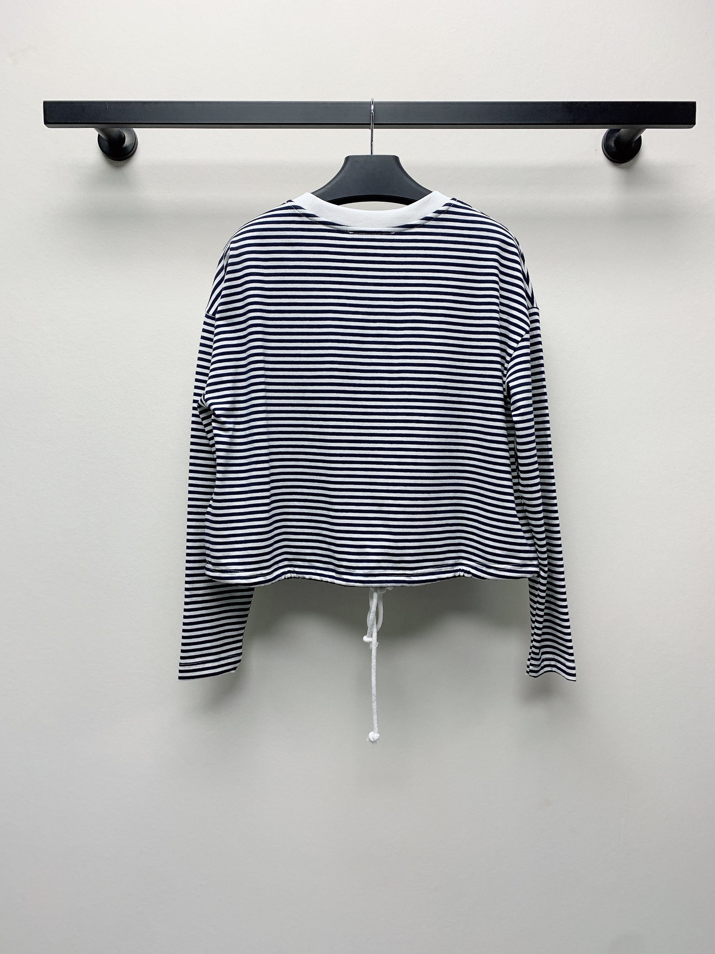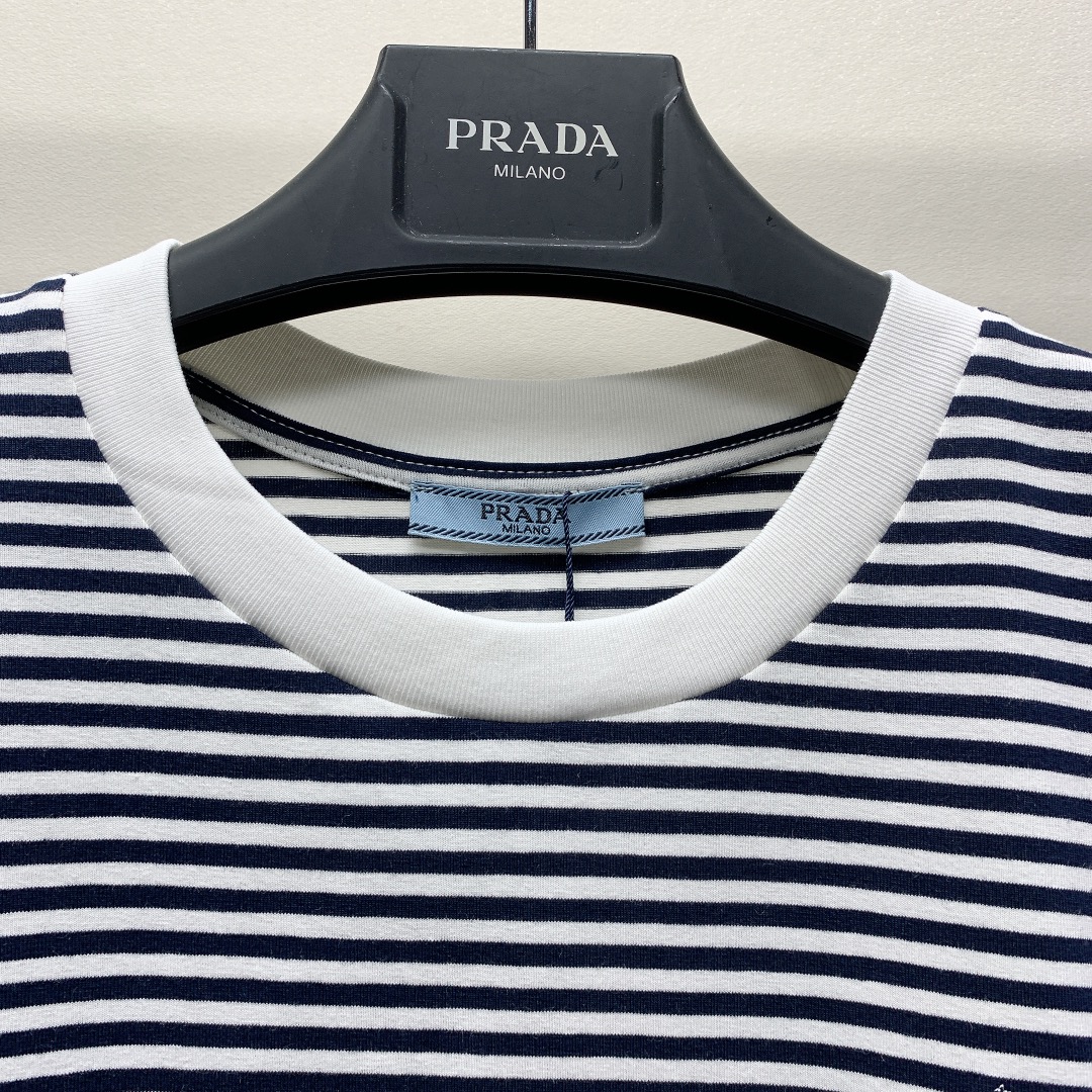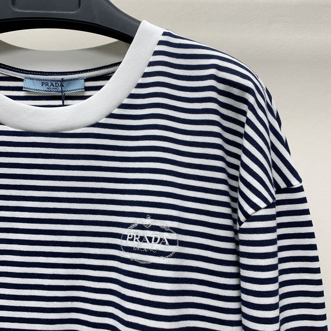 -春夏新款圆领刺绣字母蓝白条T恤SML
