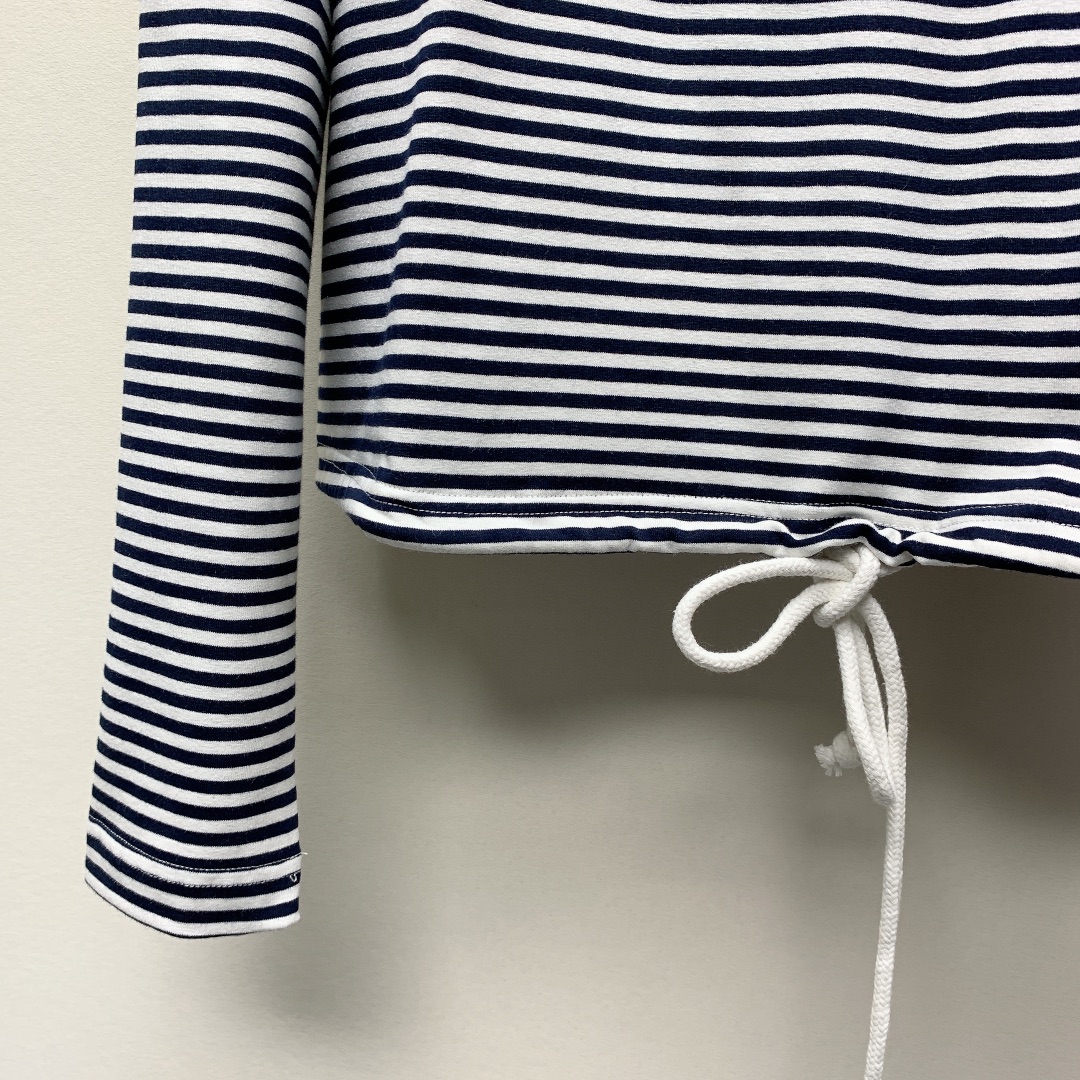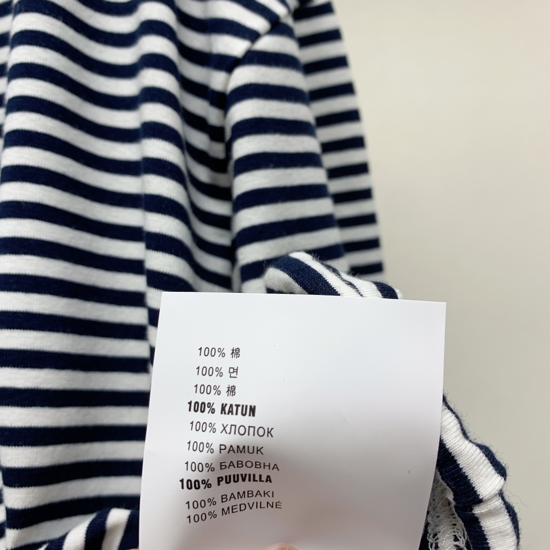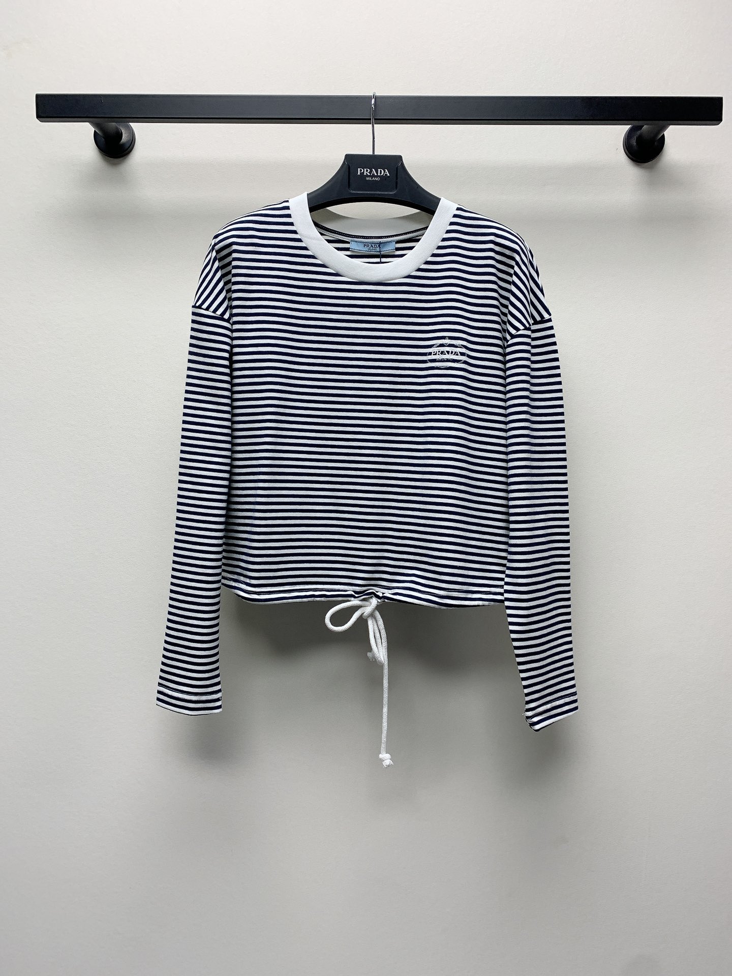 -春夏新款圆领刺绣字母蓝白条T恤SML